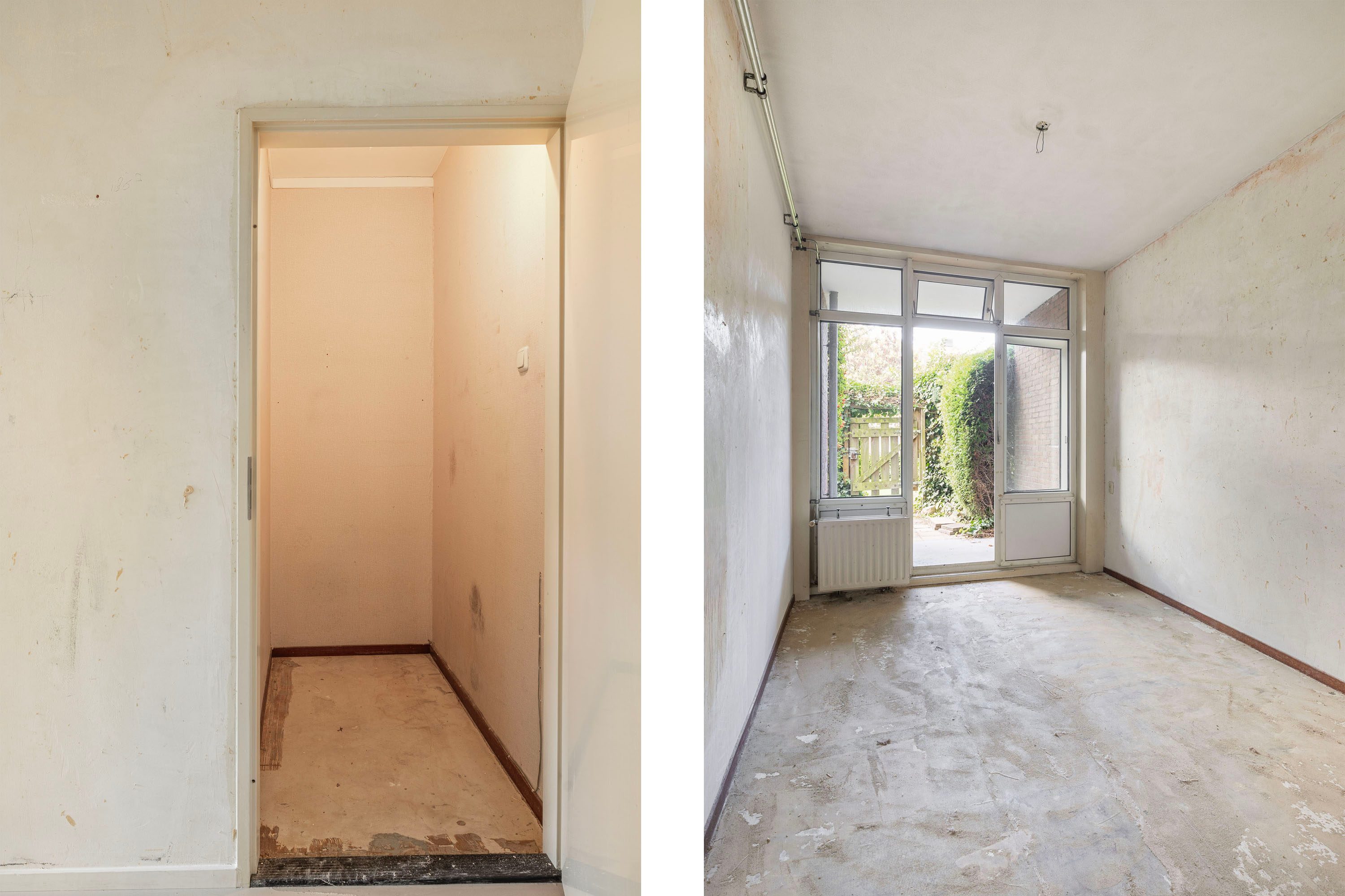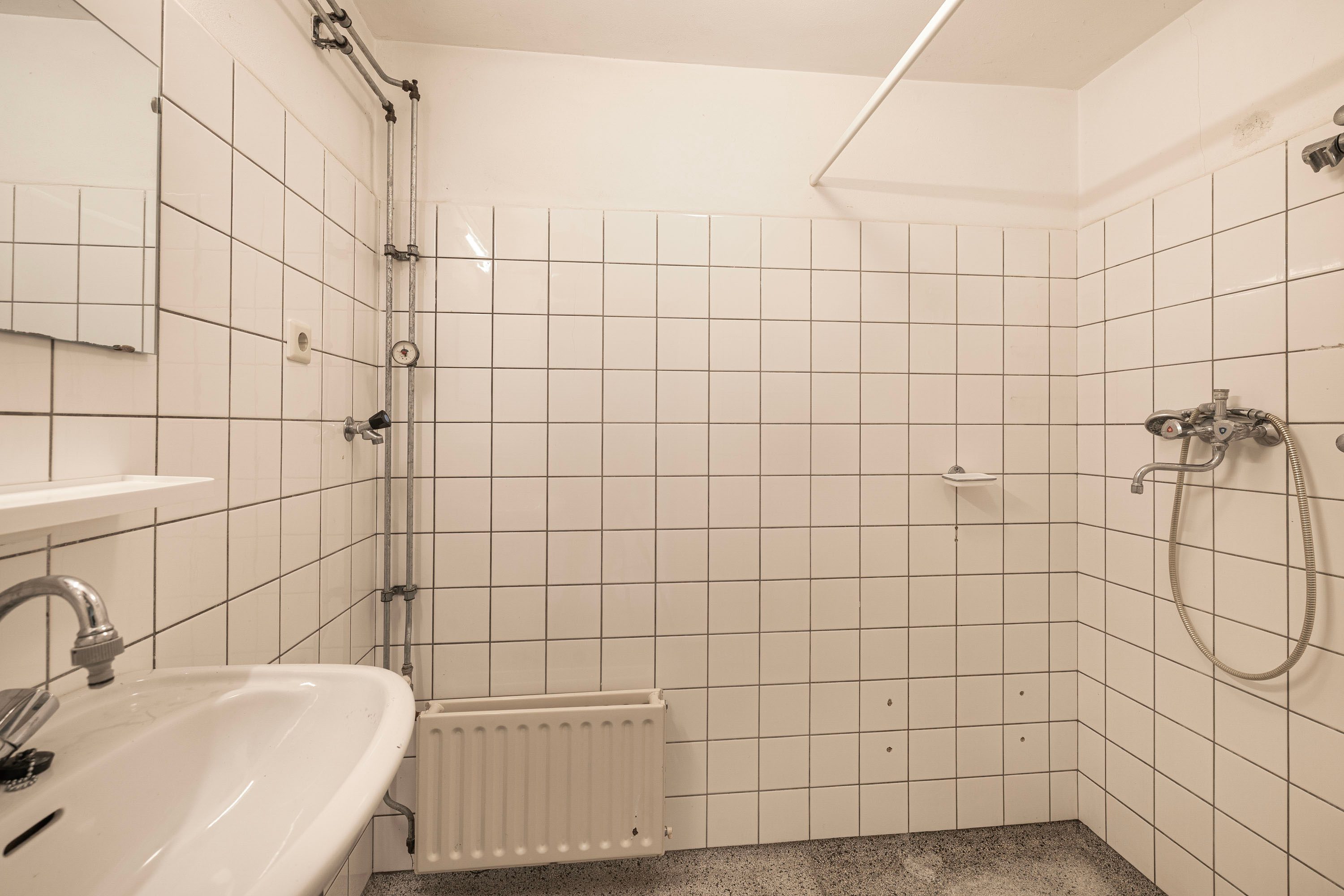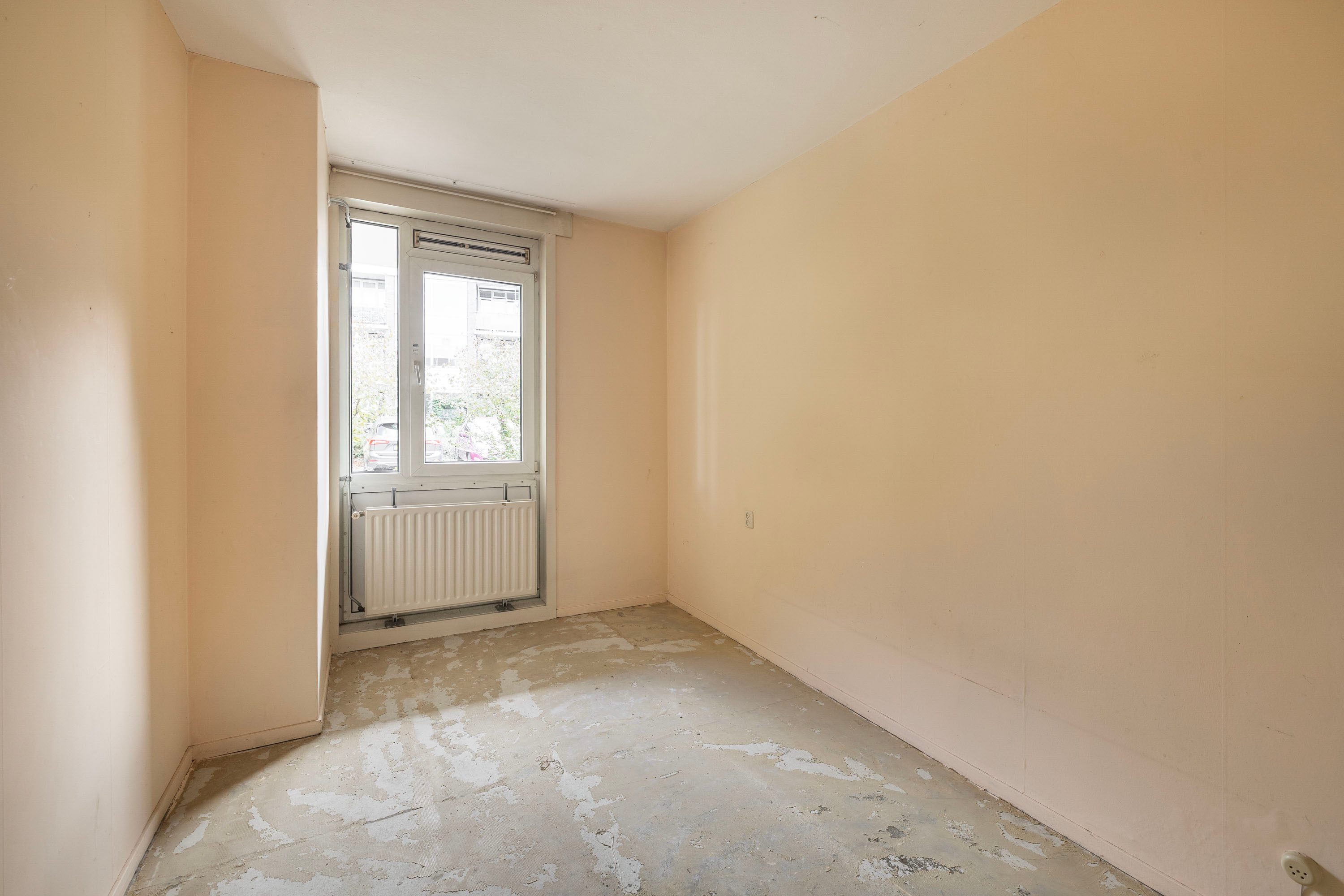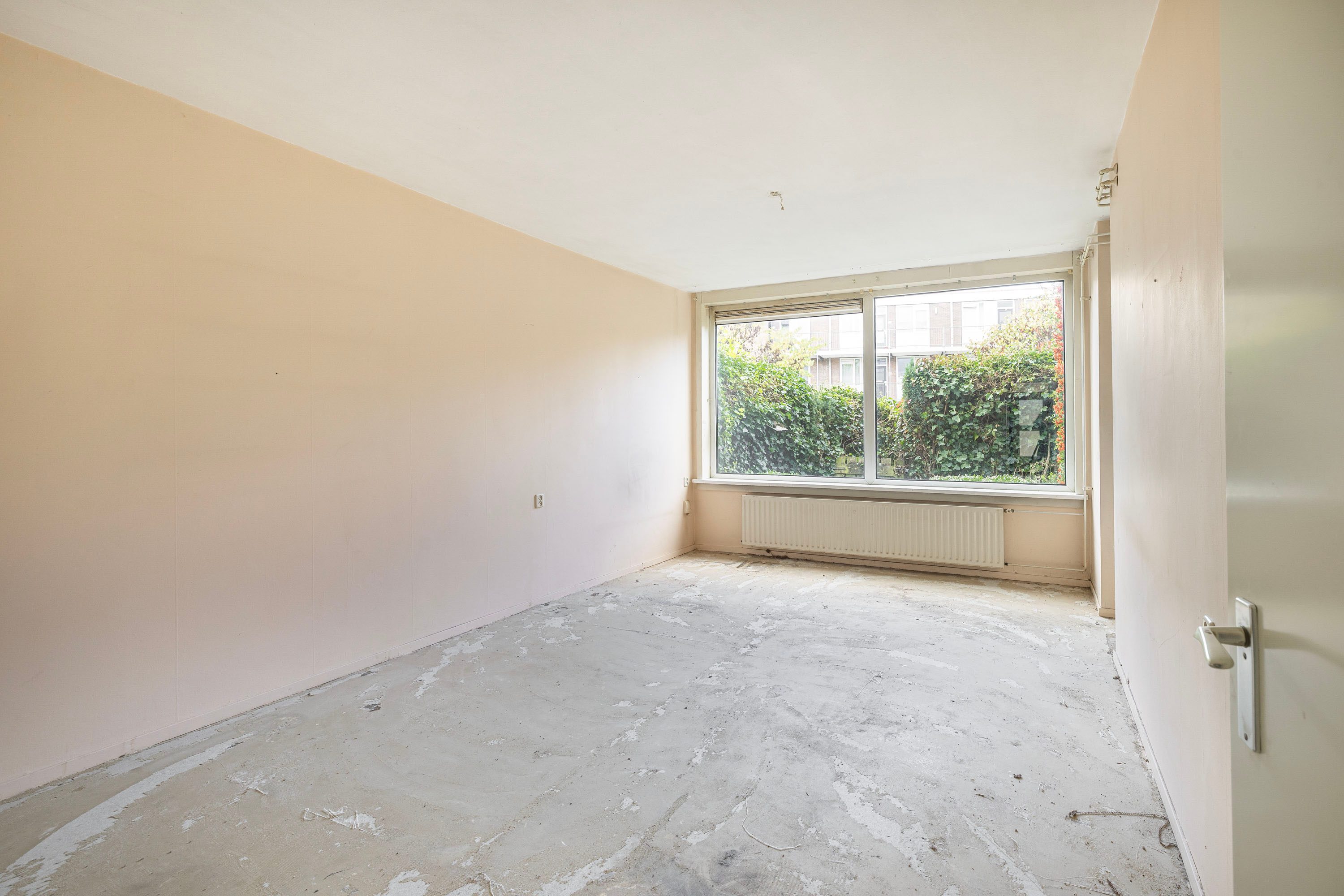 De woonkamer is gelegen aan de achterzijde van het appartement en heeft door de grote raampartij veel natuurlijk lichtinval. Vanuit de woonkamer is de achtertuin te bereiken. De gesloten keuken, gelegen aan de voorzijde van het appartement, is voorzien van een eenvoudige keukenblok met C.V.-opstelling. Aan de voorzijde van het appartement beschik je over een slaapkamer van circa 11m² met vaste bergkast. De tweede slaapkamer is gelegen aan de achterzijde van het appartement, circa 10m² en beschikt over directe toegang naar de tuin. De badkamer is voorzien van douche, wastafel en witgoedaansluiting. Daarnaast is er een separate toilet en een bergkast.