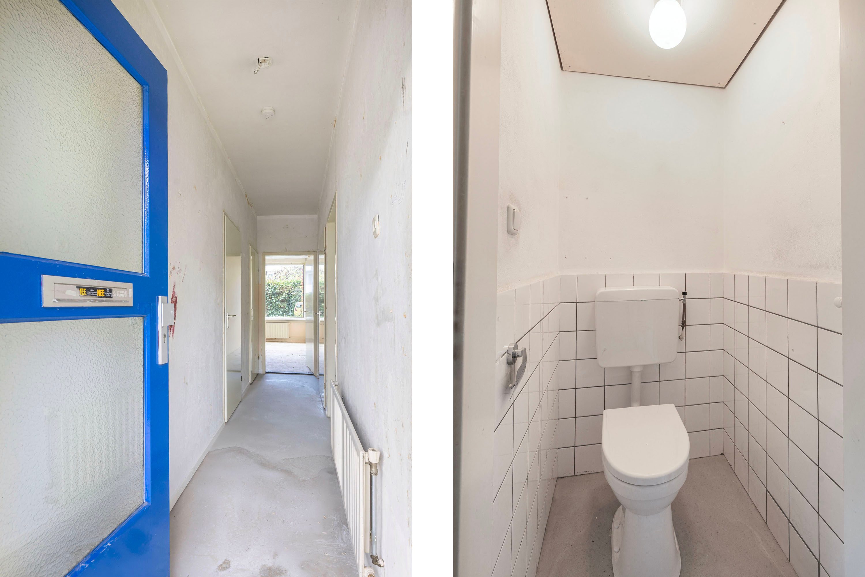 Hal/entree met toiletruimte en toegang tot de tussenhal welke toegang biedt naar de woonkamer, slaapkamers en de badkamer.