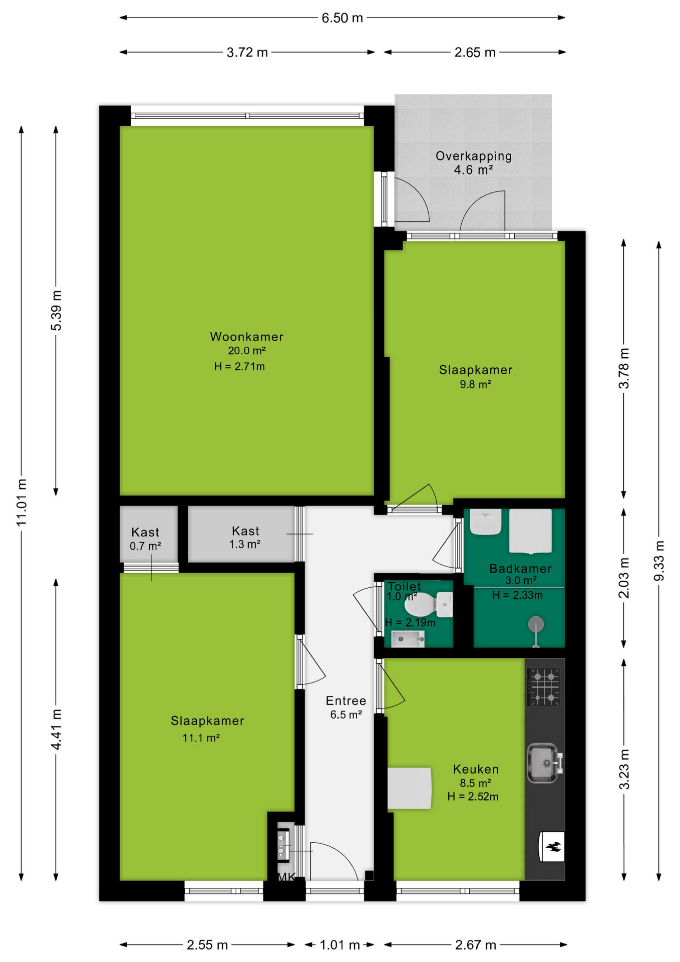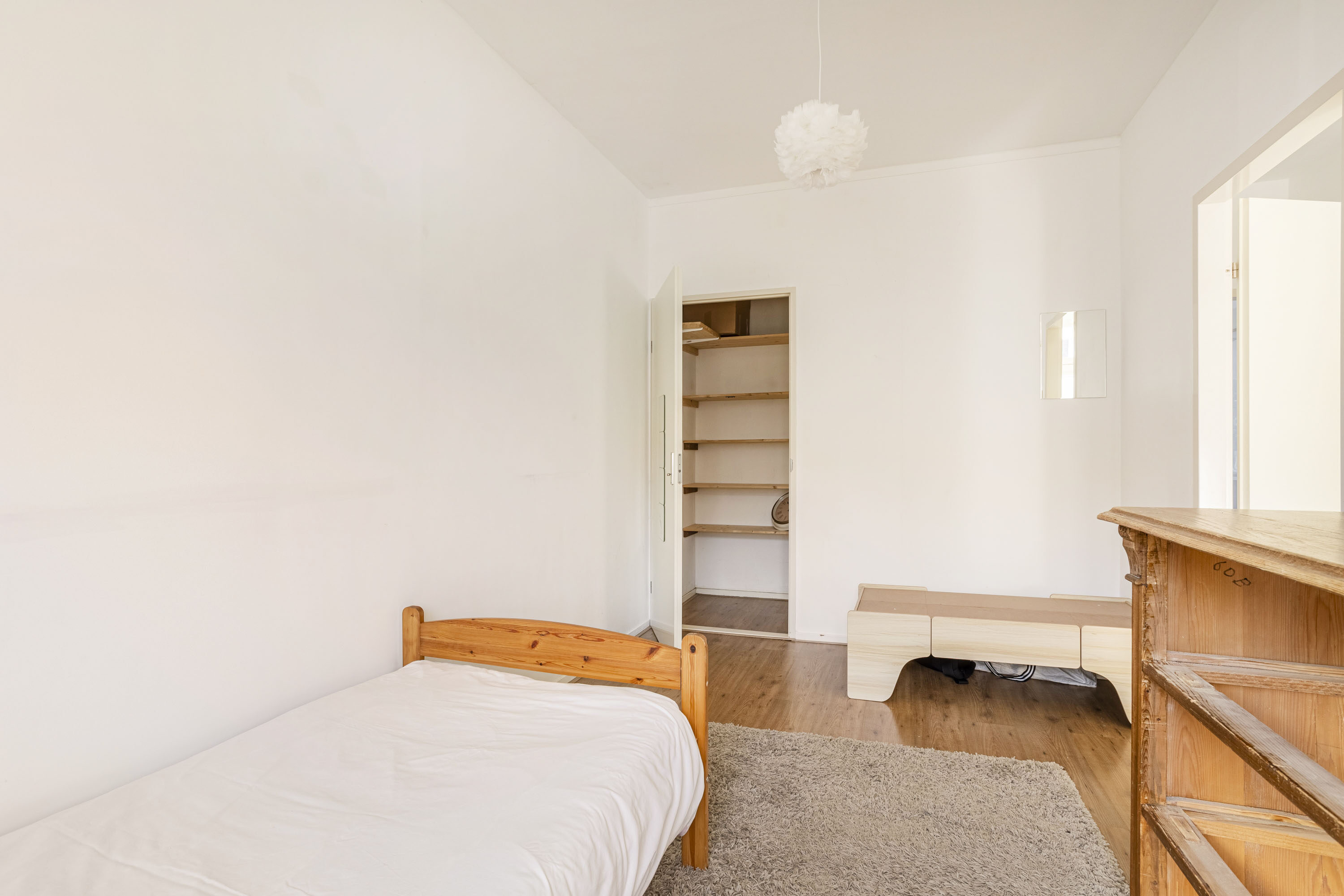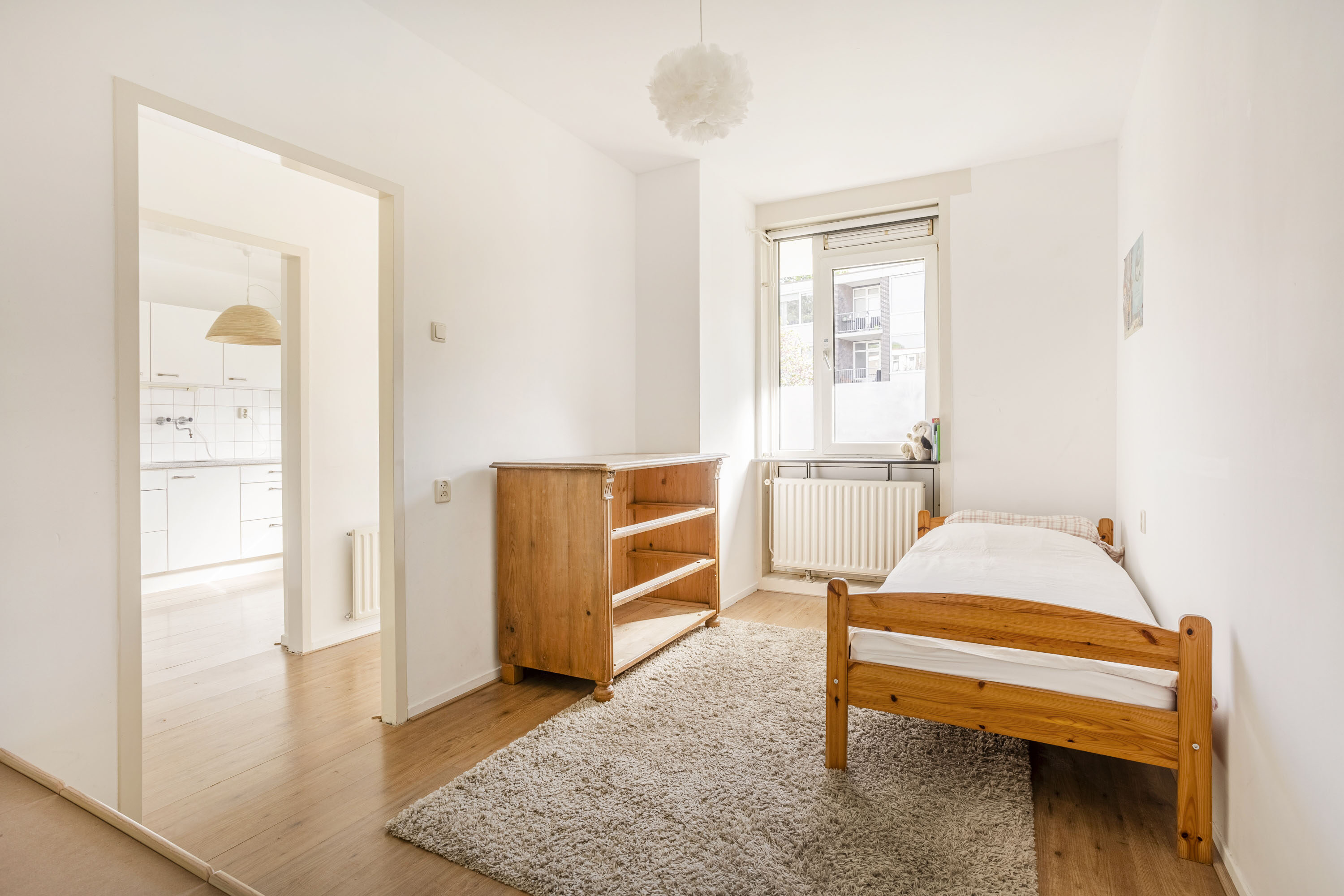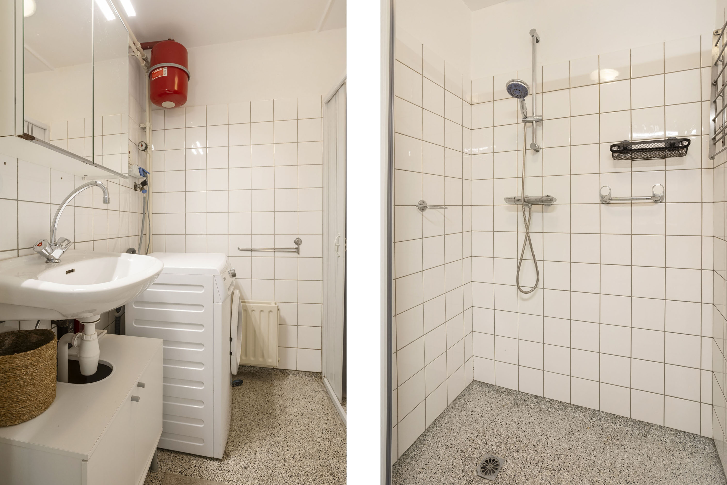 Aan de achterzijde van het appartement tref je de slaapkamer van circa 10m² en aan de voorzijde bevindt zich een tweede slaap-/werkkamer van circa 11m², met een vaste kast voor extra bergruimte. De badkamer is eenvoudig en beschikt over een douche, wastafel en witgoedaansluiting. Het separate toiletruimte biedt extra comfort en gemak, ook ideaal wanneer je visite over de vloer hebt.