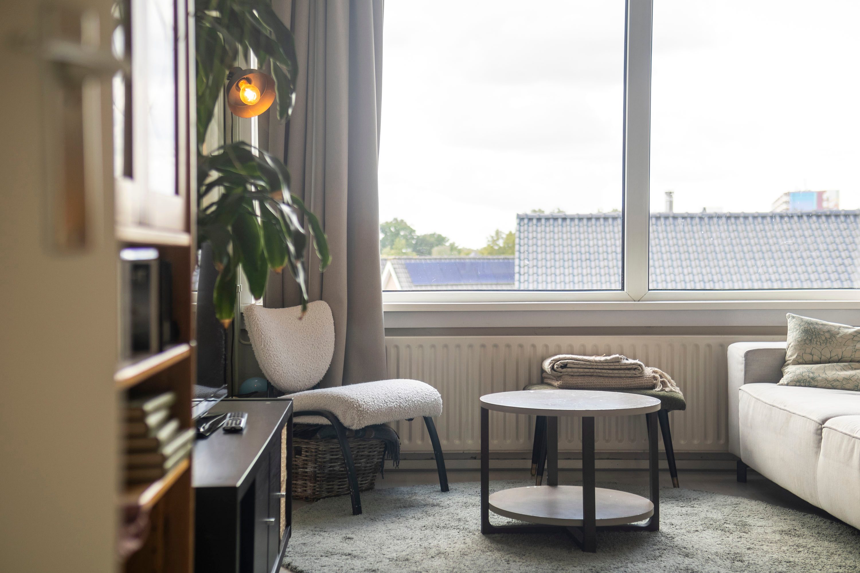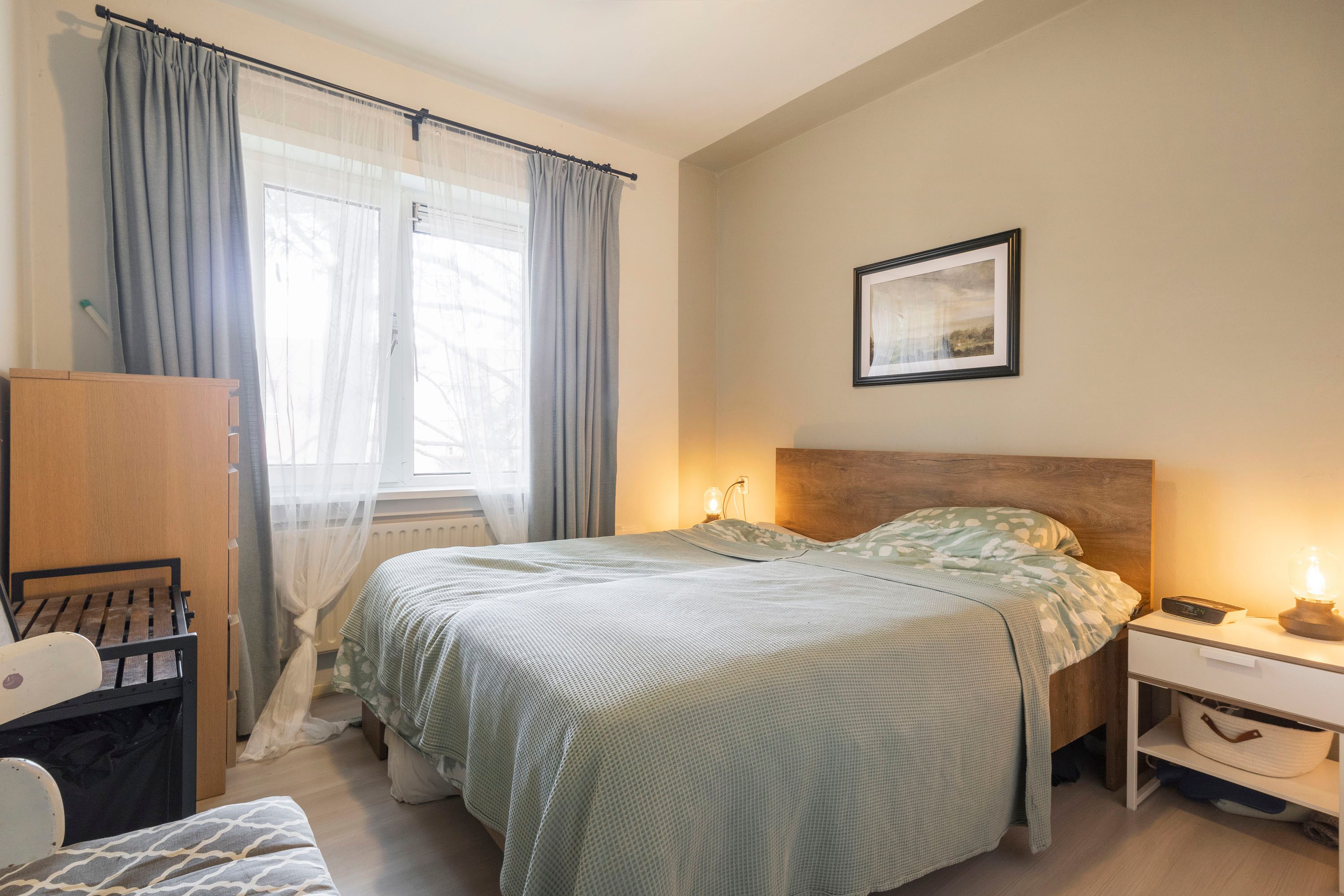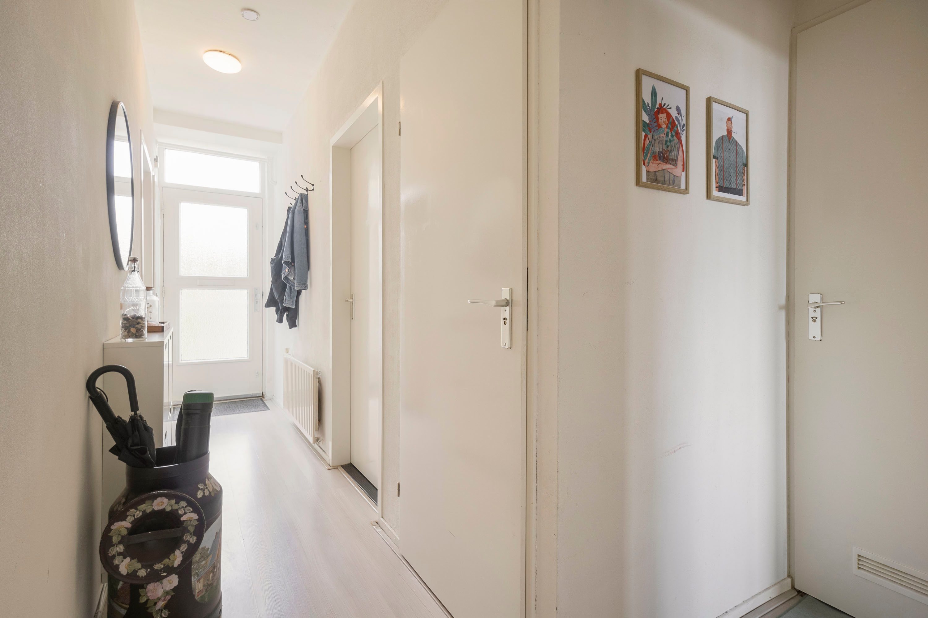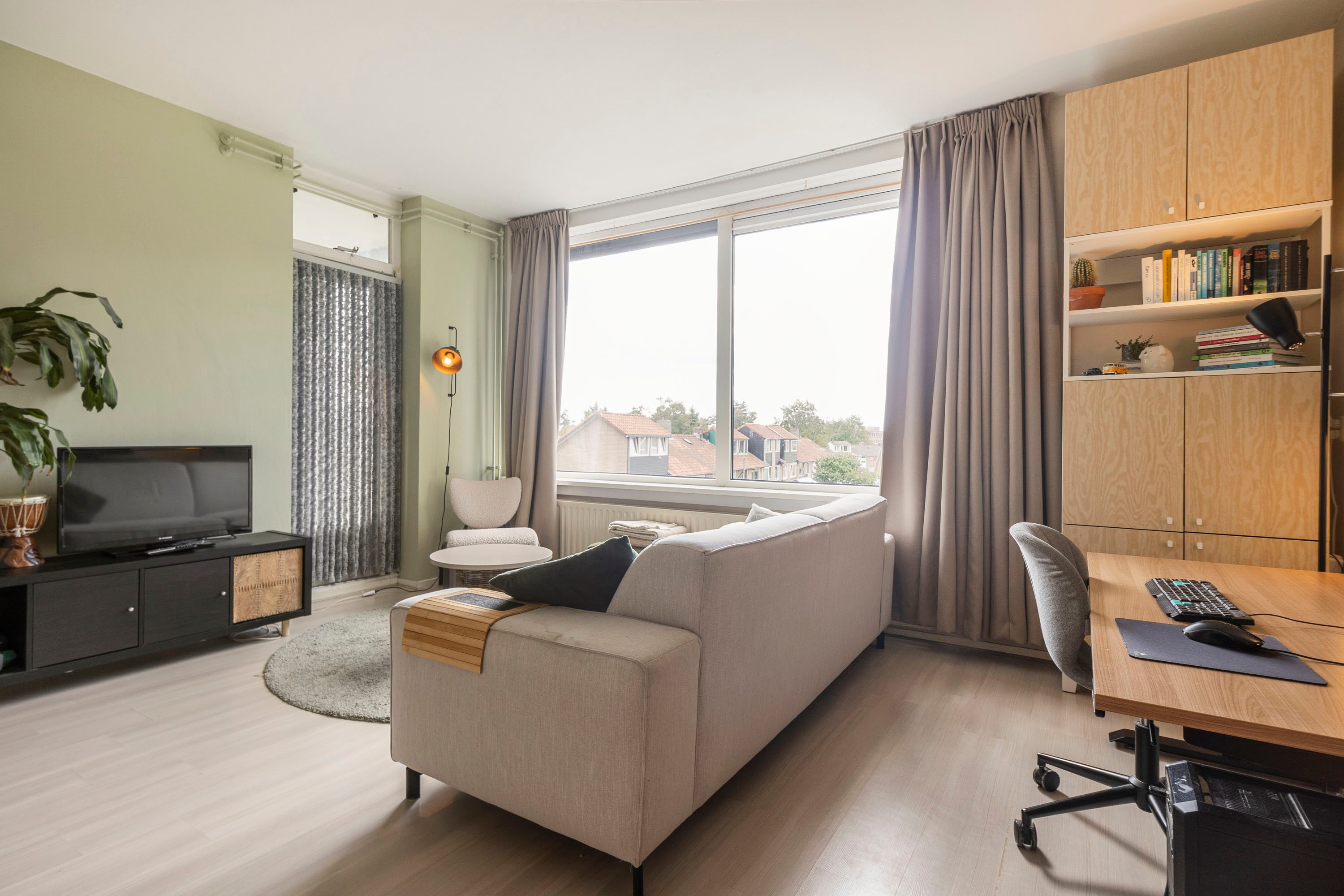 Via de hal heb je toegang tot alle vertrekken. De woonkamer is licht en ruim dankzij de grote raampartij en biedt genoeg plek voor een comfortabele zithoek, eethoek én een thuiswerkplek. Vanuit hier stap je zo het balkon op het westen op – ideaal voor een zonnig plekje aan het einde van de dag. De keuken ligt aan de voorzijde, is deels vernieuwd in 2023 en biedt voldoende opbergruimte. Hier bevindt zich ook de cv-ketel.