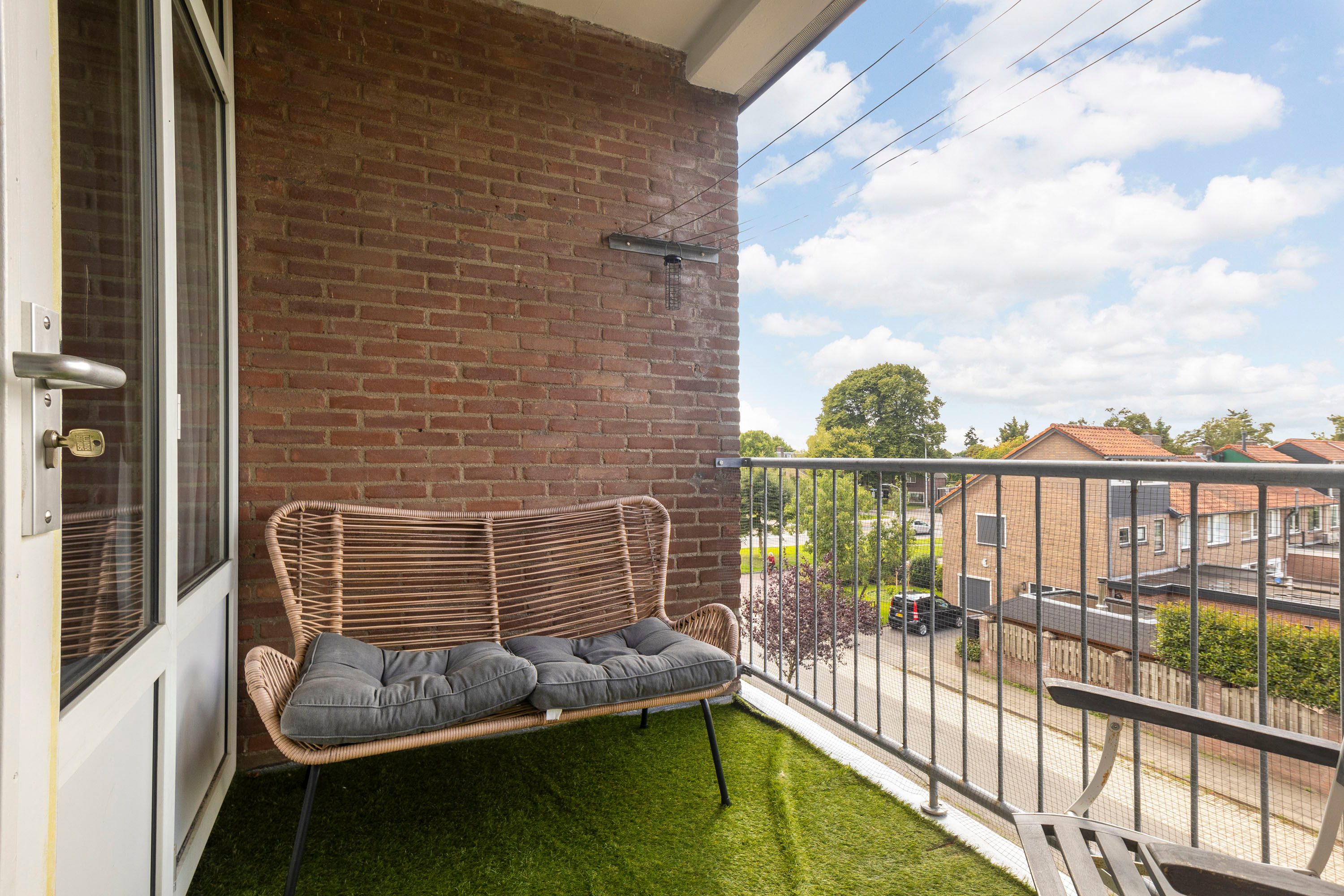 Het balkon op het westen is een fijne plek om buiten te zitten en te genieten van de middag- en avondzon. Daarnaast beschikt het appartement over een eigen berging van ca. 7 m² in het souterrain, ideaal voor fietsen of opslag.