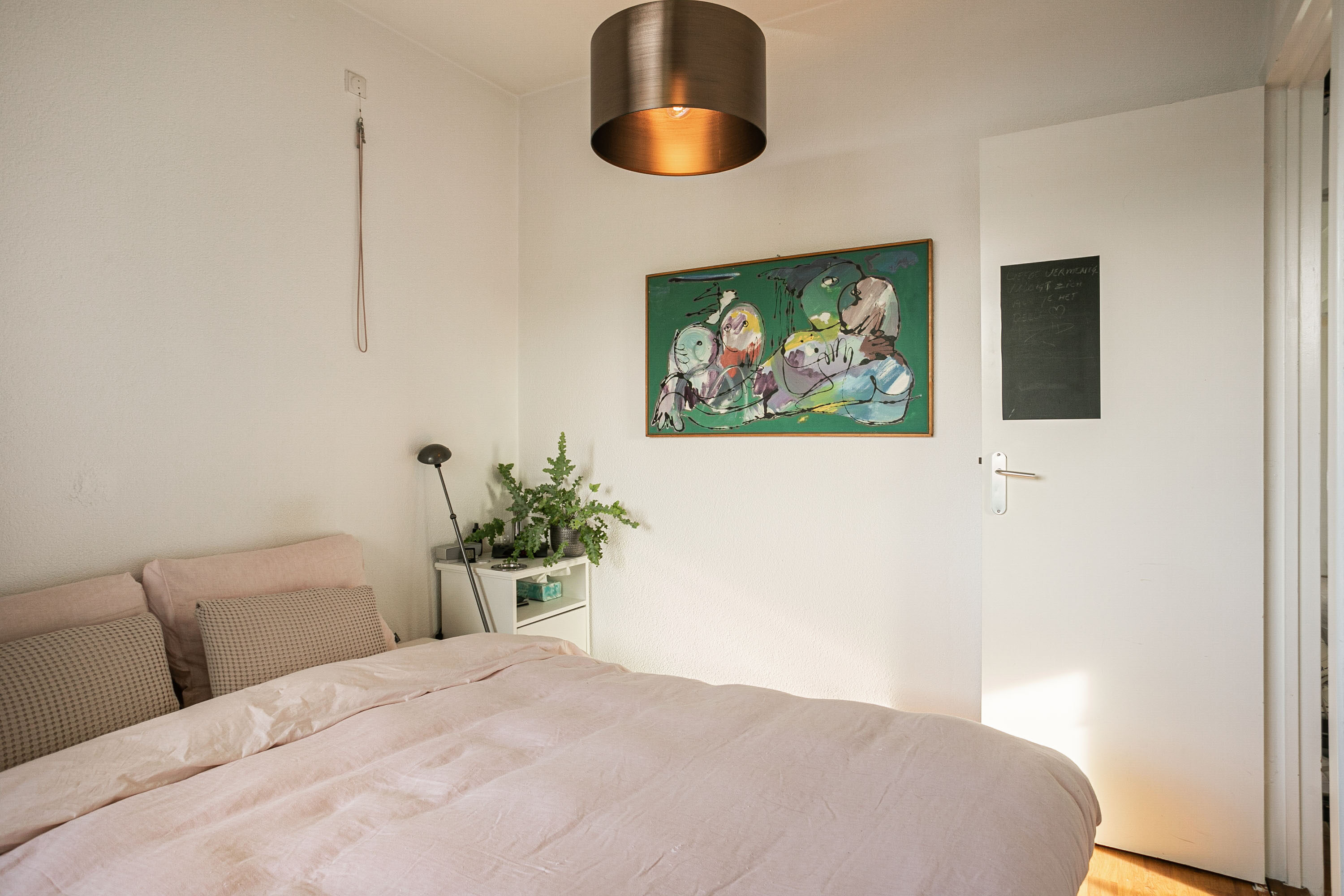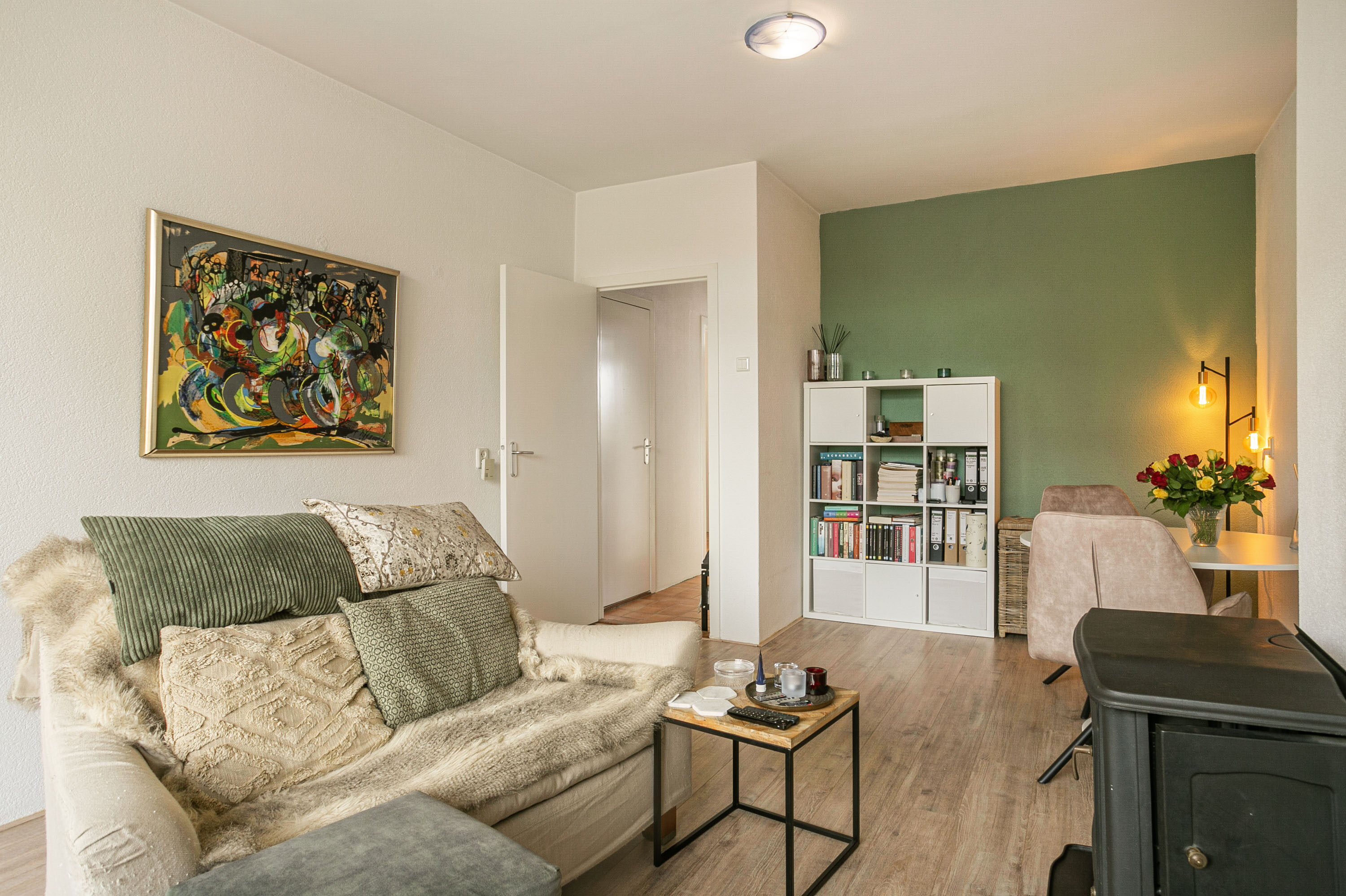Bij binnenkomst kom je in de entree met meterkast, vanwaar je toegang hebt tot de keuken, de woonkamer, de badkamer en de grote slaapkamer. De woonkamer van circa 21 m² heeft een groot raam met draai-kiepfunctie, wat zorgt voor veel lichtinval en optimale ventilatie. De aanwezige gaskachel geeft de ruimte een knusse en warme uitstraling. Via de woonkamer bereik je de tweede slaapkamer (ca. 5 m²), die zich ook uitstekend leent als werk- of hobbykamer. Deze kamer geeft toegang tot het zonnige balkon op het zuidoosten. Een heerlijke plek om ’s ochtends of in de middag van de zon te genieten.