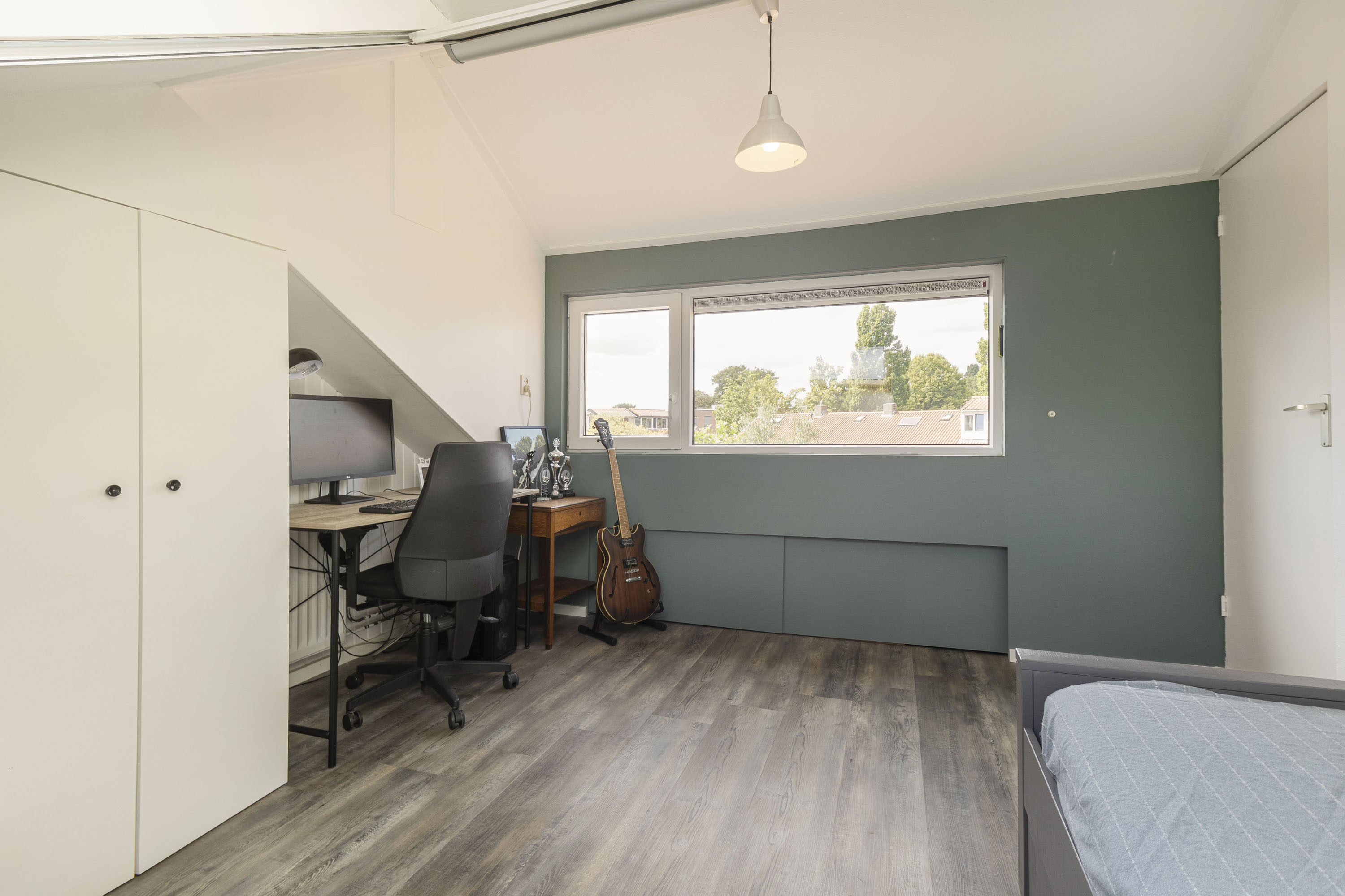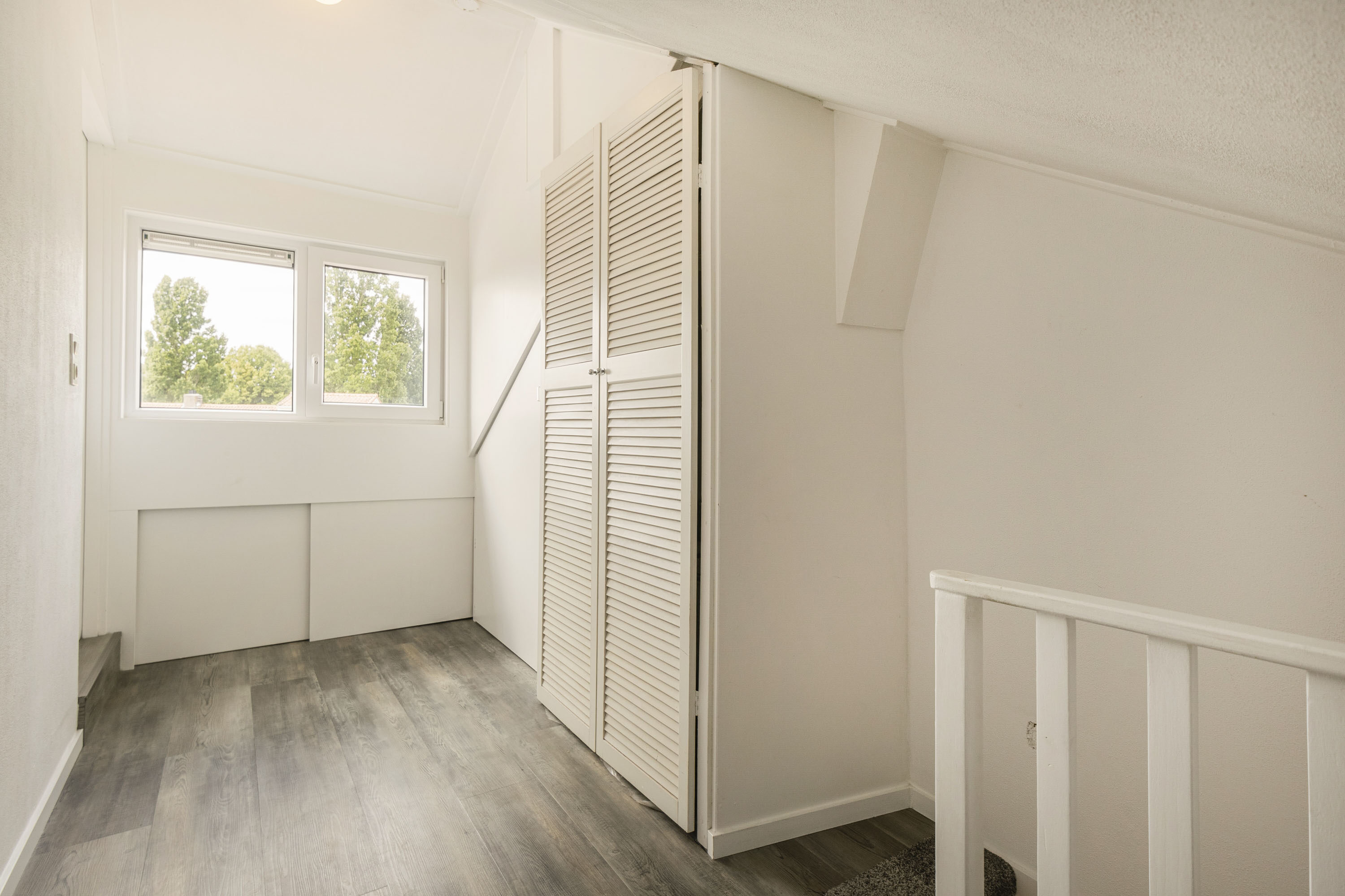 De vaste trap leidt naar een ruime en lichte overloop met inbouwkast en de cv-installatie. Daarnaast is hier de derde slaapkamer, die door de dakkapel en het dakraam ruim en licht aanvoelt.