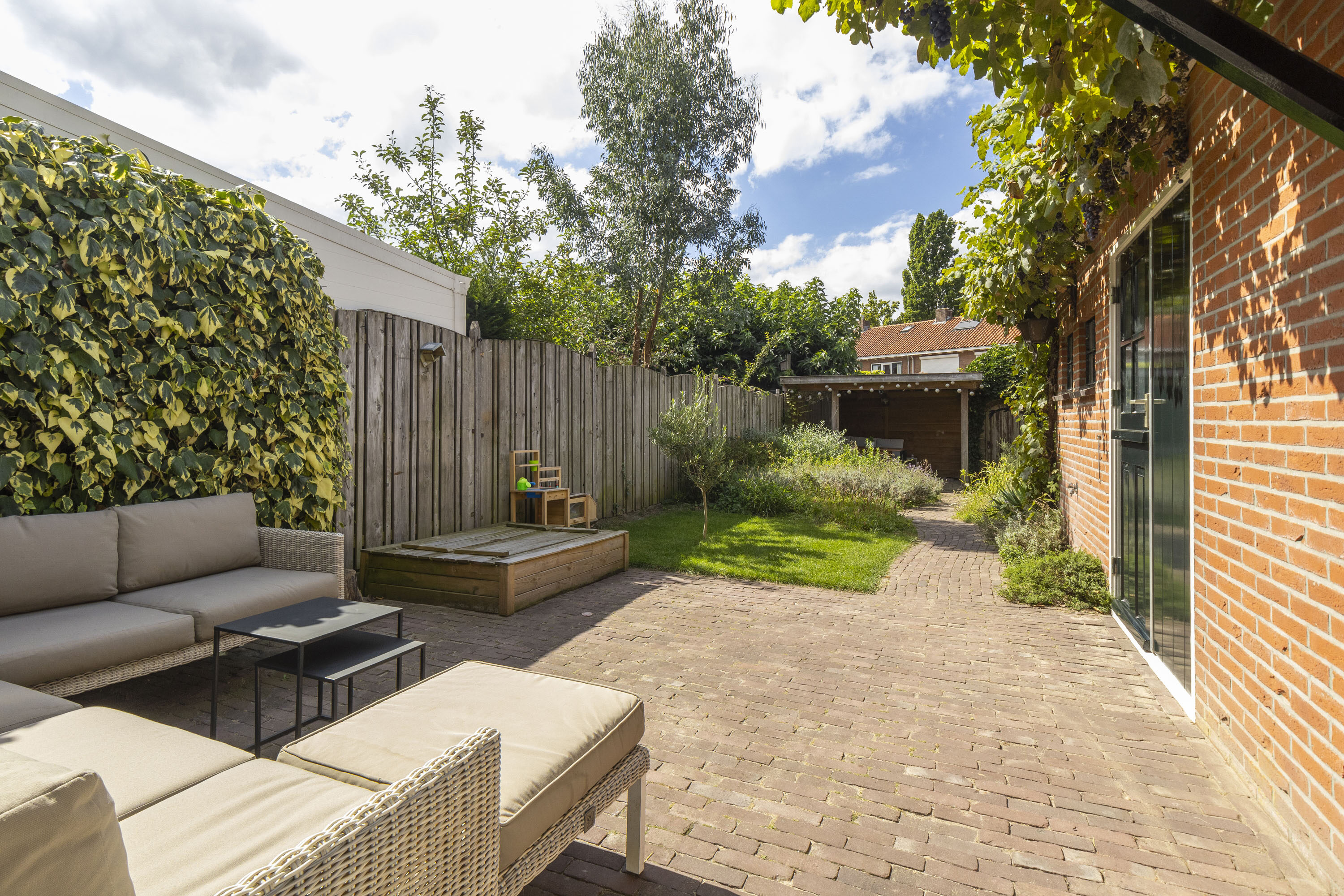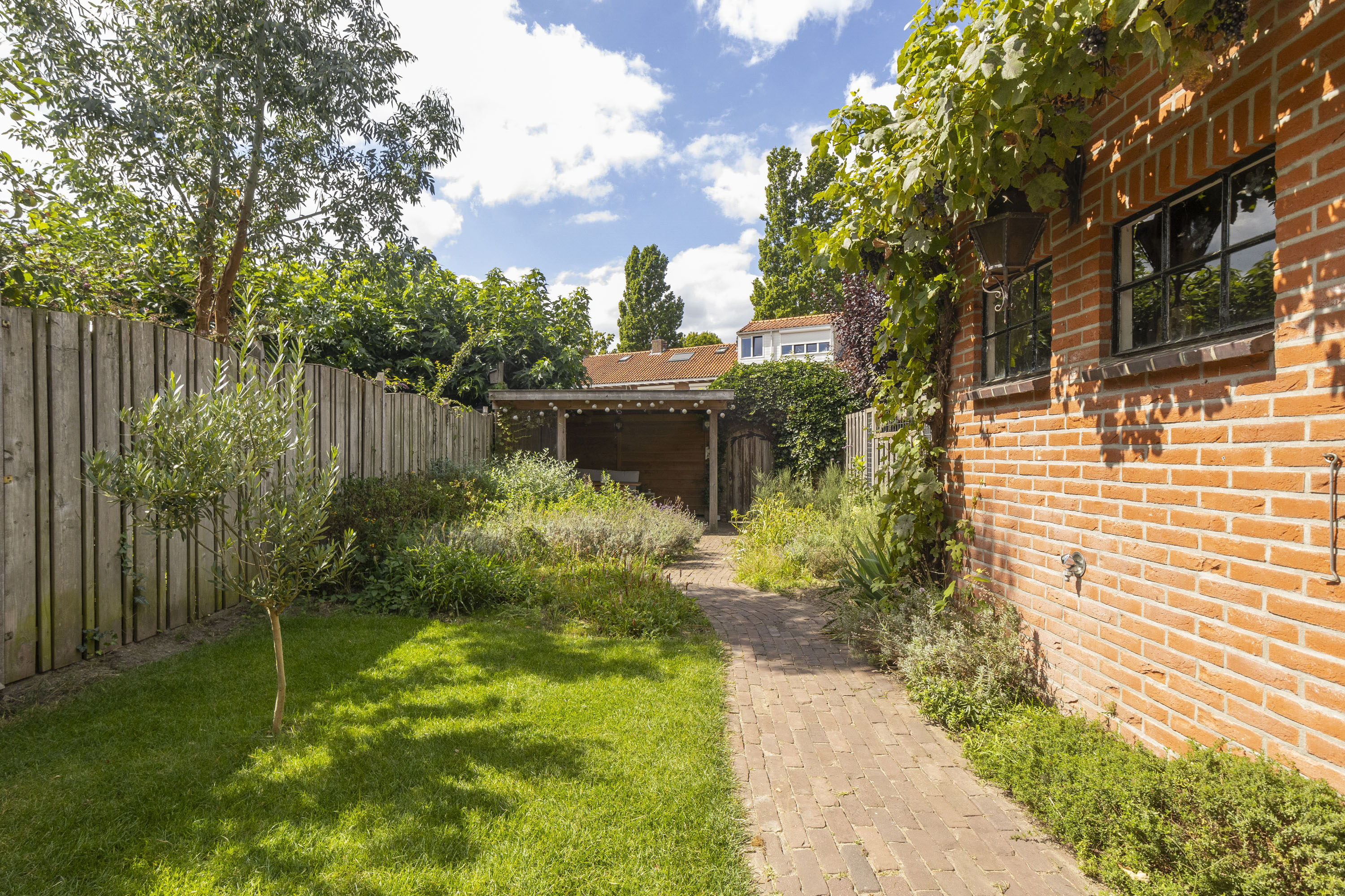 De achtertuin is ruim 18 meter diep en ligt op het westen. Dankzij de grootte zijn er meerdere zithoeken te creëren. Achter in de tuin bevindt zich een veranda. Daarnaast is er een praktische stenen berging met vliering, perfect geschikt voor extra opslag. De tuin is tevens gemakkelijk toegankelijk via een achterom.