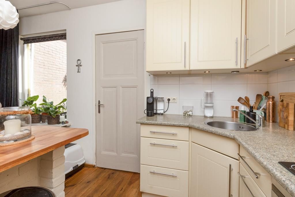Begane grond: Bij binnenkomst in de hal is er toegang naar de woonkamer en de trapopgang naar de verdieping. De woonkamer is voorzien van een massief houten vloer, vernieuwde meterkast (2023) en keukenblok met de volgende apparatuur: koelkast met vriesladen, gas kookplaat, afzuigkap en combi-magnetron.