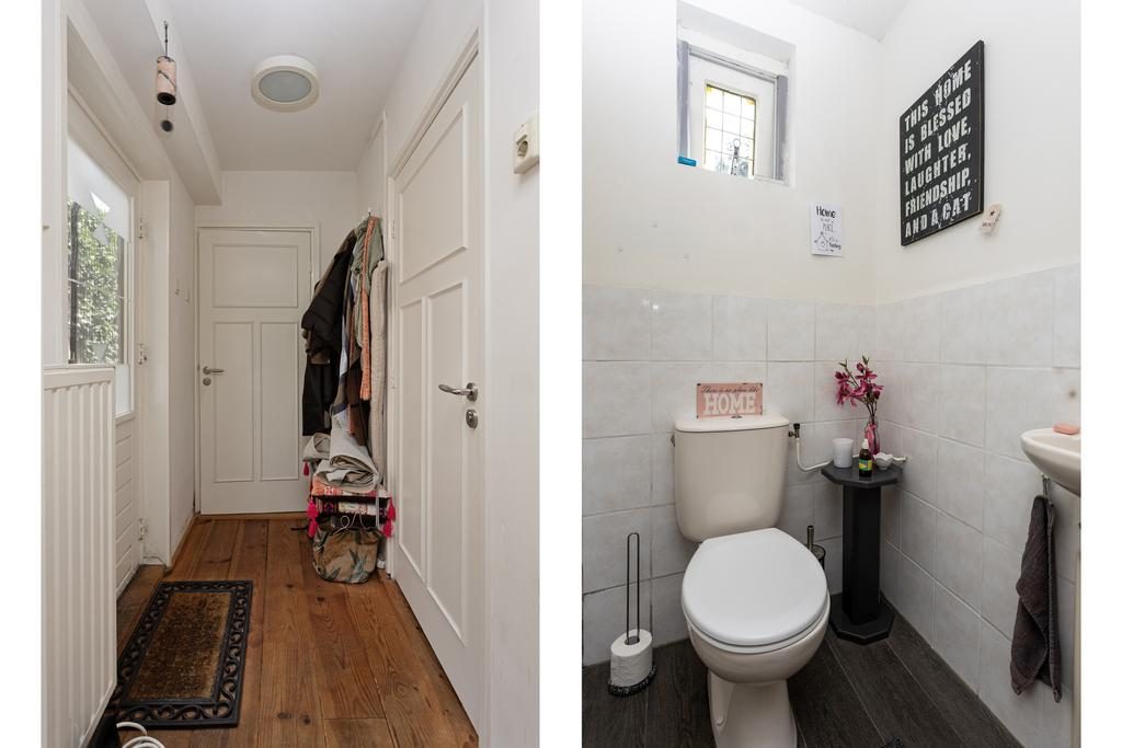 Via de tussenhal is er toegang naar de badkamer, separaat toilet en naar de achtertuin. De volledig getegelde badkamer is in 2020 vernieuwd en voorzien van een inloopdouche, wastafelmeubel, designradiator en aansluiting voor wasmachine- en droger.