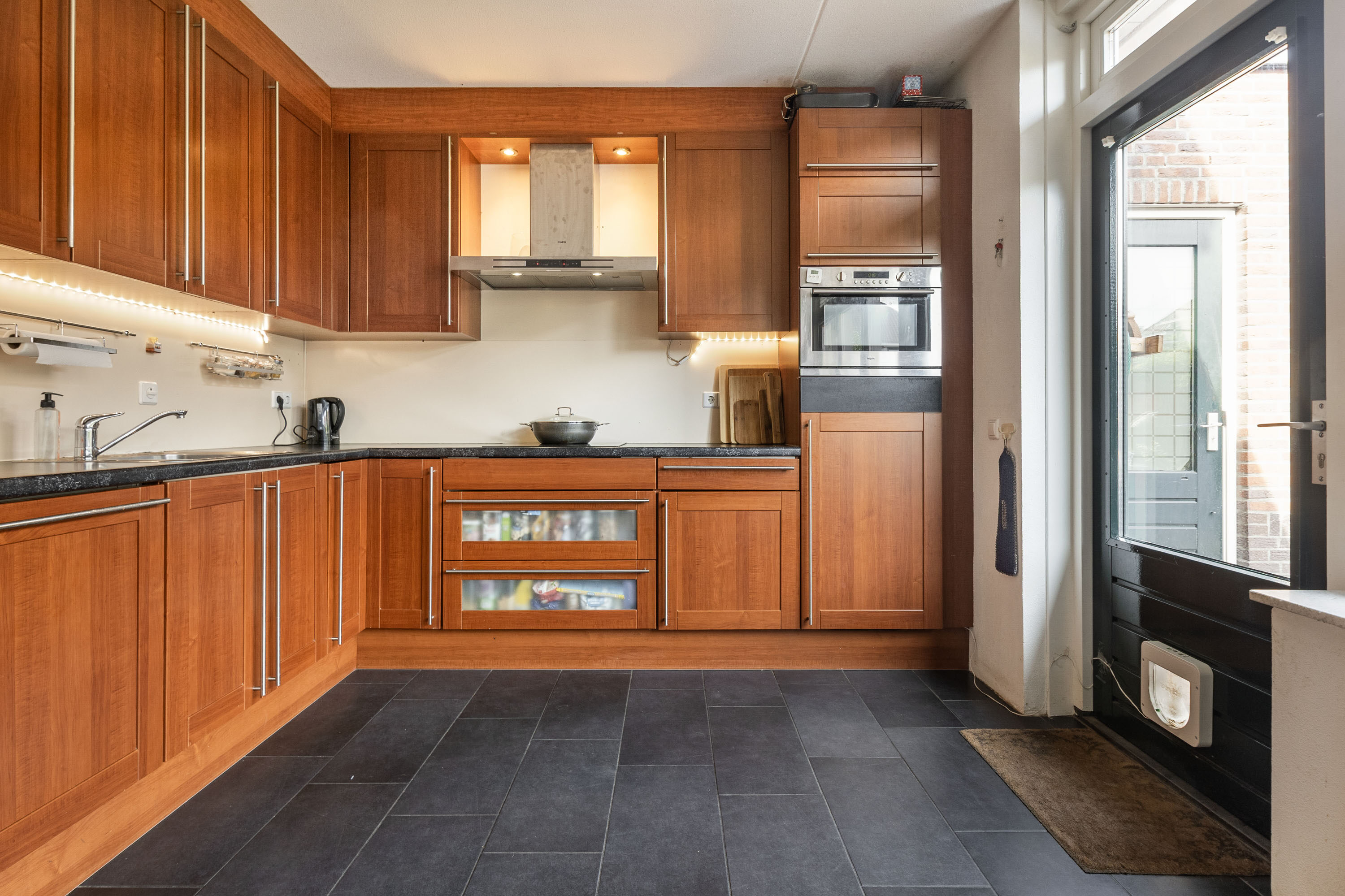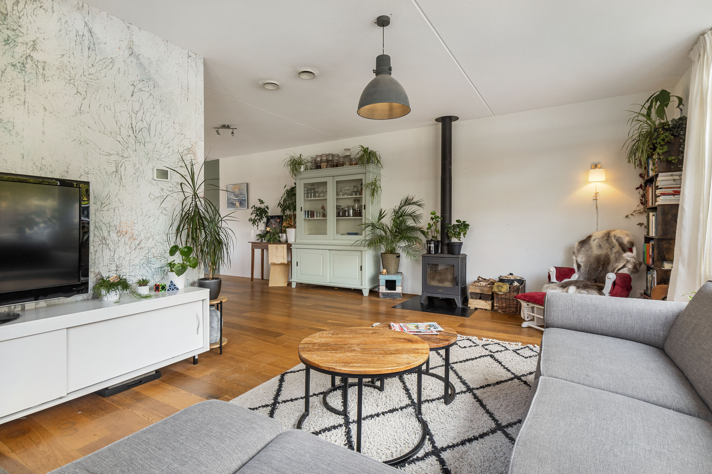 Via de entree kom je in de ruime woonkamer van 41 m², waar de grote raampartijen zorgen voor veel lichtinval. De sfeervolle houtkachel vormt het hart van de ruimte. Aan de andere zijde bevindt zich de keuken met houten fronten en veel opbergruimte. De keuken is uitgerust met diverse inbouwapparatuur, waaronder een oven en inductiekookplaat, koelkast en een vaatwasser.