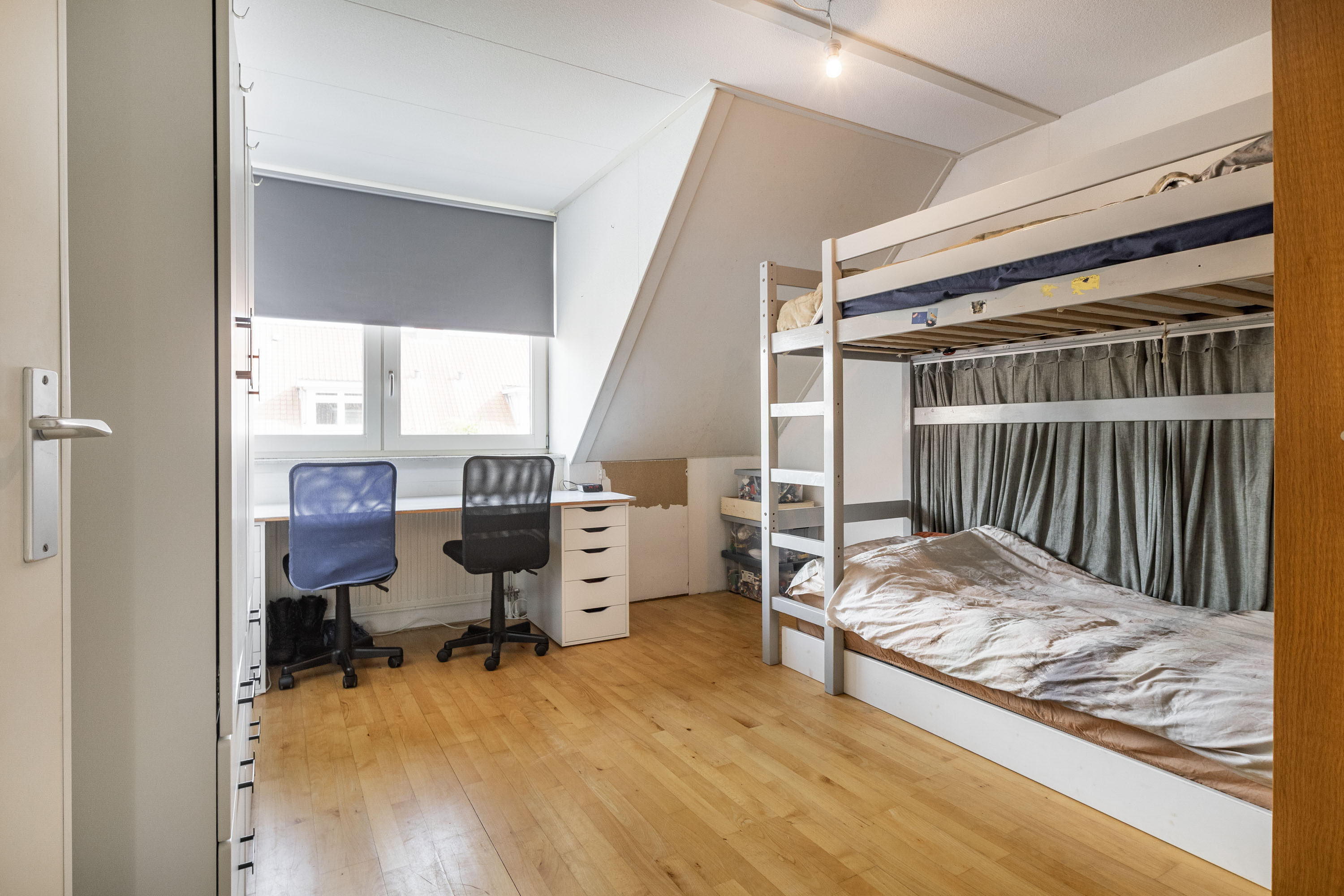 Via een vaste trap kom je op de tweede verdieping, waar je wordt verwelkomd door een ruime overloop. Achter de schotten vind je extra opbergruimte en er is een vliering aanwezig. Op deze verdieping zijn er ook praktische voorzieningen, zoals een wasmachineaansluiting en de cv-installatie. Daarnaast beschikt deze verdieping over een vierde slaapkamer van 11 m², die perfect kan dienen als slaapkamer, extra logeerkamer, studeerkamer of hobbyruimte.