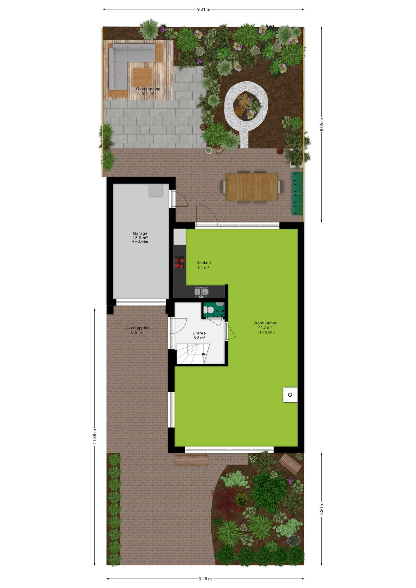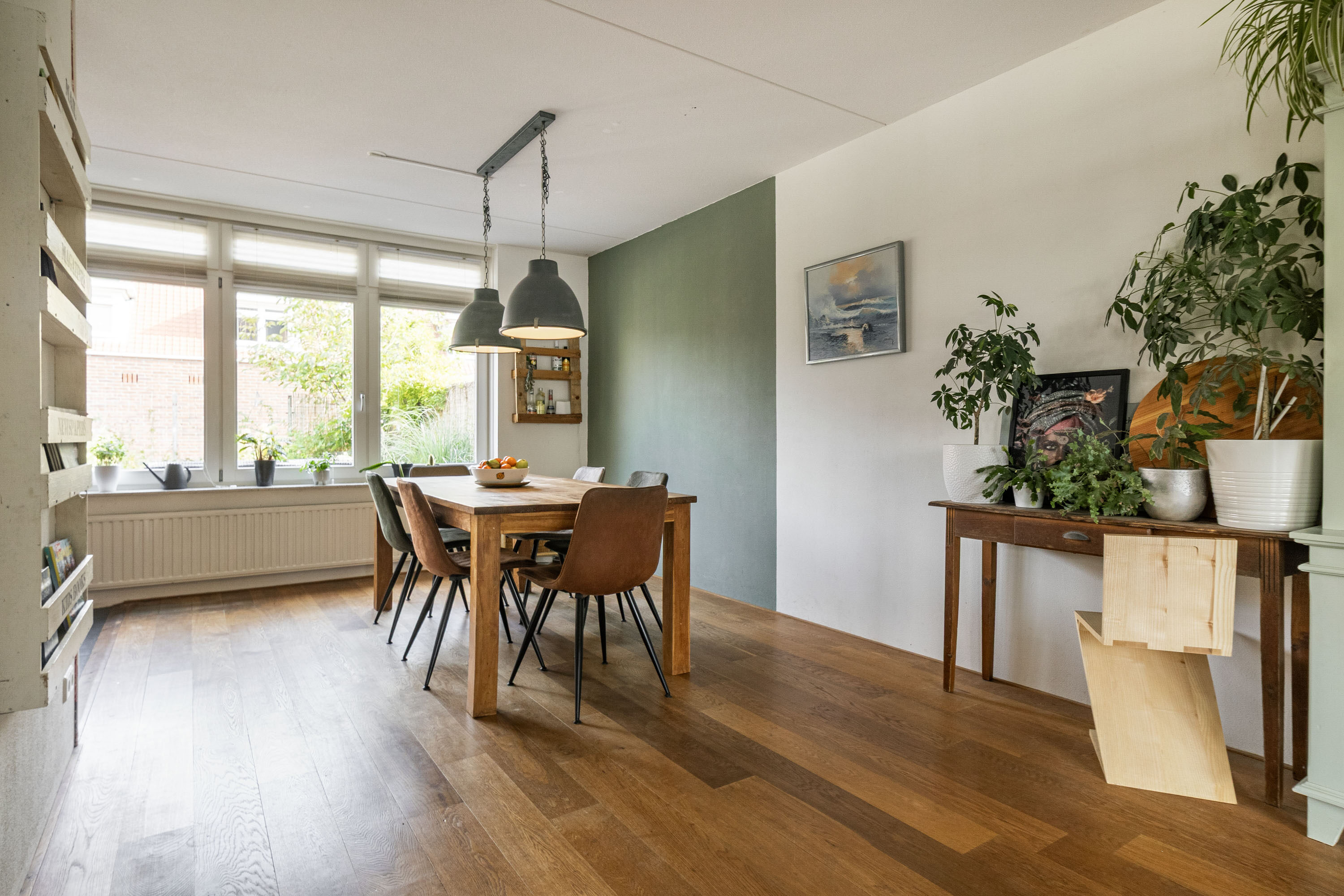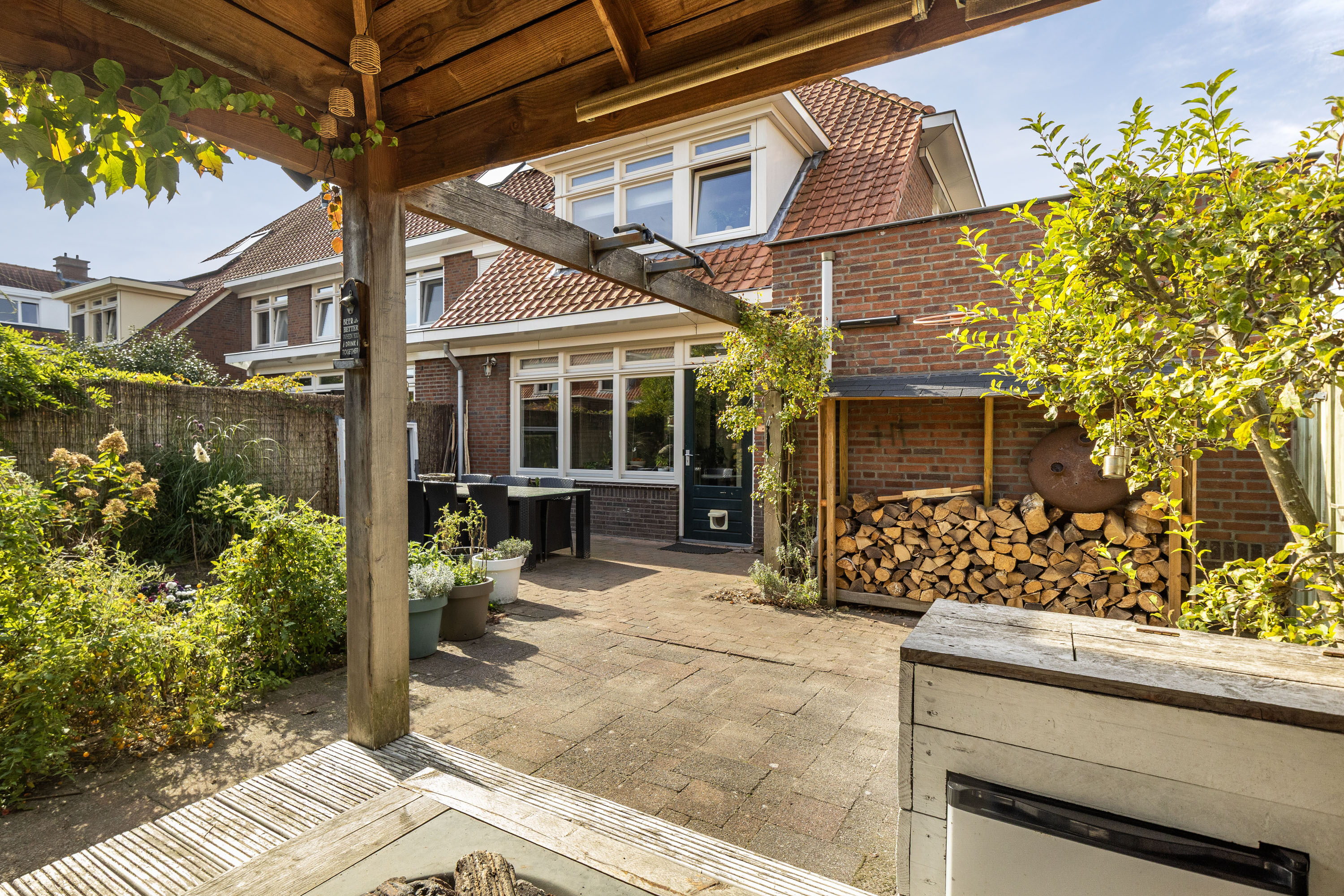 De achtertuin is gelegen op het oosten en beschikt over een royale, beschutte veranda waar je het hele jaar door van een gezellige zitplek geniet, ongeacht de weersomstandigheden. Daarnaast grenst de tuin aan de garage van 13,9 m², die ideaal is voor het opbergen van fietsen, tuingereedschap en andere voorwerpen. Aan de voorzijde van de woning is er parkeerruimte op eigen terrein, zodat je altijd gemakkelijk en veilig je auto kunt parkeren.