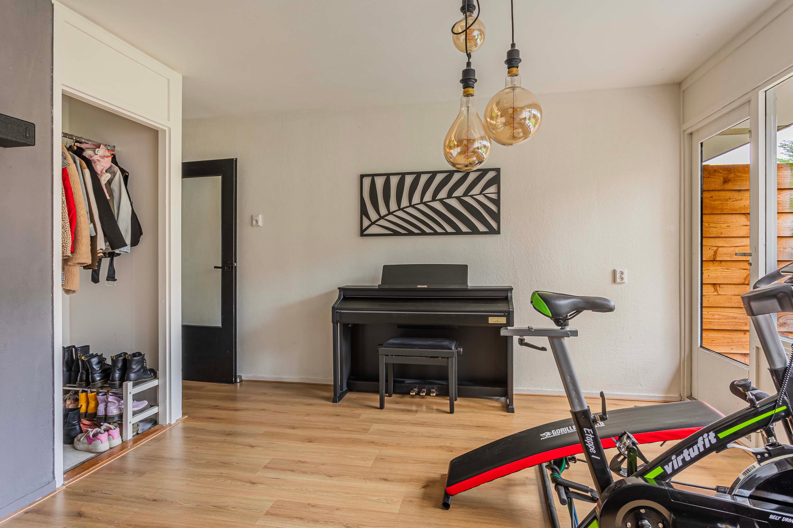 De slaapkamer wordt momenteel gebruikt door de bewoners als hobby ruimte. Deze ruimte heeft een handige bergkast, tevens betreed je vanaf hier de tuin.