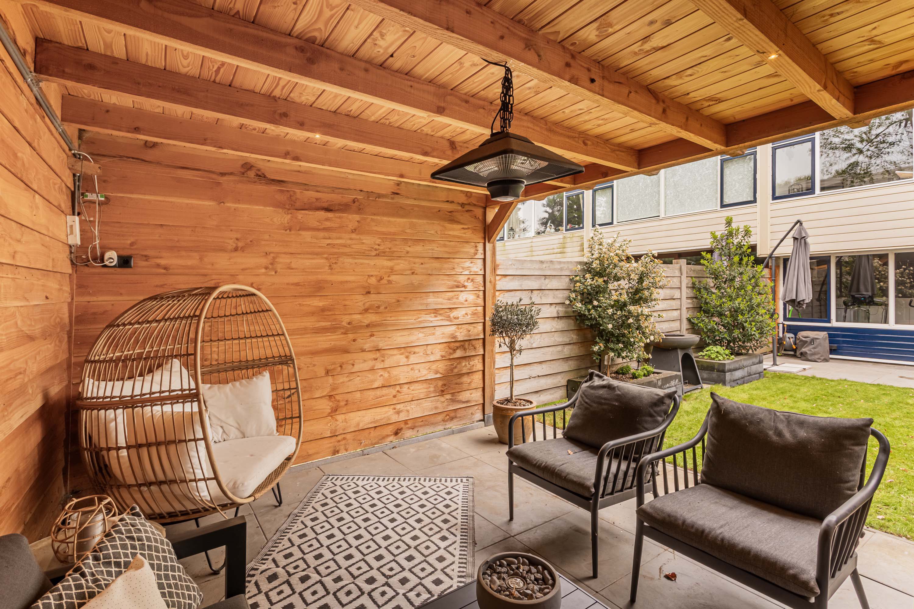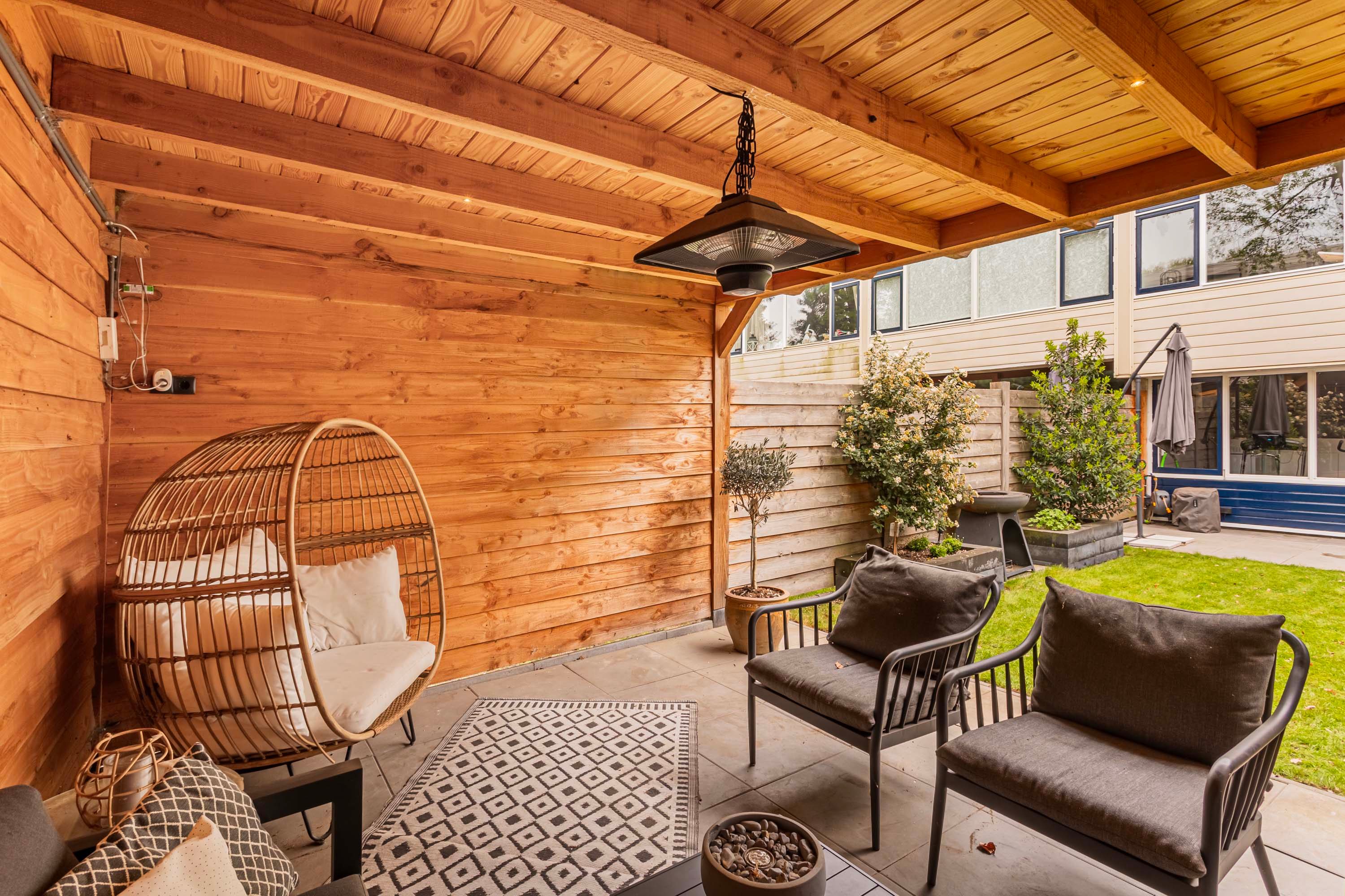 De achterdeur op de begane grond leidt naar de verzorgde achtertuin, gelegen op het noordwesten. De tuin is fraai aangelegd en biedt voldoende ruimte om te ontspannen of te spelen. Achterin de tuin staat een heerlijke veranda, waar je optimaal kunt genieten van het buitenleven, ongeacht het weer. Perfect om te ontspannen met een goed boek of te genieten van een gezellige avond met vrienden.