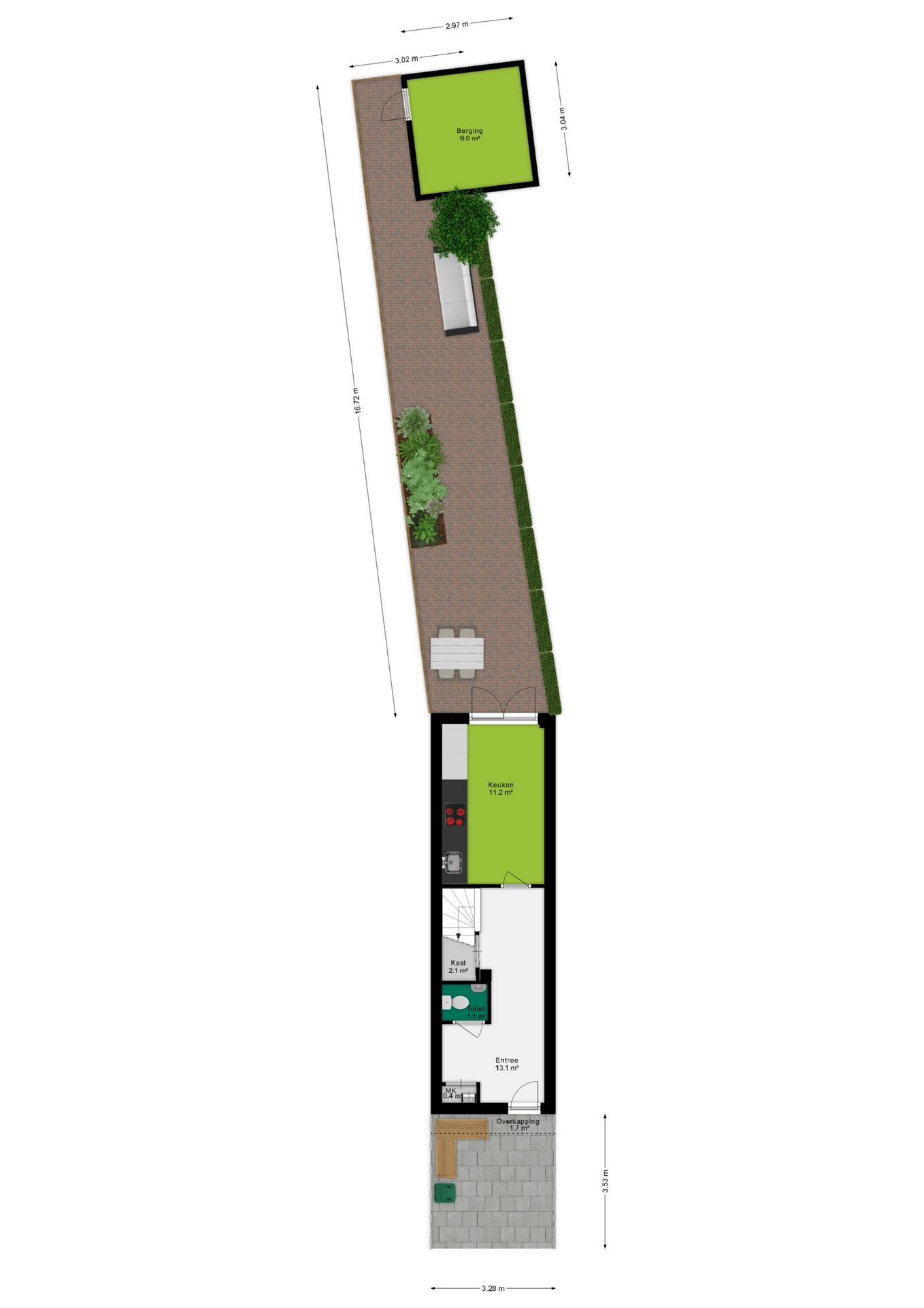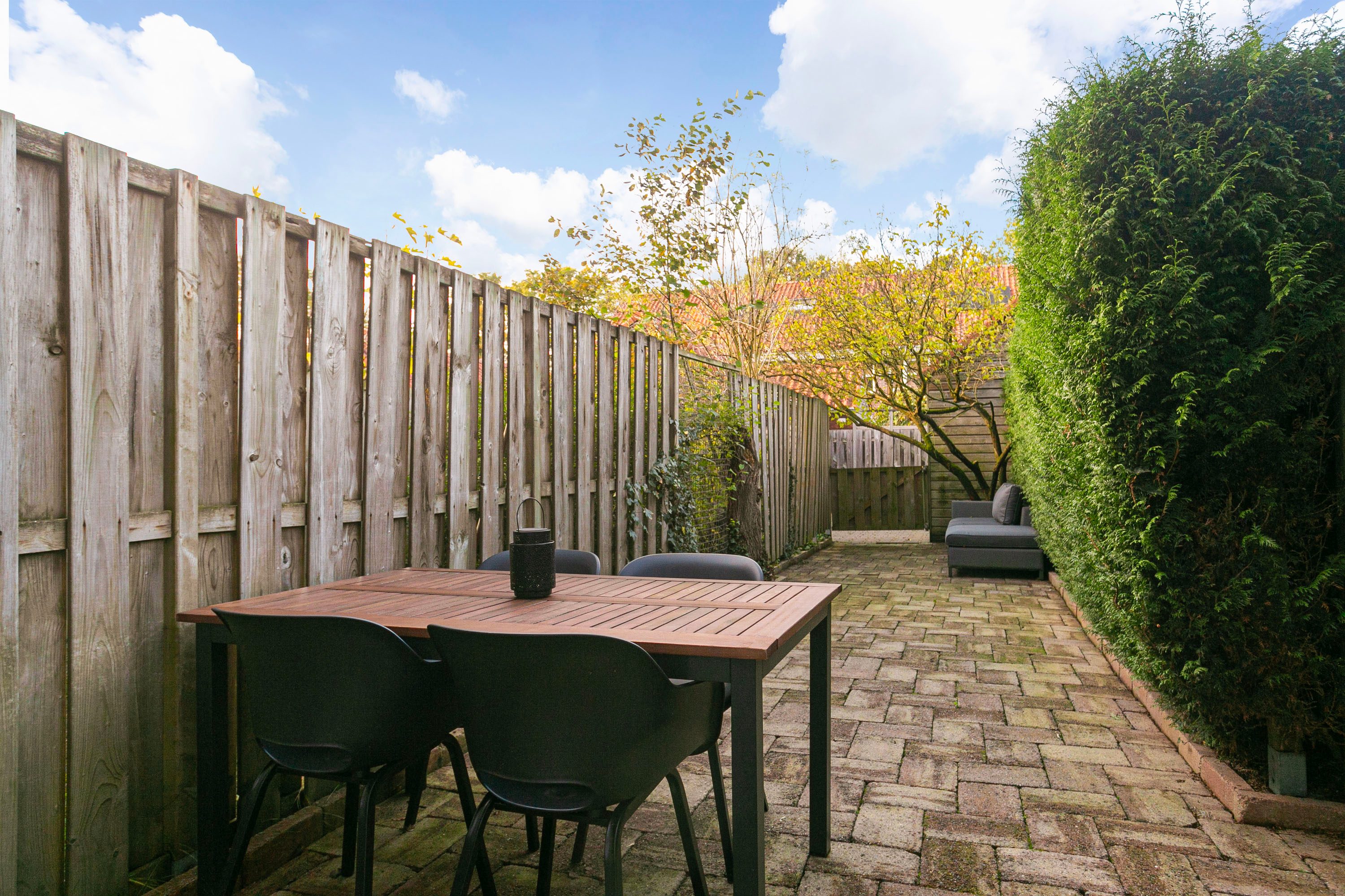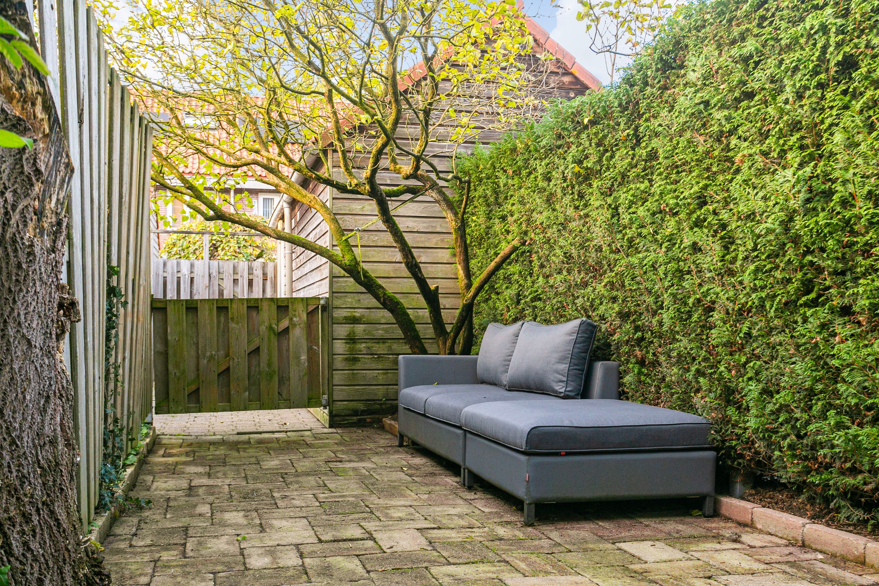 • Lange achtertuin, altijd wel een zonnige plek