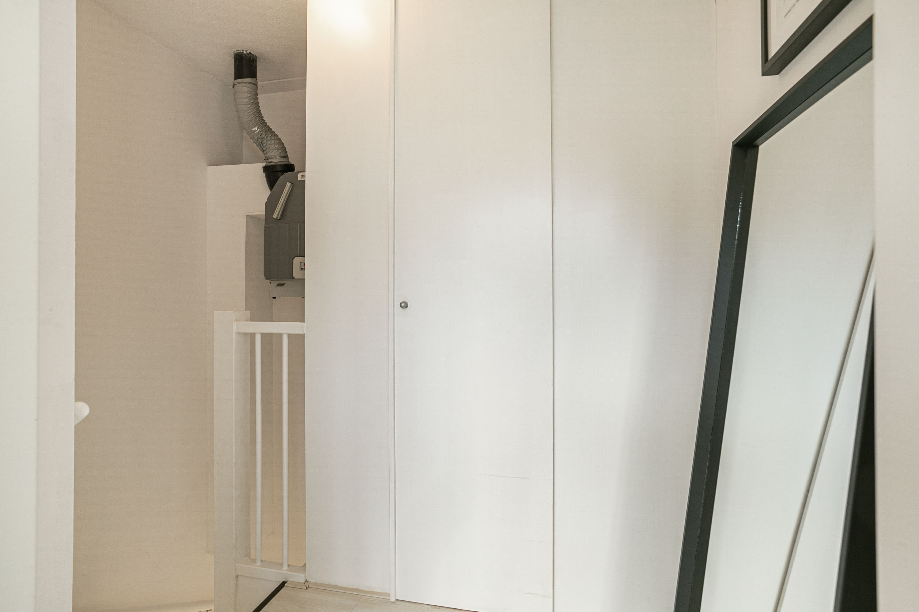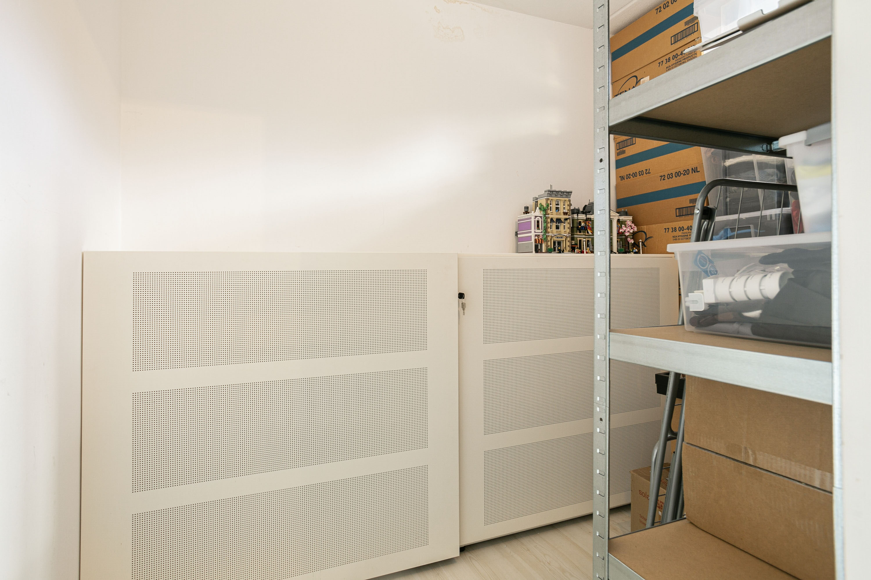 Op de bovenste verdieping bevindt zich een ruime kamer met een praktische scheidingswand, ideaal als hobbyruimte, extra slaapkamer of werkplek. De afgescheiden kleinere ruimte is handig te gebruiken als extra bergruimte of als inloopkast. Vanuit deze verdieping heb je toegang tot het balkon op het zuiden. Dit balkon biedt dankzij de hoge muren veel privacy, terwijl kleine raampjes zorgen voor een prettige lichtinval.
