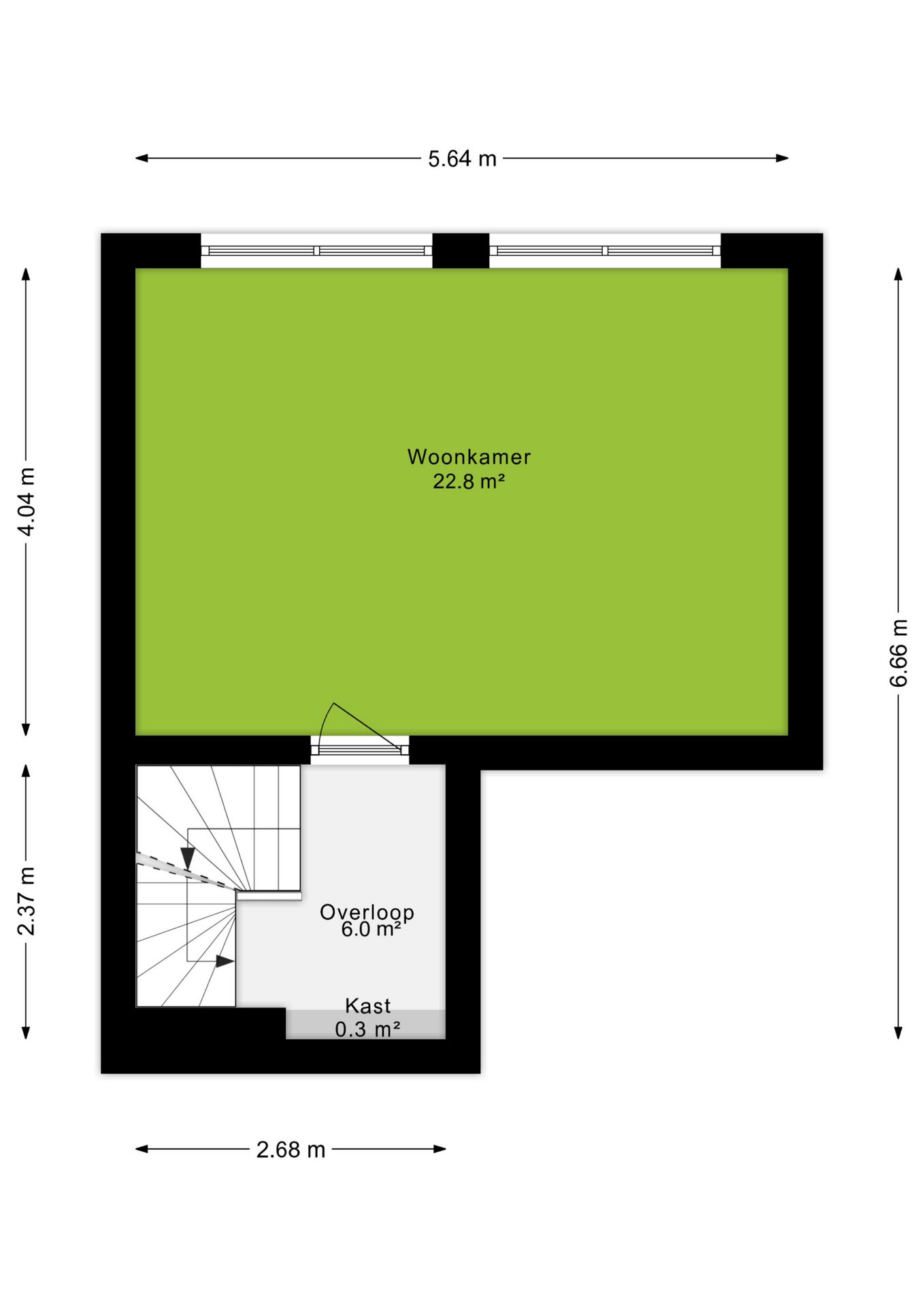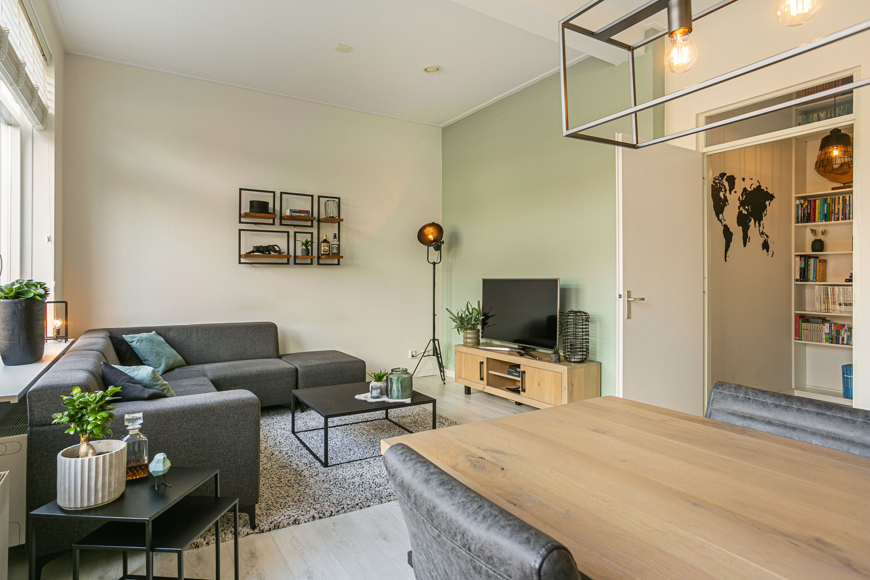 Op de eerste verdieping bevindt zich de ruime woonkamer van bijna 23 m². Dankzij de hoge plafonds en grote raampartijen voelt de ruimte heerlijk ruim en licht aan. Er is ruimte genoeg voor zowel een zithoek als een ruime eettafel. Doordat de woonkamer op de tweede verdieping ligt, geniet je van optimale privacy en geen ongewenste inkijk.