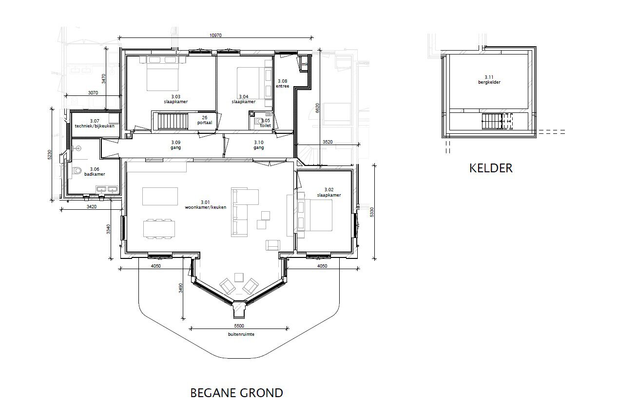 Bouwnummer 3 is met recht riant te noemen: de woning beschikt over een woonoppervlak van ca. 162 m² met een woonkamer van maar liefst 60 m². Deze lichte leefruimte biedt volop mogelijkheden voor een luxueuze indeling met een royale zithoek, open keuken met kookeiland en een grote eettafel. De vele raampartijen zorgen voor een natuurlijke lichtinval en een directe verbinding met het enorme zonneterras van 42 m² op het zuiden – een unieke buitenruimte waar u tot in de avond kunt genieten van rust en privacy.