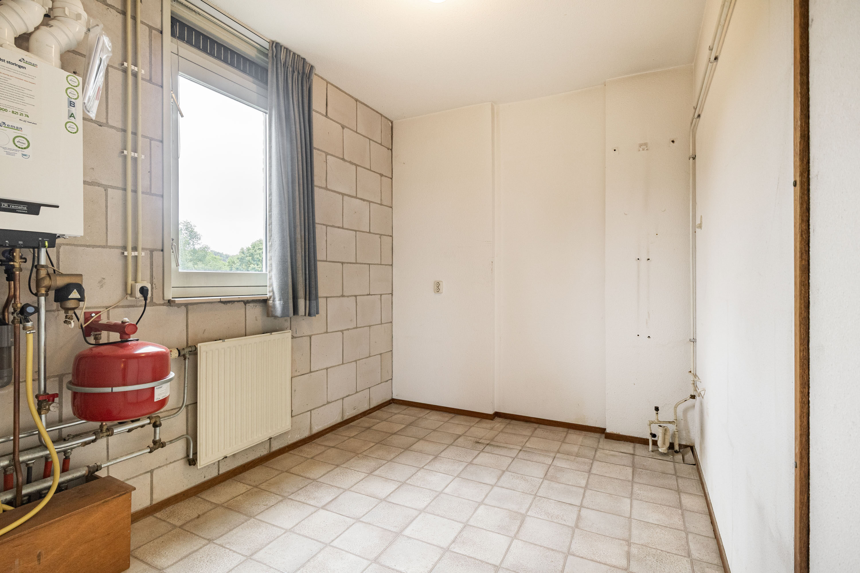 De keuken is praktisch ingericht met een elektrische kookplaat, oven en koelkast. Vanuit hier loop je door naar het tweede balkon, gelegen aan de voorzijde (noordoosten), én vanuit de keuken heb je toegang tot de bijkeuken met cv-opstelling.