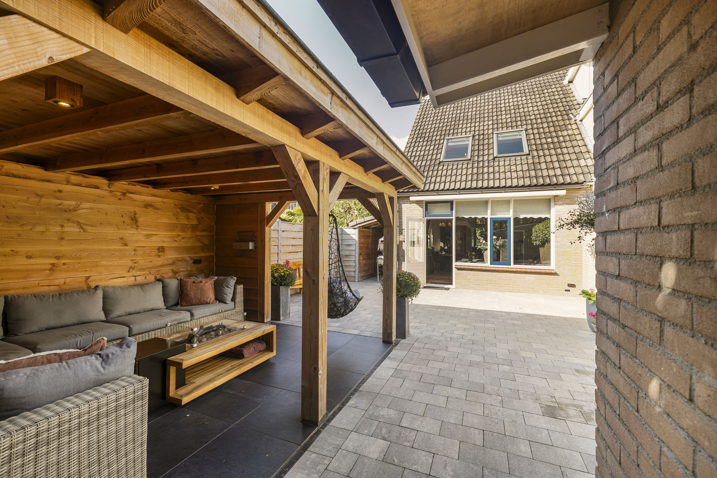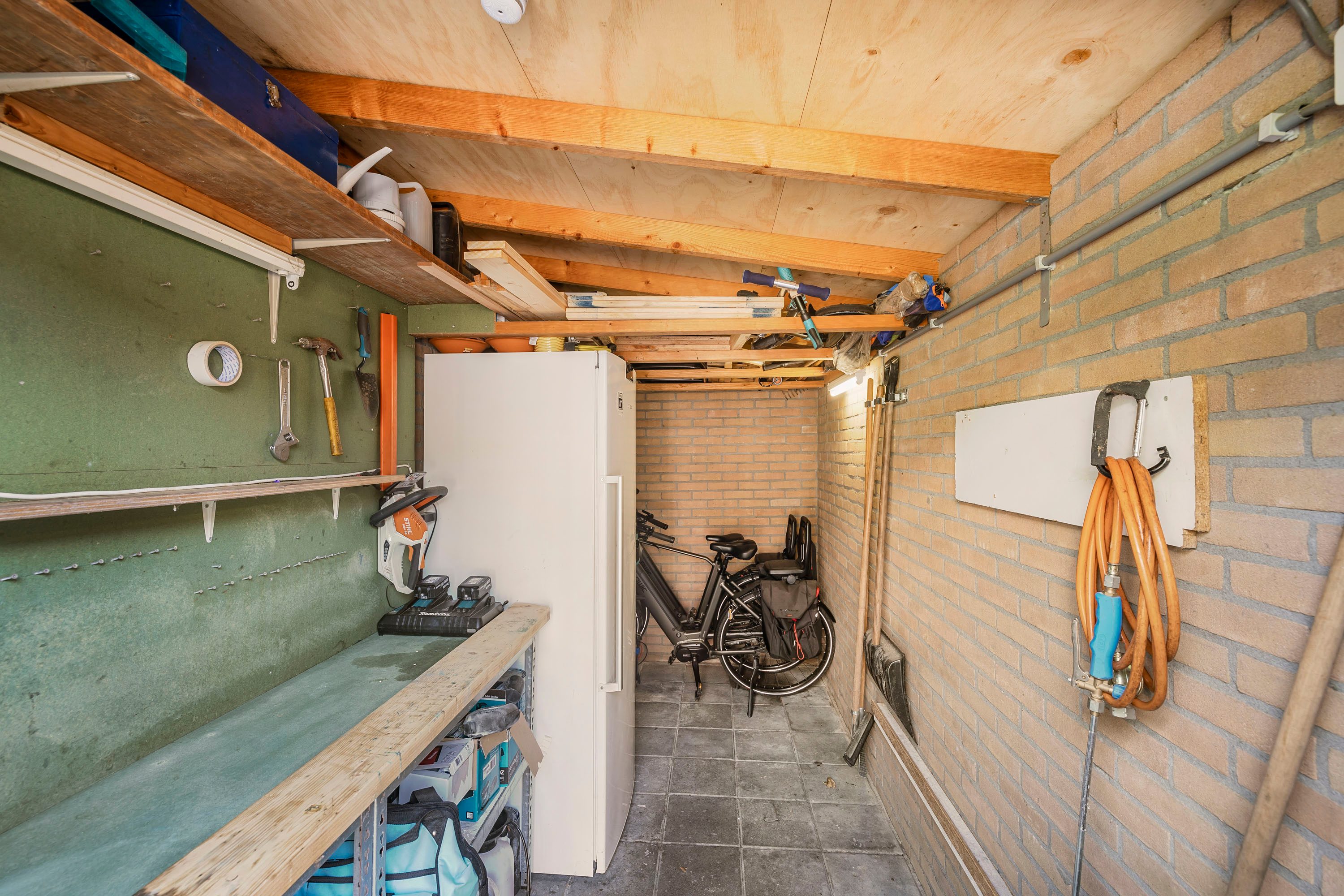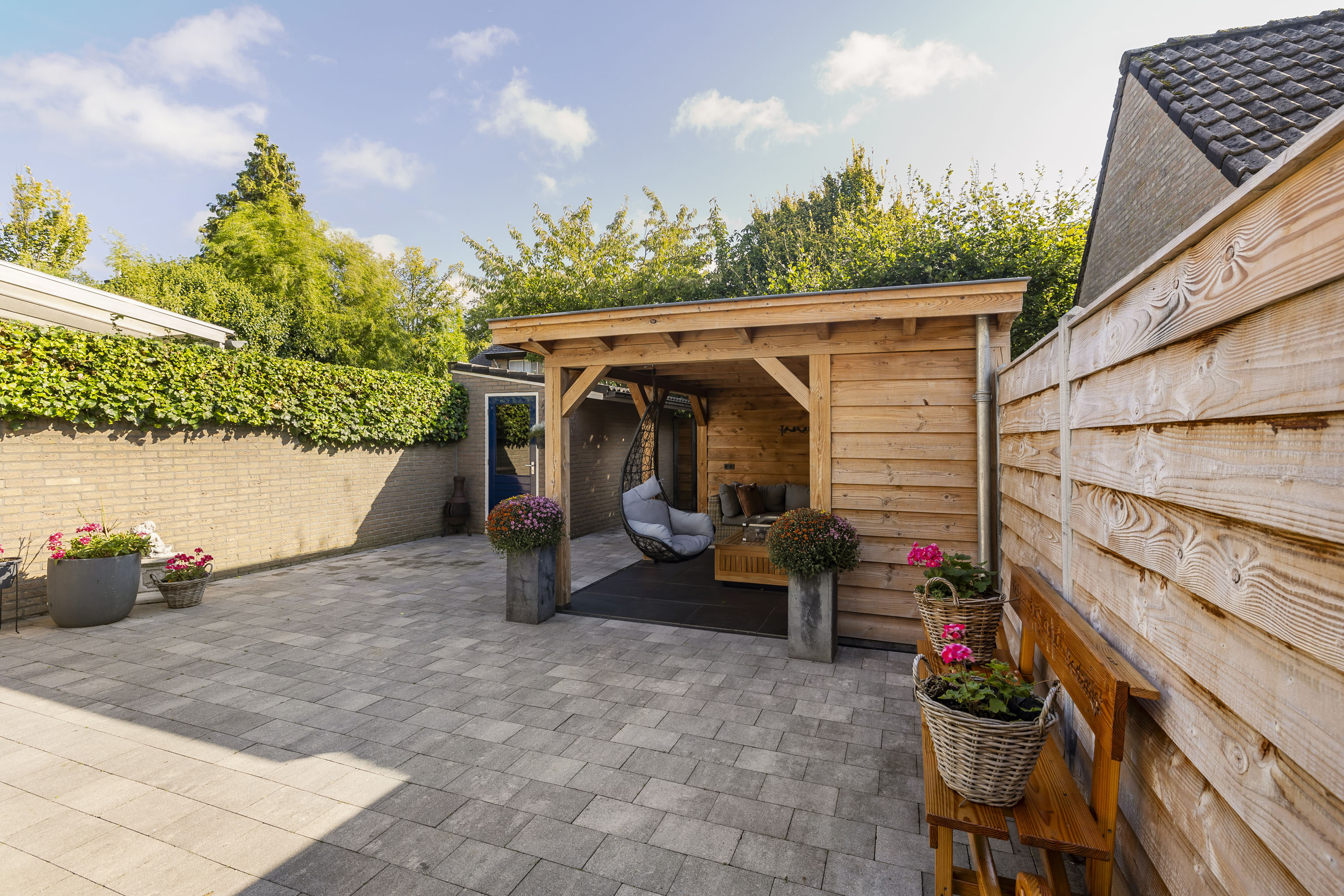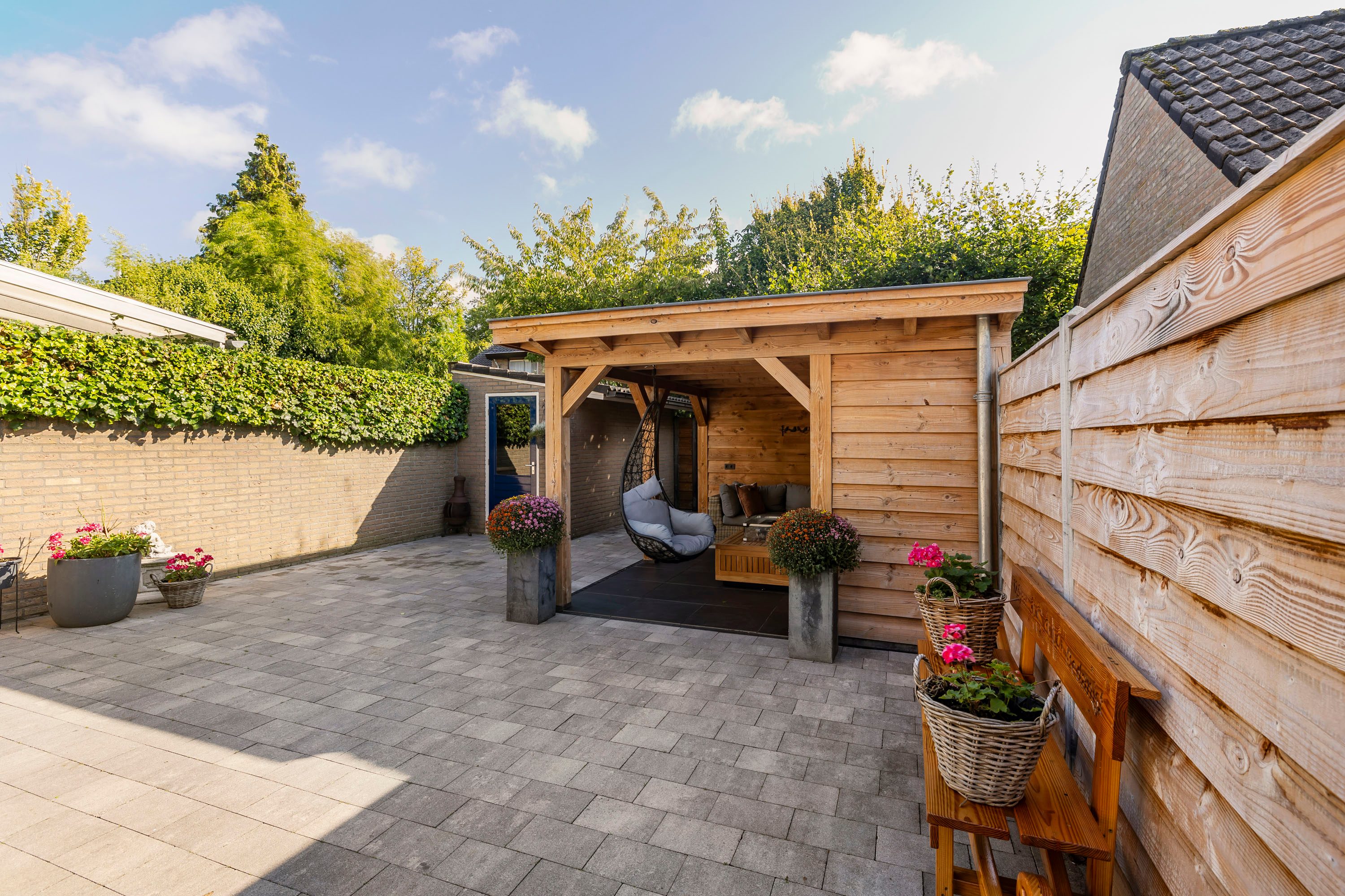 De tuin van circa 40 m² ligt op het oosten en beschikt over een veranda en een ruime berging van circa 7 m². Dankzij de achterom is de tuin goed bereikbaar. Ook aan de voorzijde van de woning is een zitje gecreëerd, ideaal om te genieten van de middag- en avondzon.