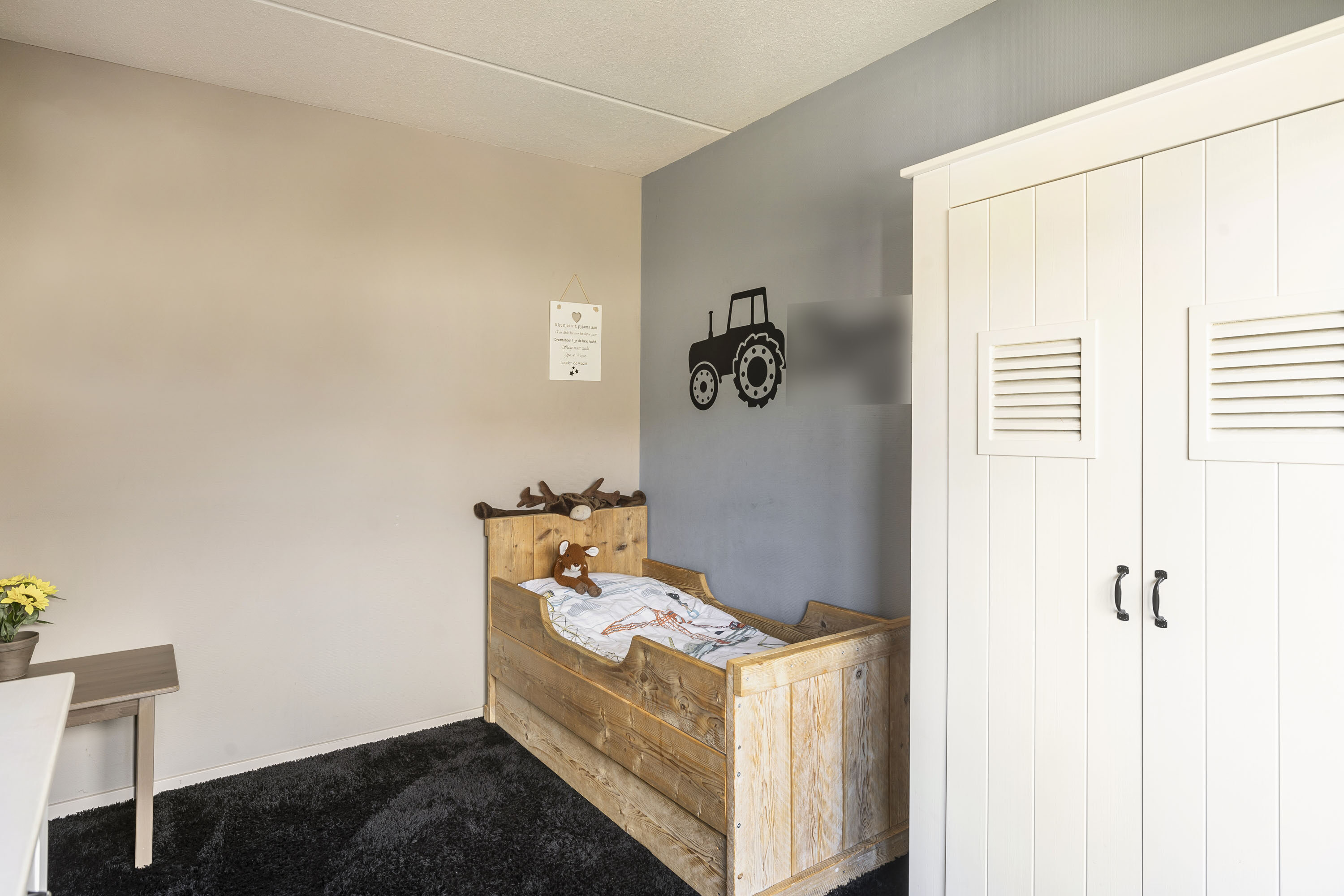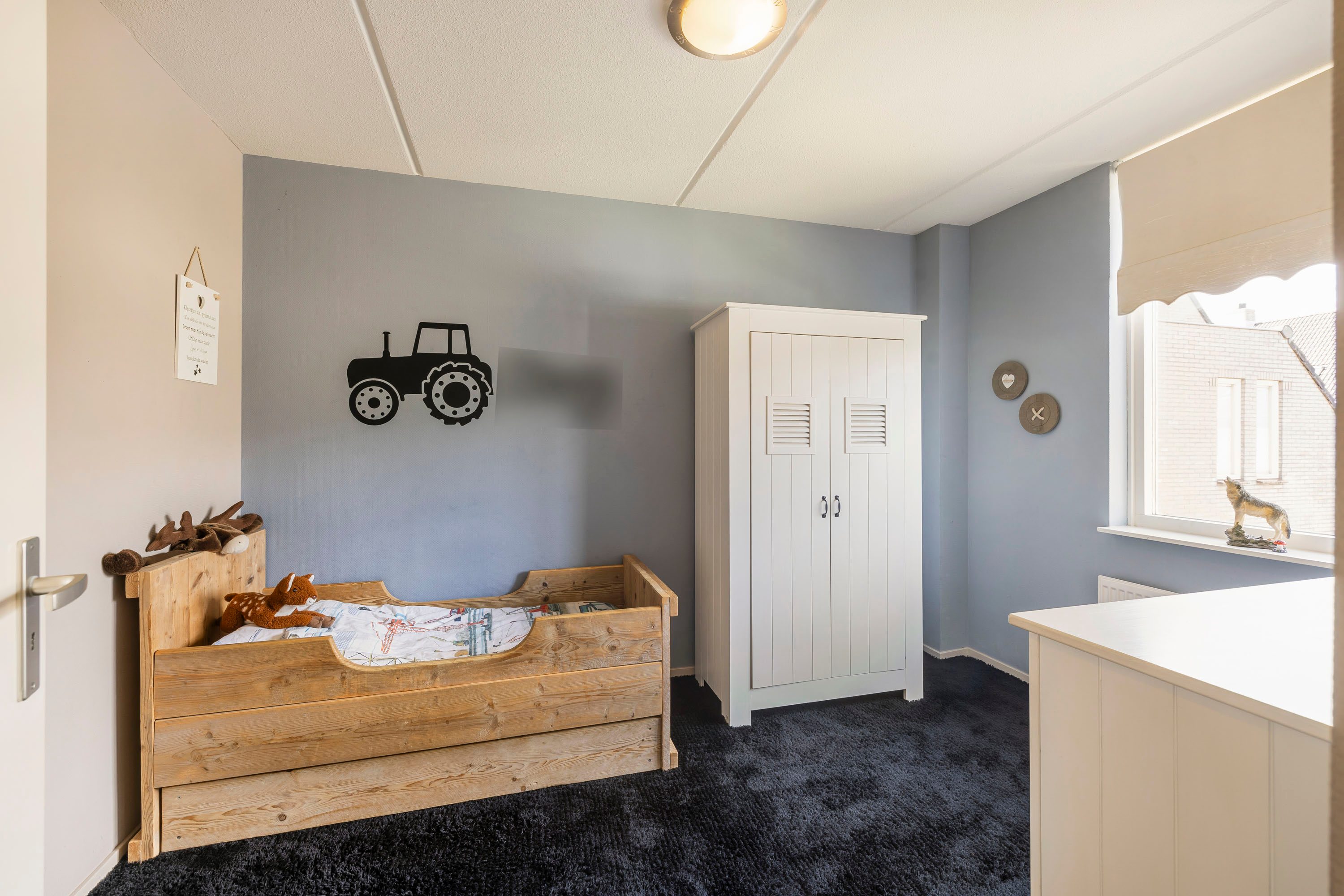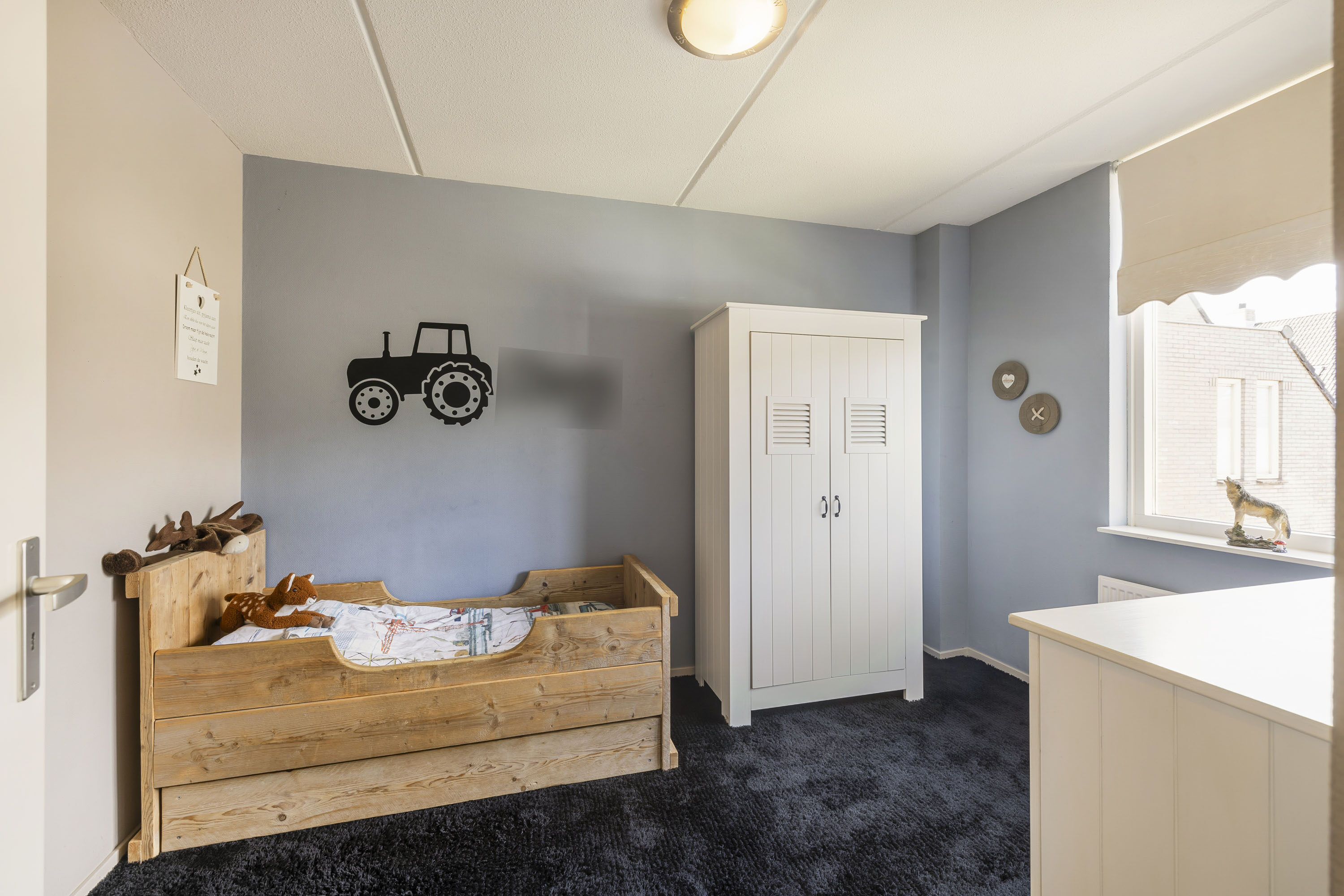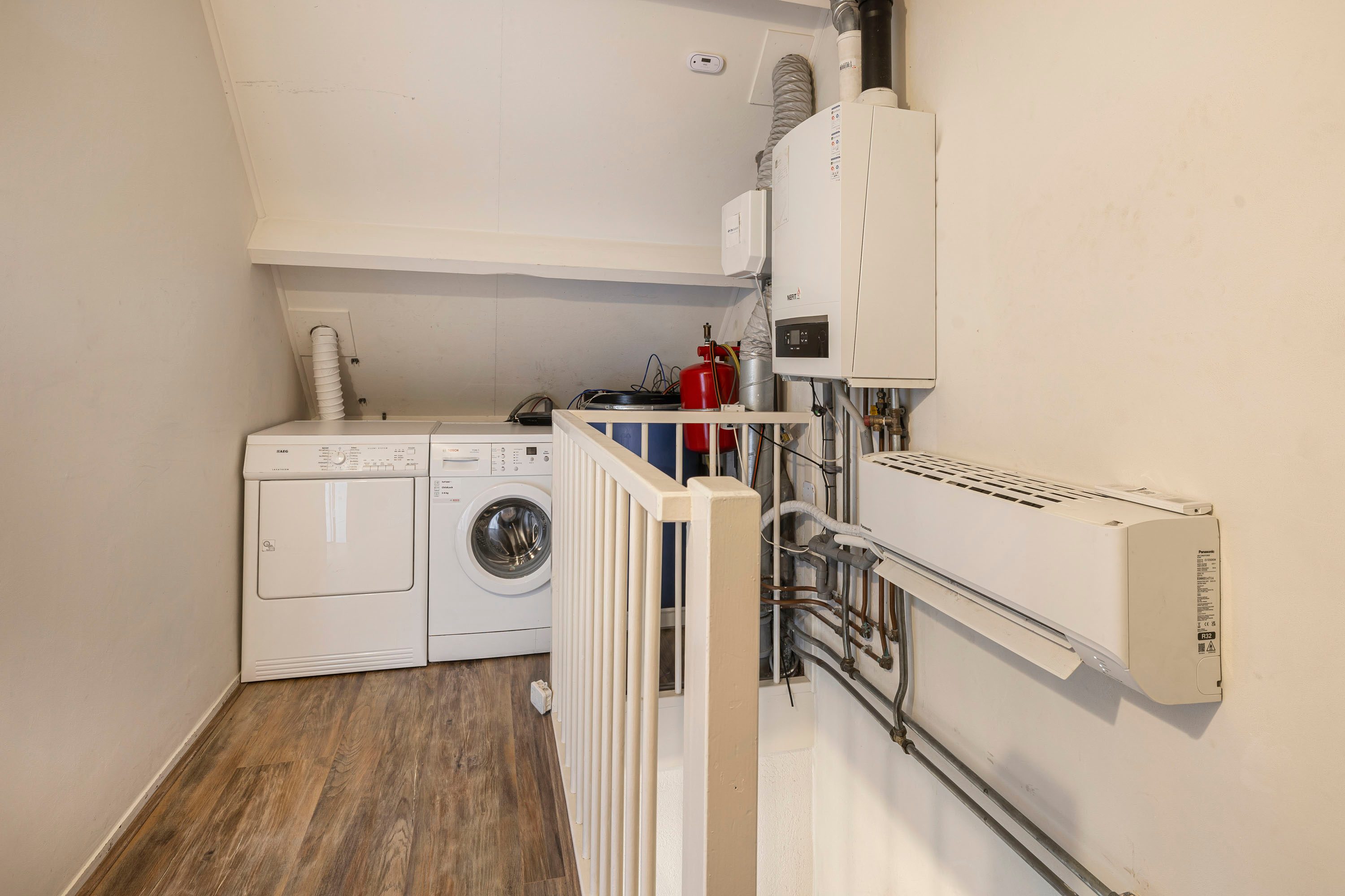Via de vaste trap kom je op een ruime overloop van 5,7 m² met de cv-opstelling en extra bergruimte achter de schotten. Ook bevindt zich hier een derde slaapkamer van 6,9 m² met een inbouwkast.