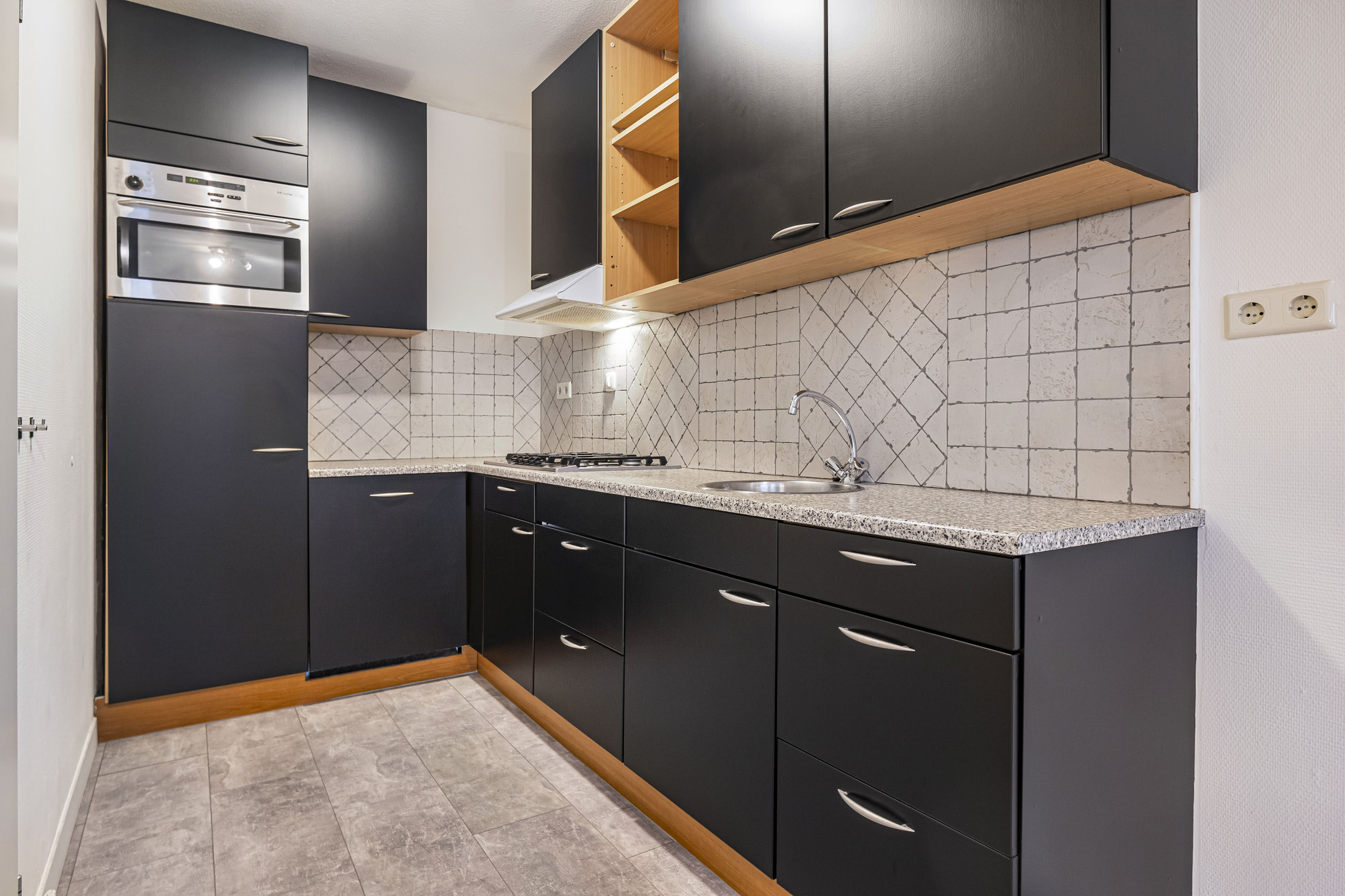 De open keuken is uitgevoerd in een L-opstelling en voorzien van diverse inbouwapparatuur. In een aparte kast vind je de opstelling van de cv-ketel, wasmachineaansluiting, de balansventilatie en extra bergruimte.
