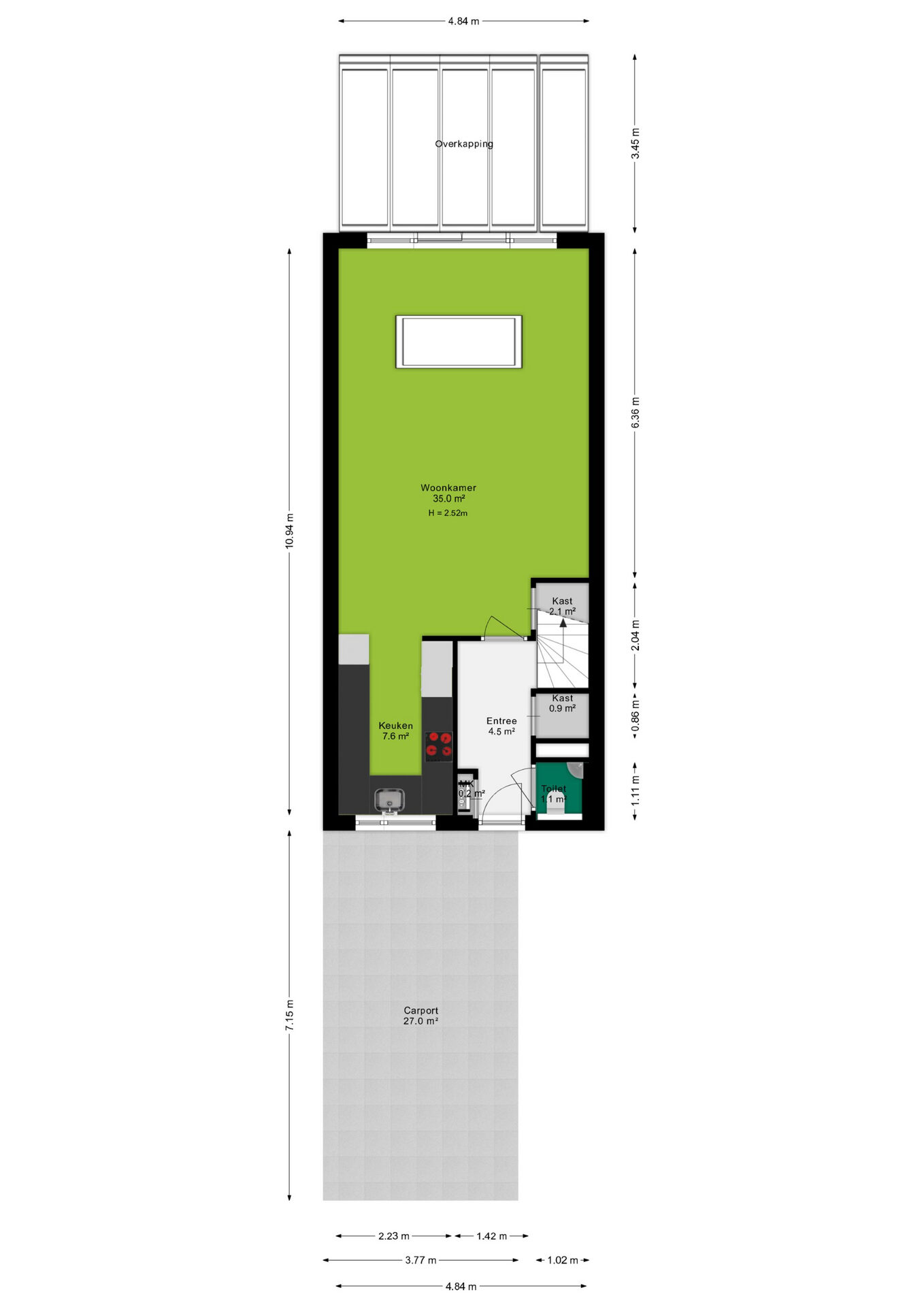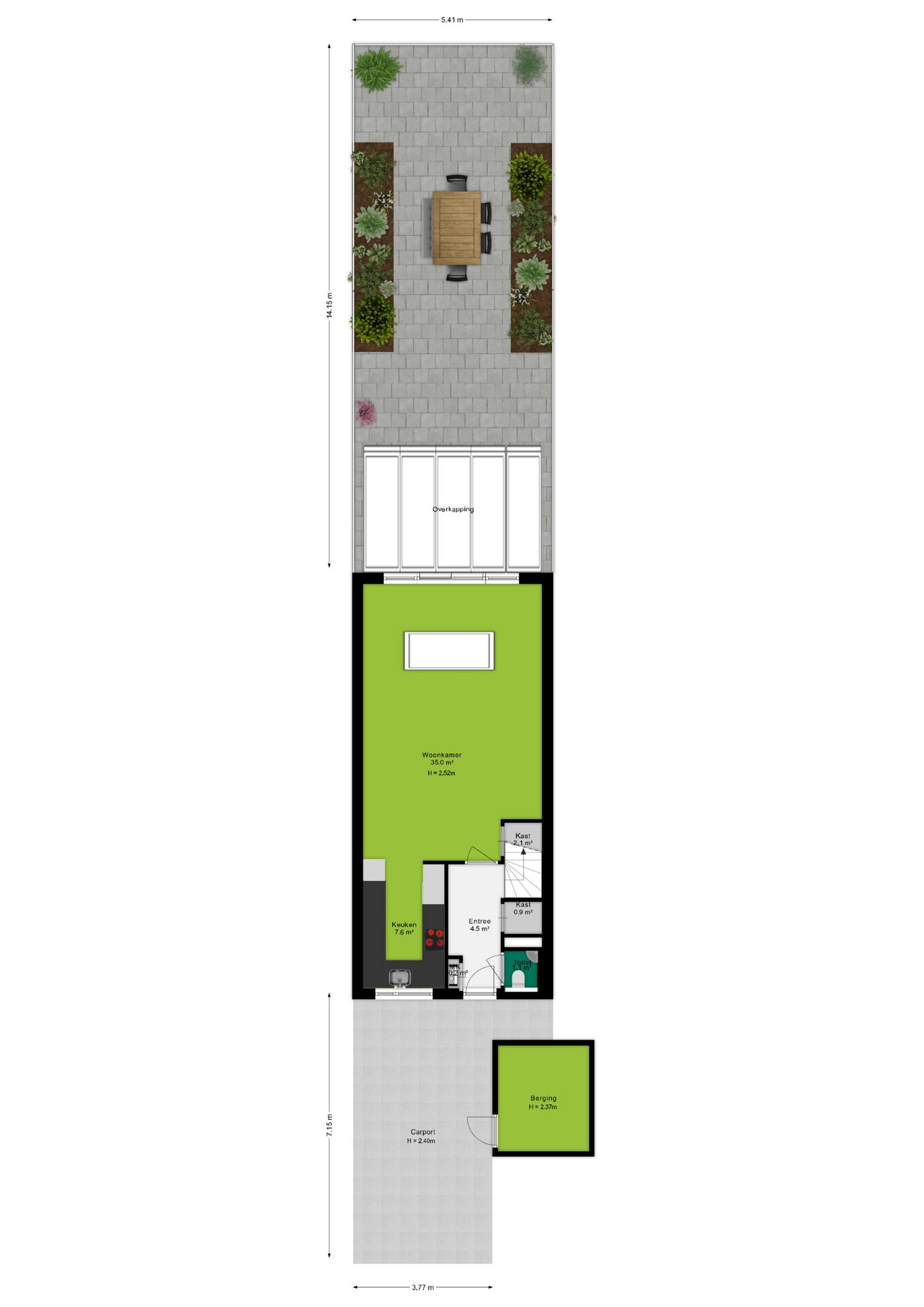 + Carport en aangebouwde berging aan de voorzijde
