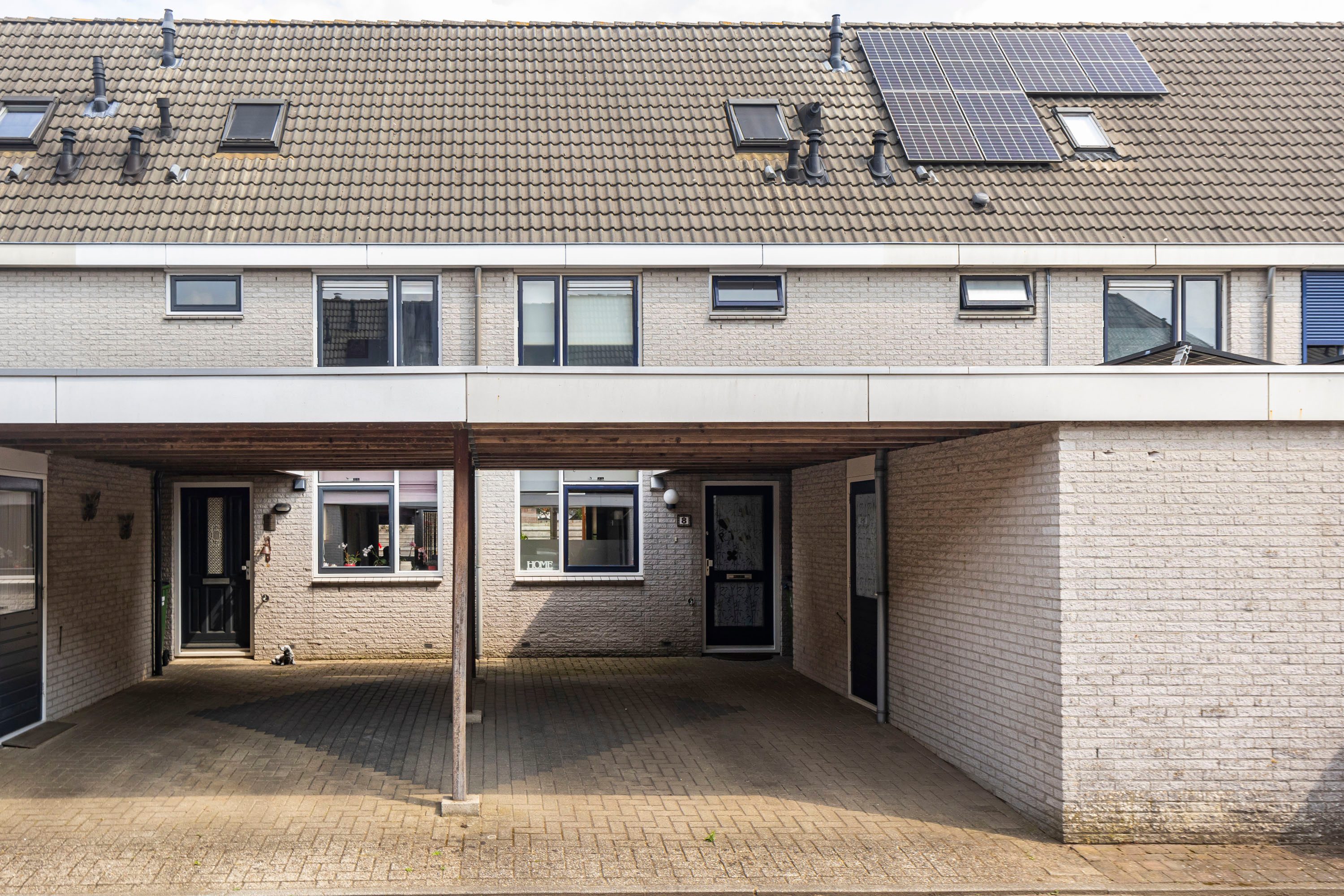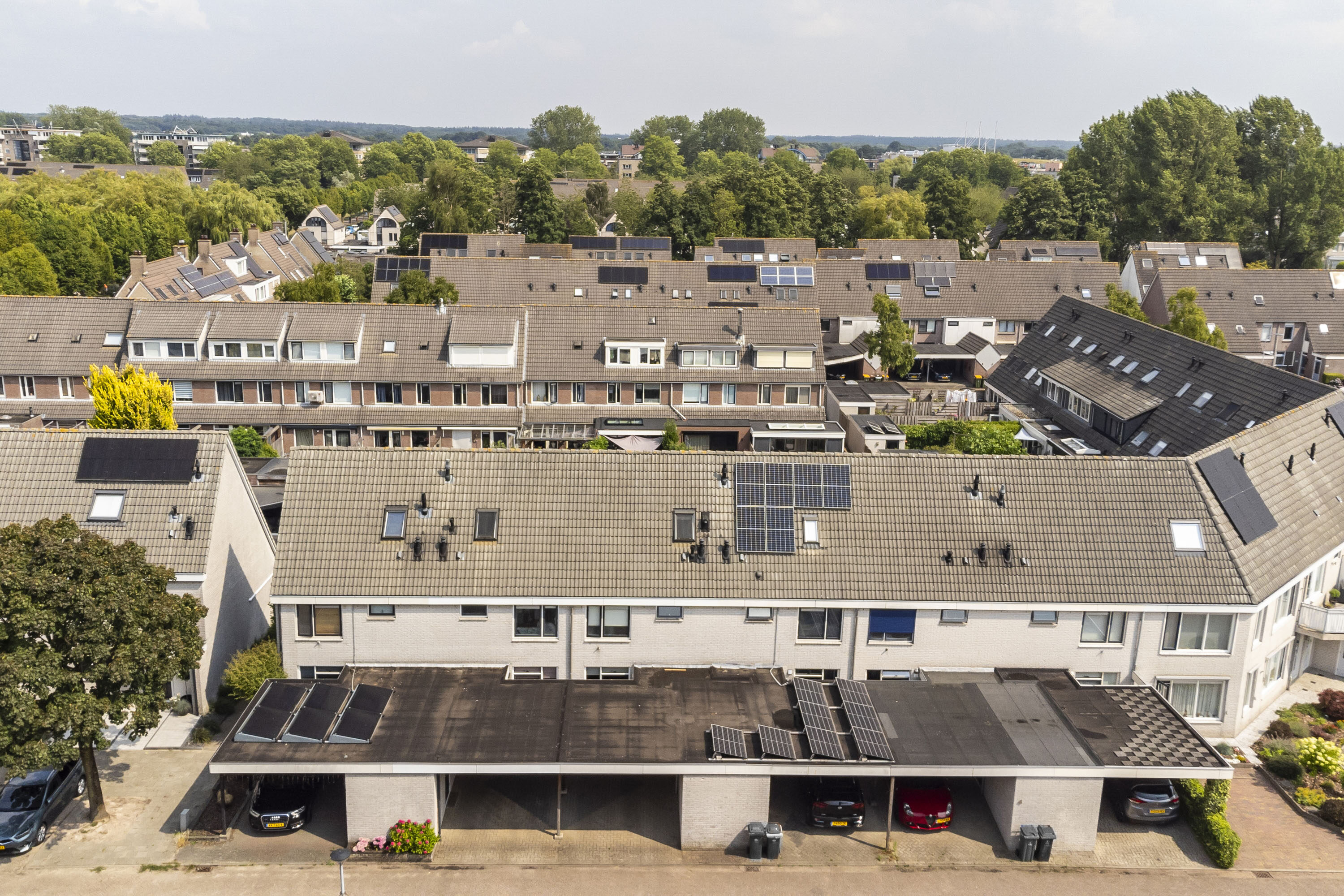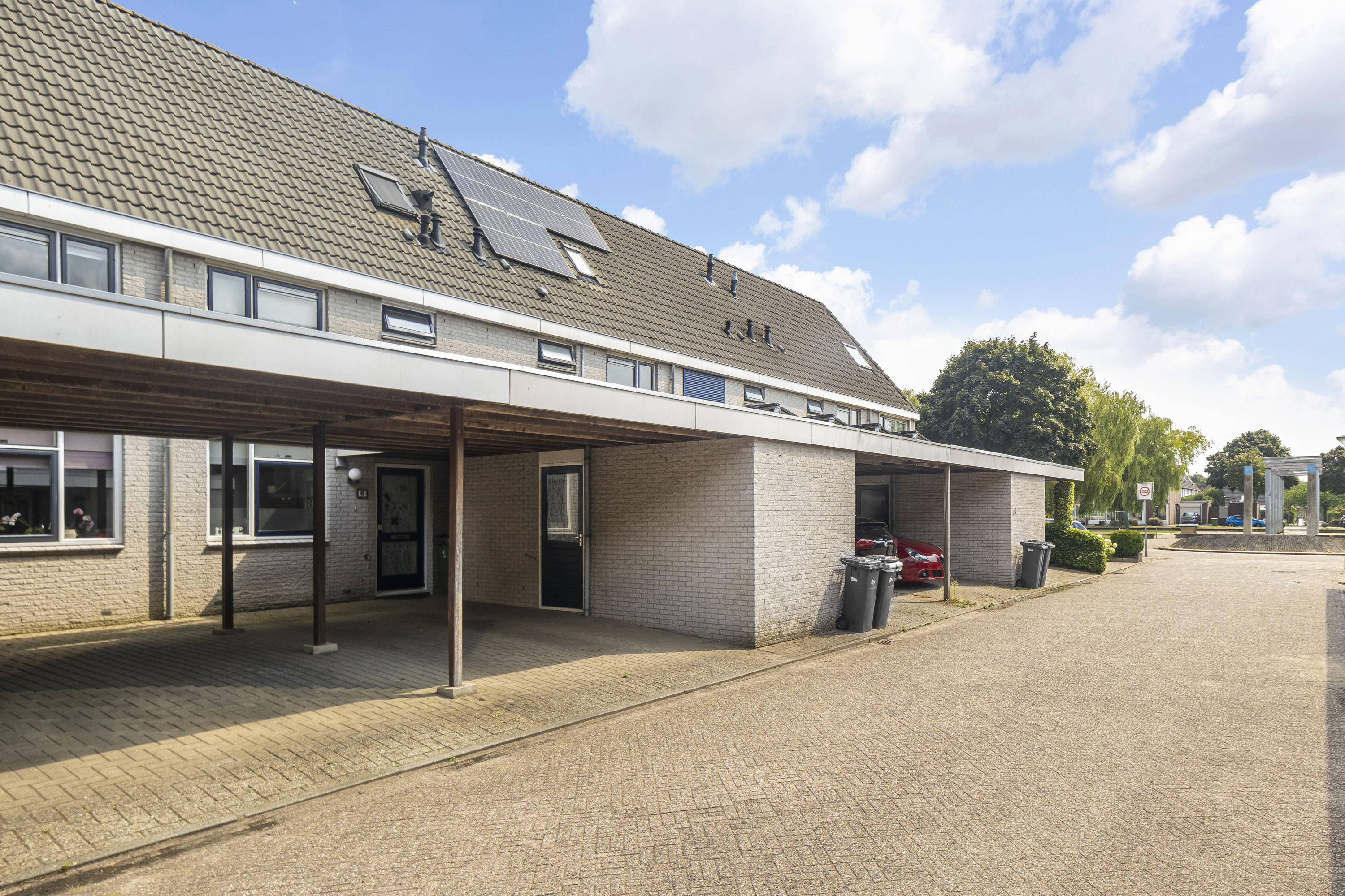 Aan de voorzijde bevindt zich een eigen carport en een aangebouwde stenen berging (ca. 7 m²) — ideaal voor fietsen en opslag.