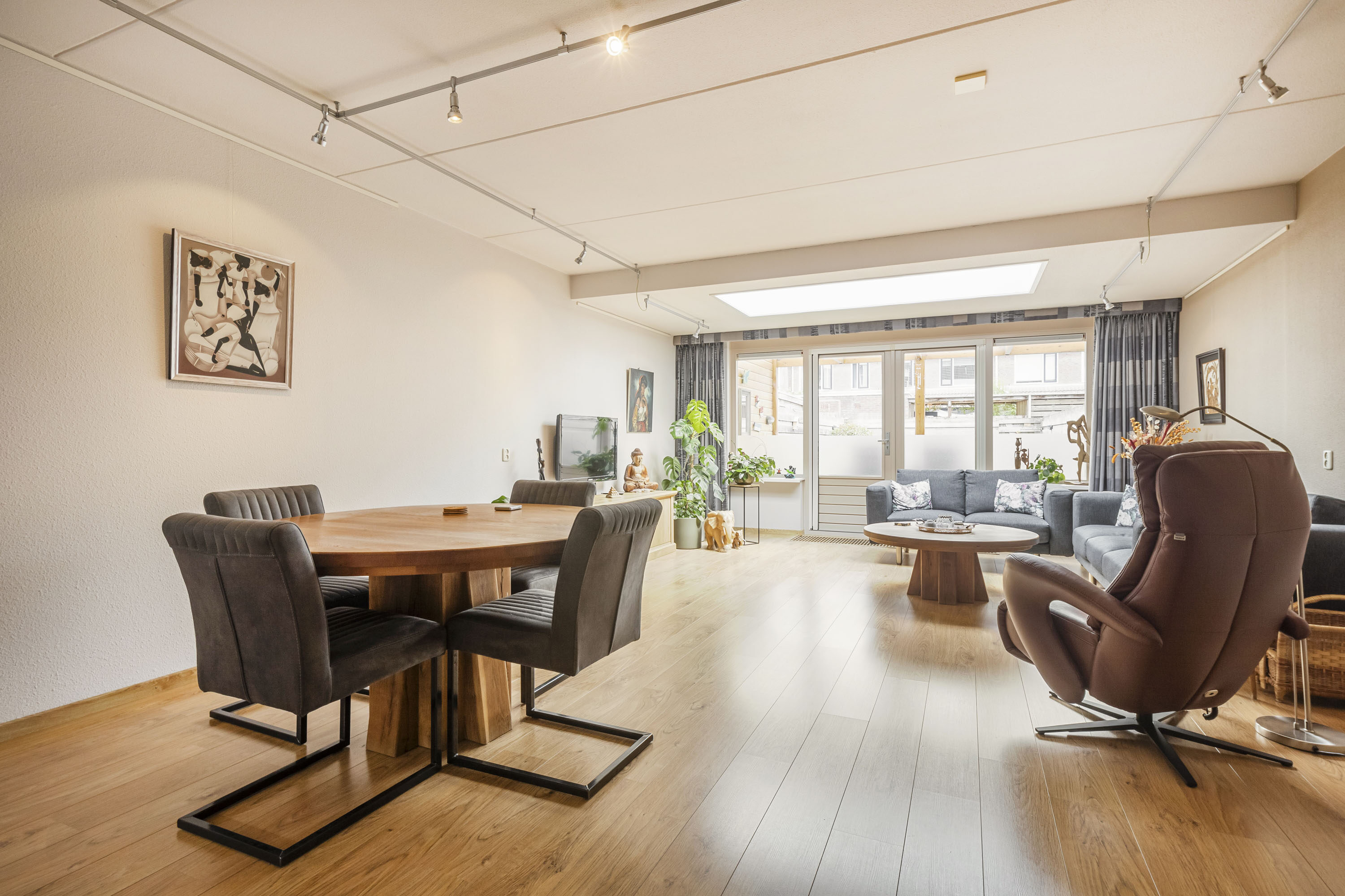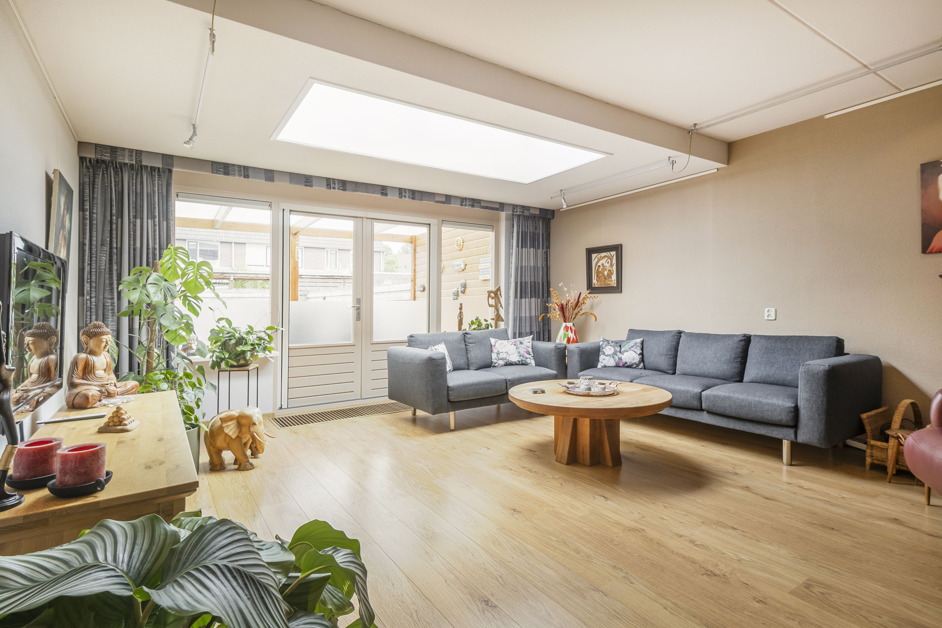 + Ruime, tuingerichte woonkamer met veel daglicht en openslaande deuren