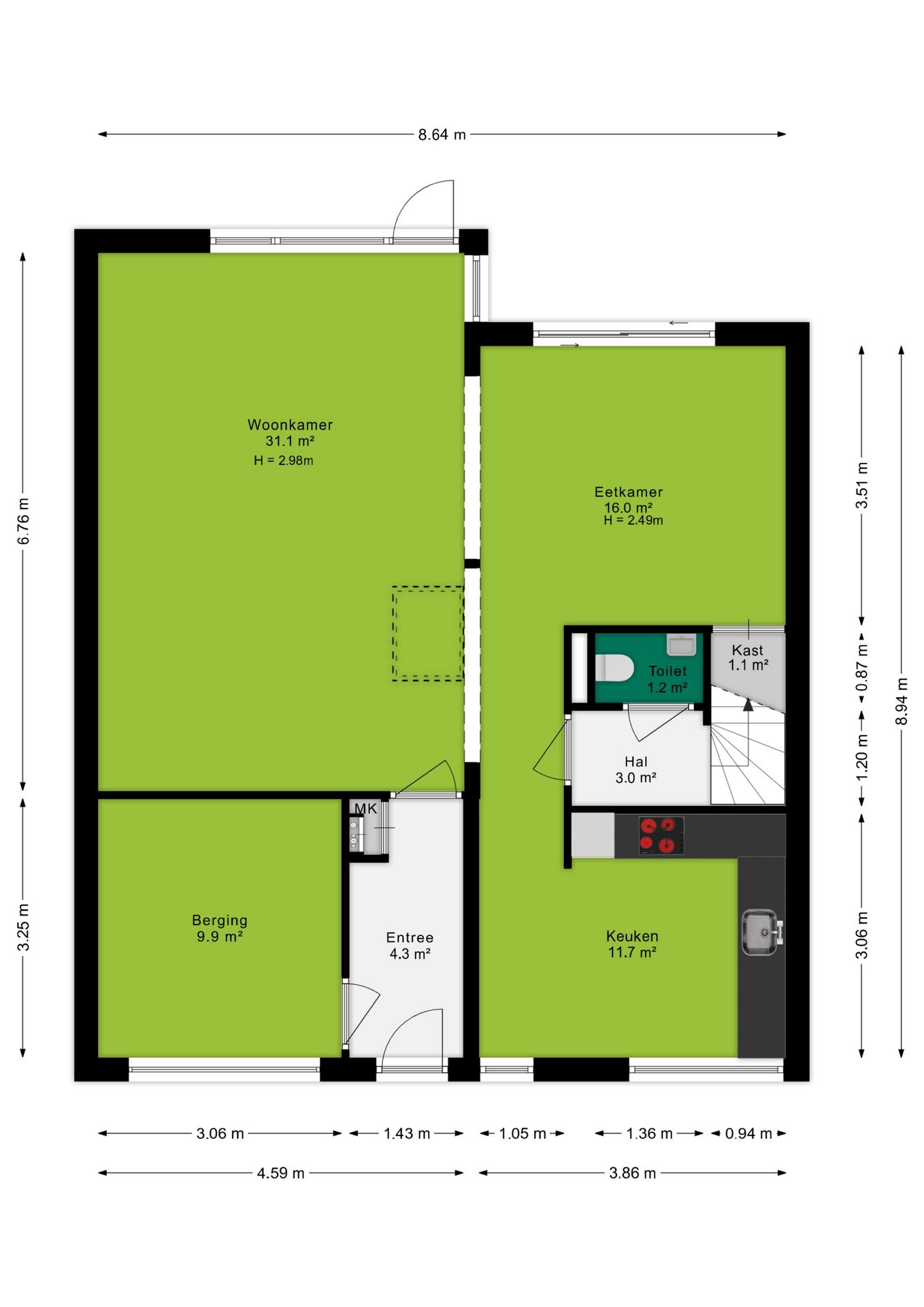 AchtertuinZuidoost, 112m2, 905x1238cm