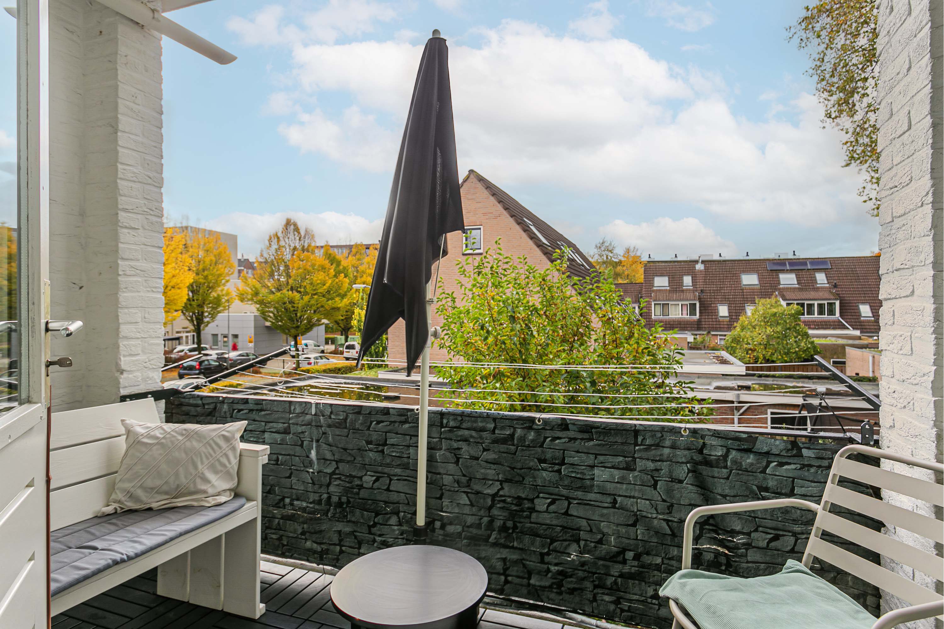 Het balkon ligt op het westen en is bereikbaar vanuit de keuken. Hier geniet je van de middag- en avondzon. Achter het appartementencomplex, bereikbaar via de zijstraat, bevindt zich een berging van circa 5 m², ideaal voor het stallen van fietsen of extra opslagruimte.