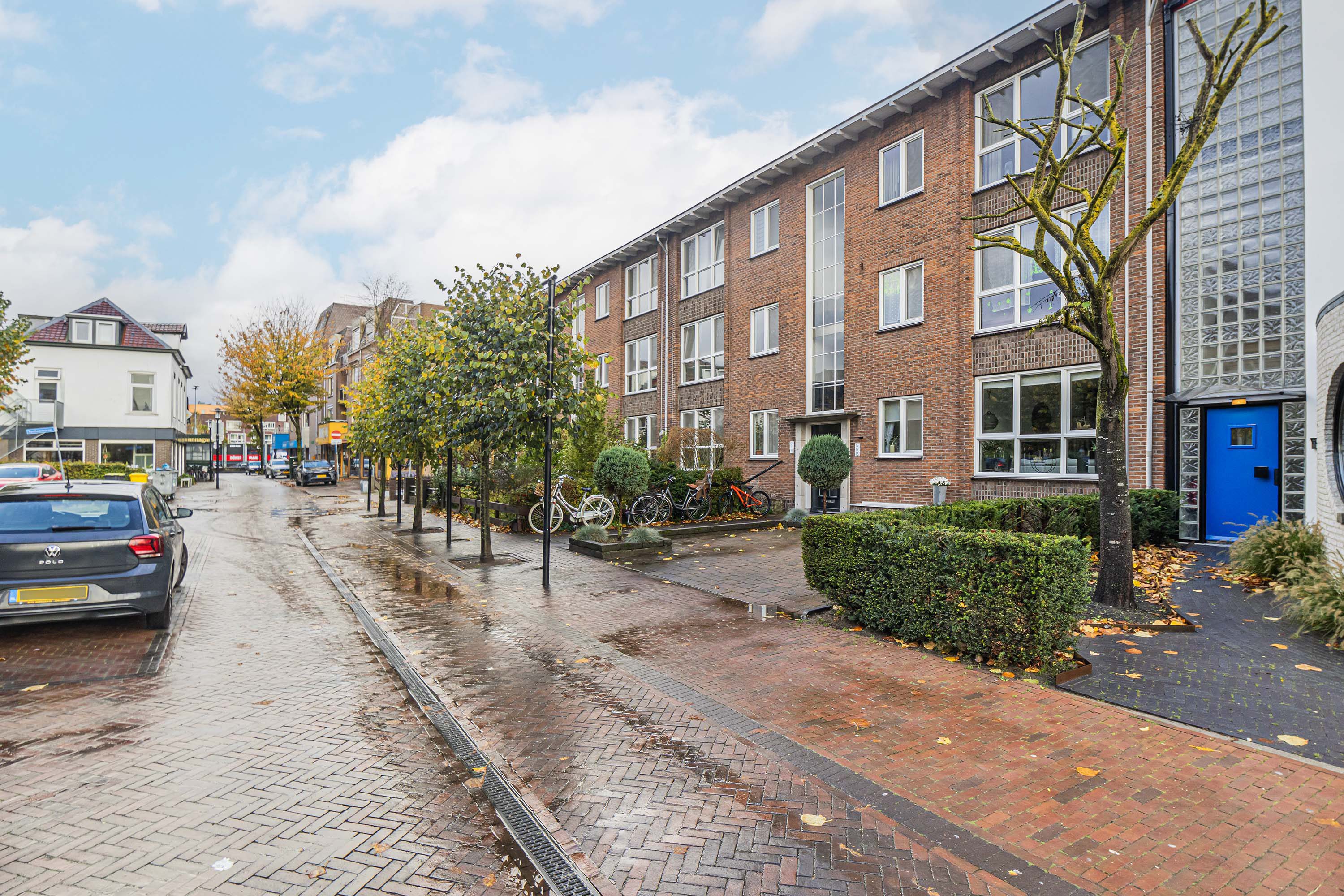 Bij aankomst parkeer je je auto eenvoudig op je eigen plek voor het gebouw. Via een afgesloten entree en enkele traptreden bereik je het appartement op de eerste woonlaag.