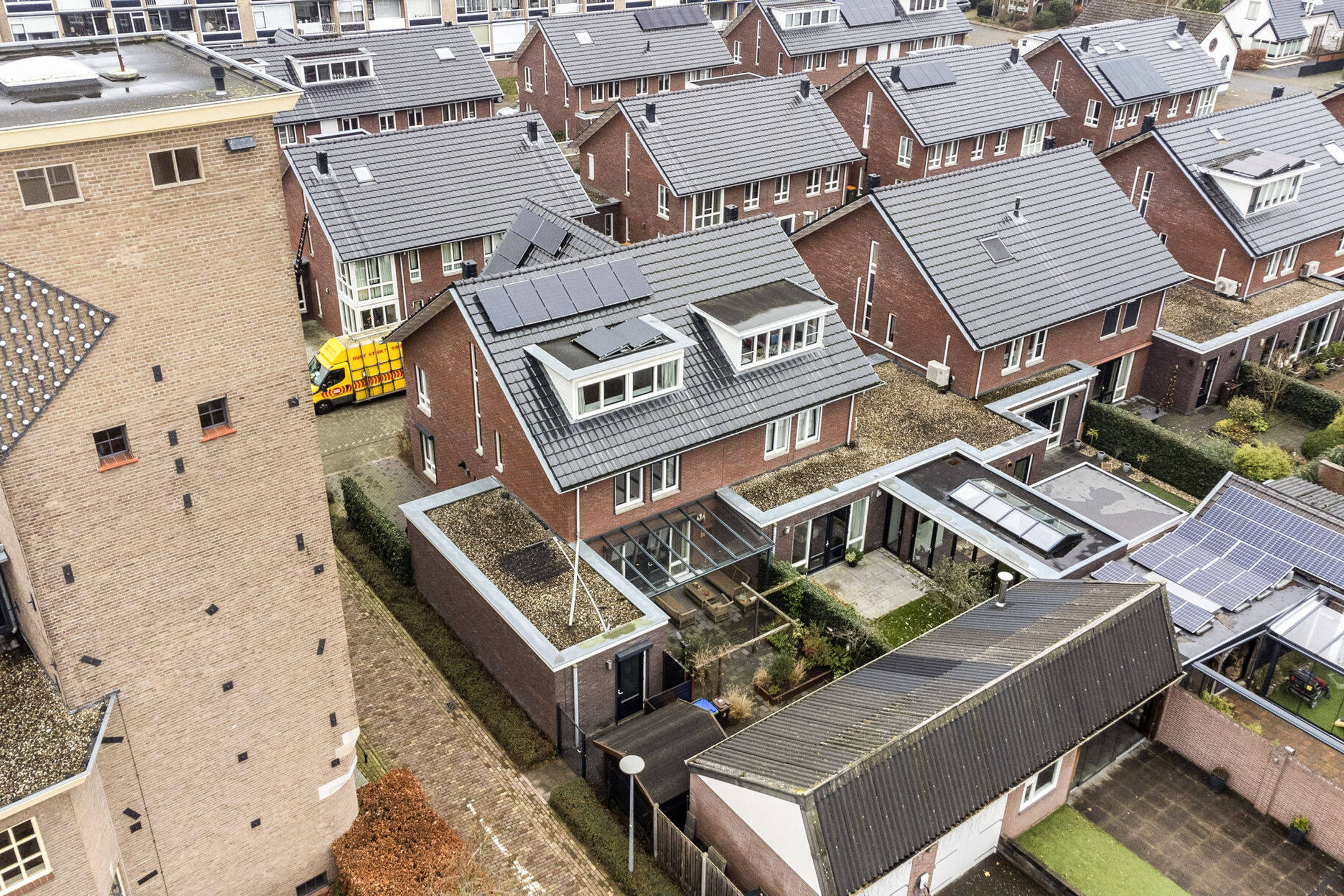Onderhoudsarme tuin met diverse bordes. De overkapping met ingebouwde ledverlichting geeft echt een meerwaarde aan de woning. De woning heeft een achterom en een keurig verzorgd hekwerk. Praktische berging voor het opbergen van fietsen en tuingereedschap.