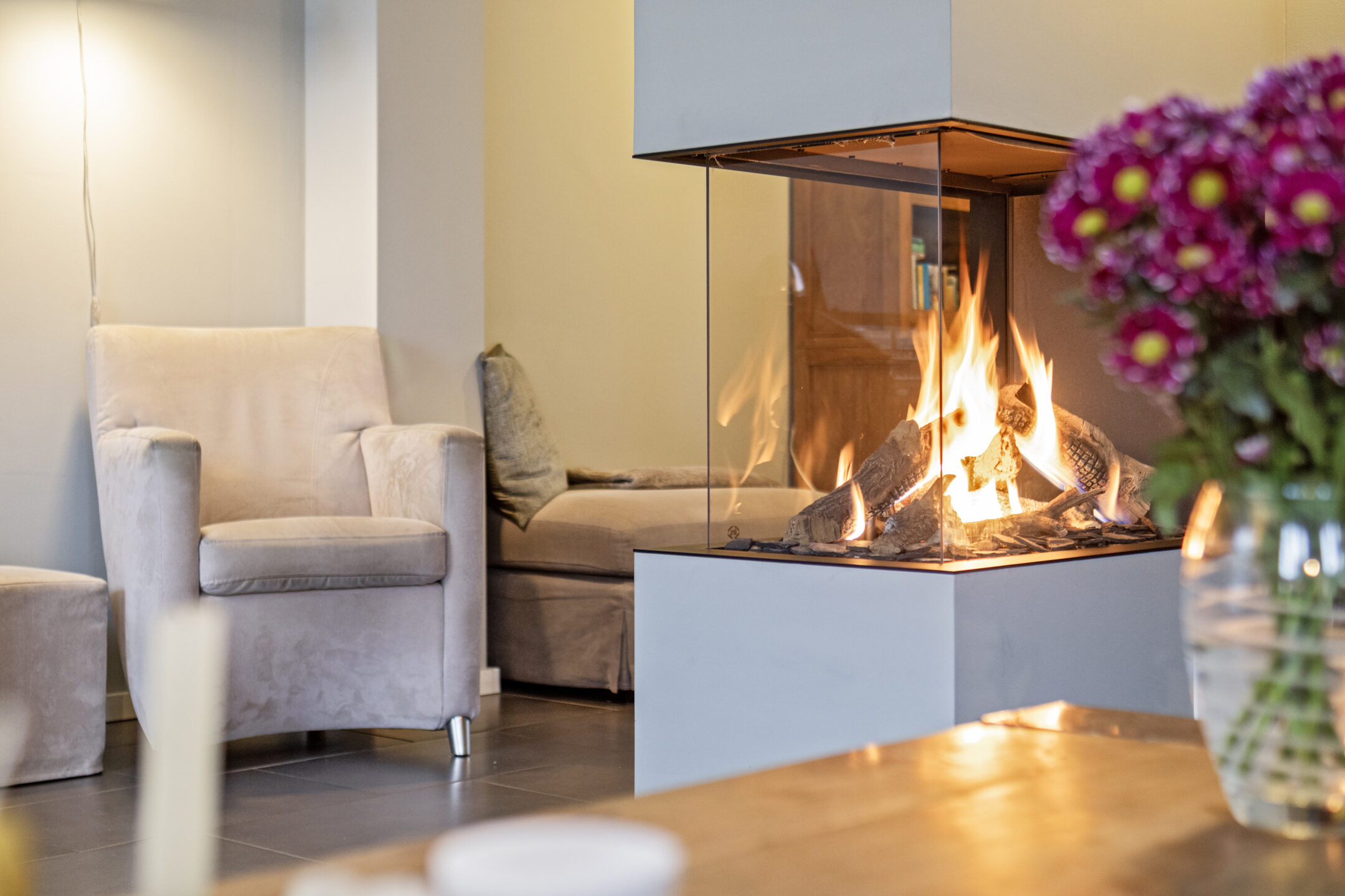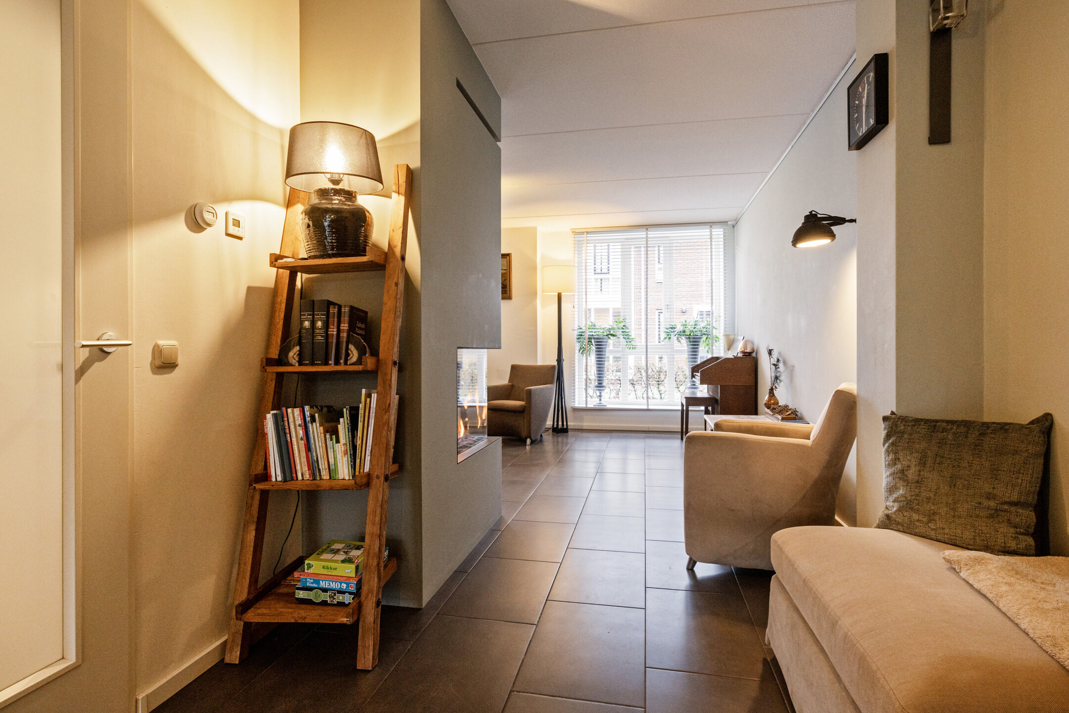 + Woonkamer met sfeervolle hoek haard en veel lichtinval;