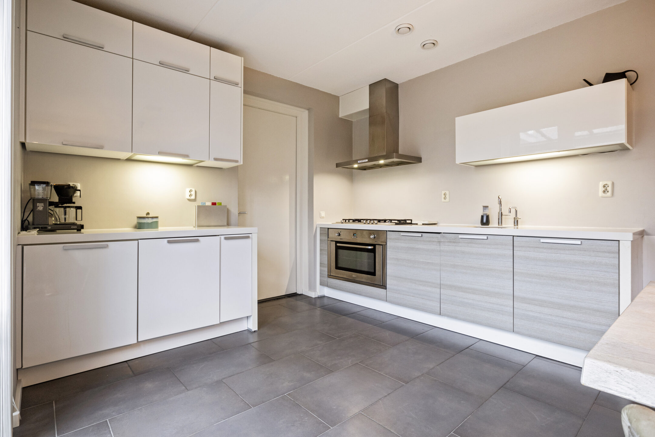 Vanuit de woonkeuken kan men naar de praktische bijkeuken/berging en vanuit daar naar de praktijkruimte.