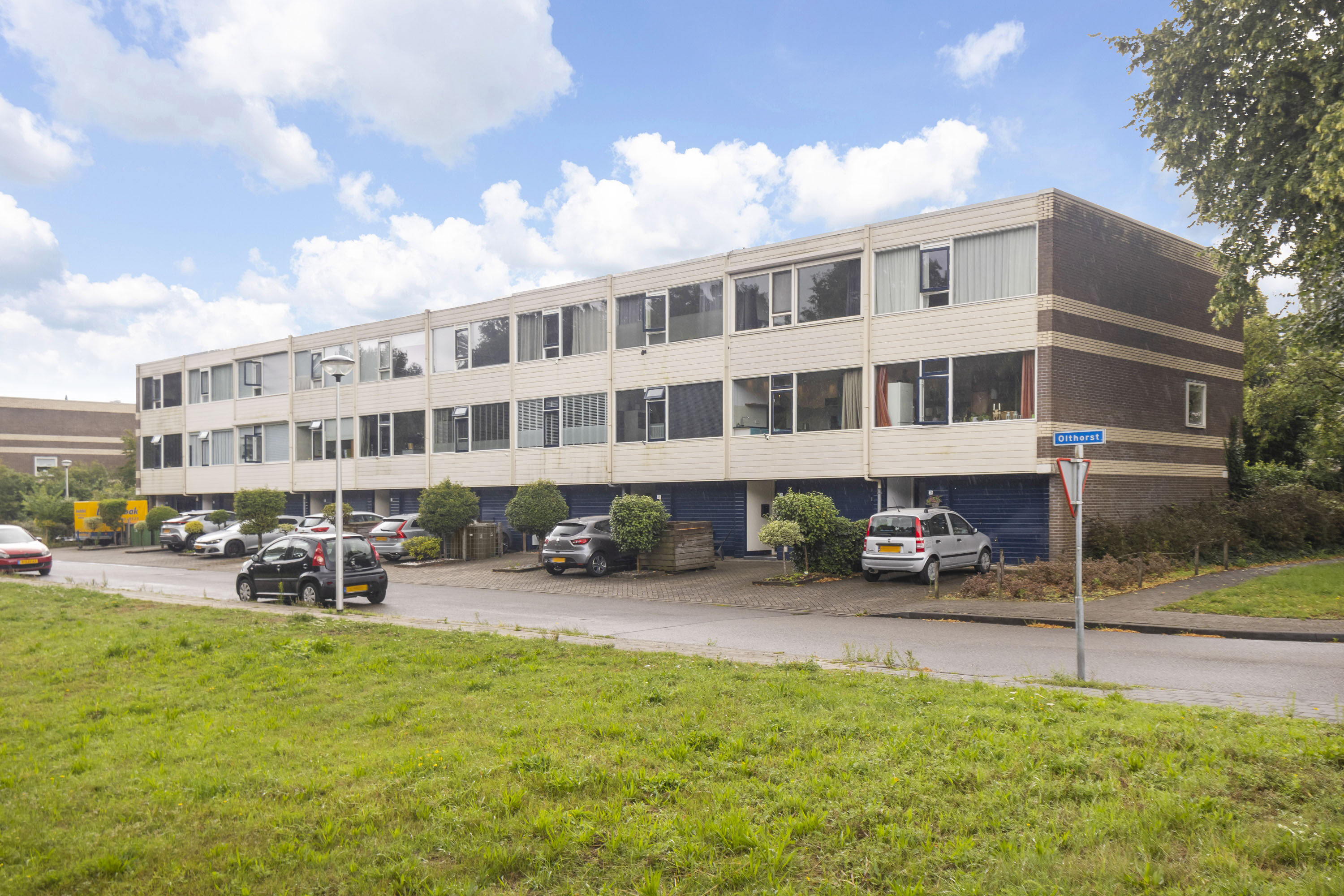 Ben je op zoek naar een tussenwoning met verrassend veel ruimte, een zonnige tuin én eigen garage? Dan is deze woning aan de Olthorst 29 precies wat je zoekt. De woning beschikt over vier slaapkamers, een woonkamer op de eerste verdieping, inpandige garage én een fijne tuin op het zuiden met veranda en houtkachel. Fijn is het vrije uitzicht op een groenstrook en het water – een oase van rust in een centrale woonomgeving.