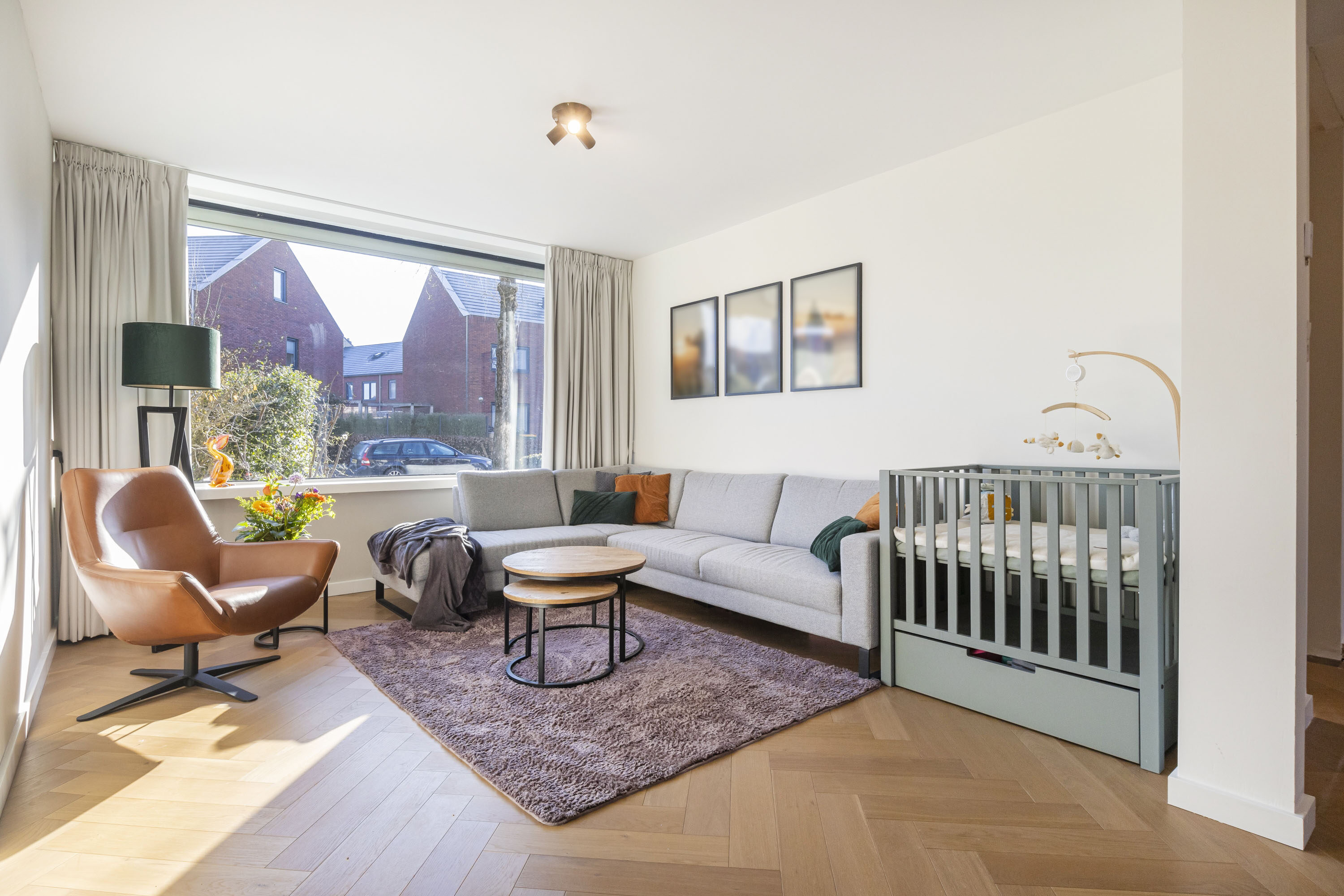 De woonkamer is gelegen aan de voorzijde van de woning. Door de grote raampartij aan de voorkant is dit een heerlijk lichte zithoek.