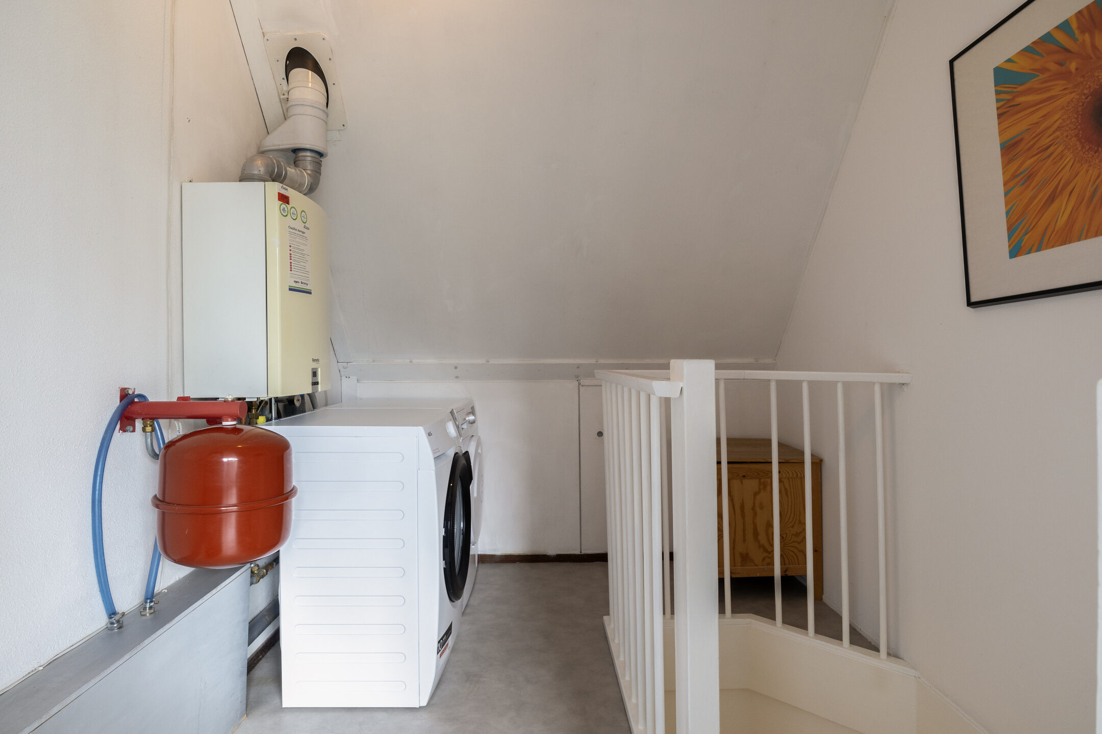 Op de overloop vind je aansluitingen voor zowel de cv-installatie als voor de wasmachine en droger. De ruime derde ouderslaapkamer is bijzonder licht dankzij de vele raampartijen, die zorgen voor een aangename en heldere sfeer in de kamer.