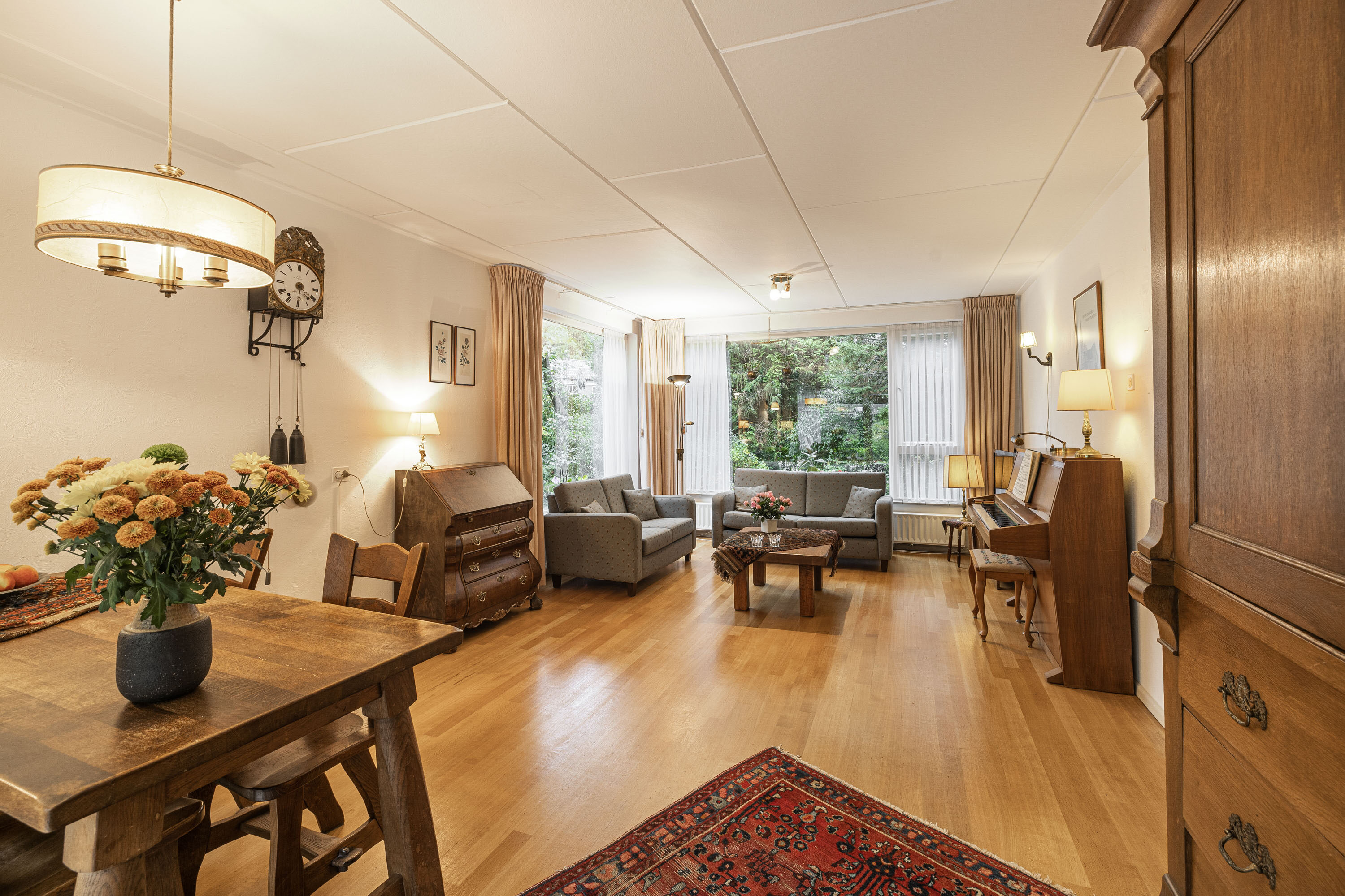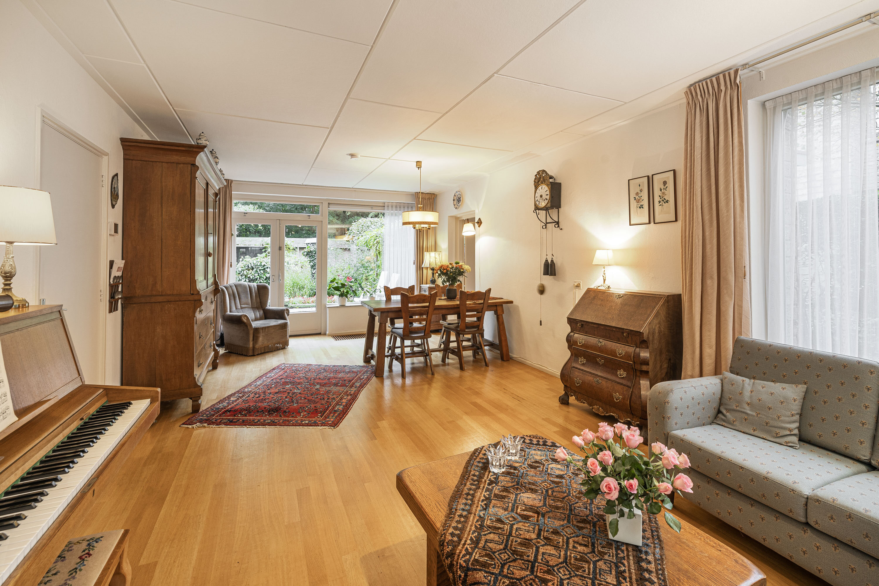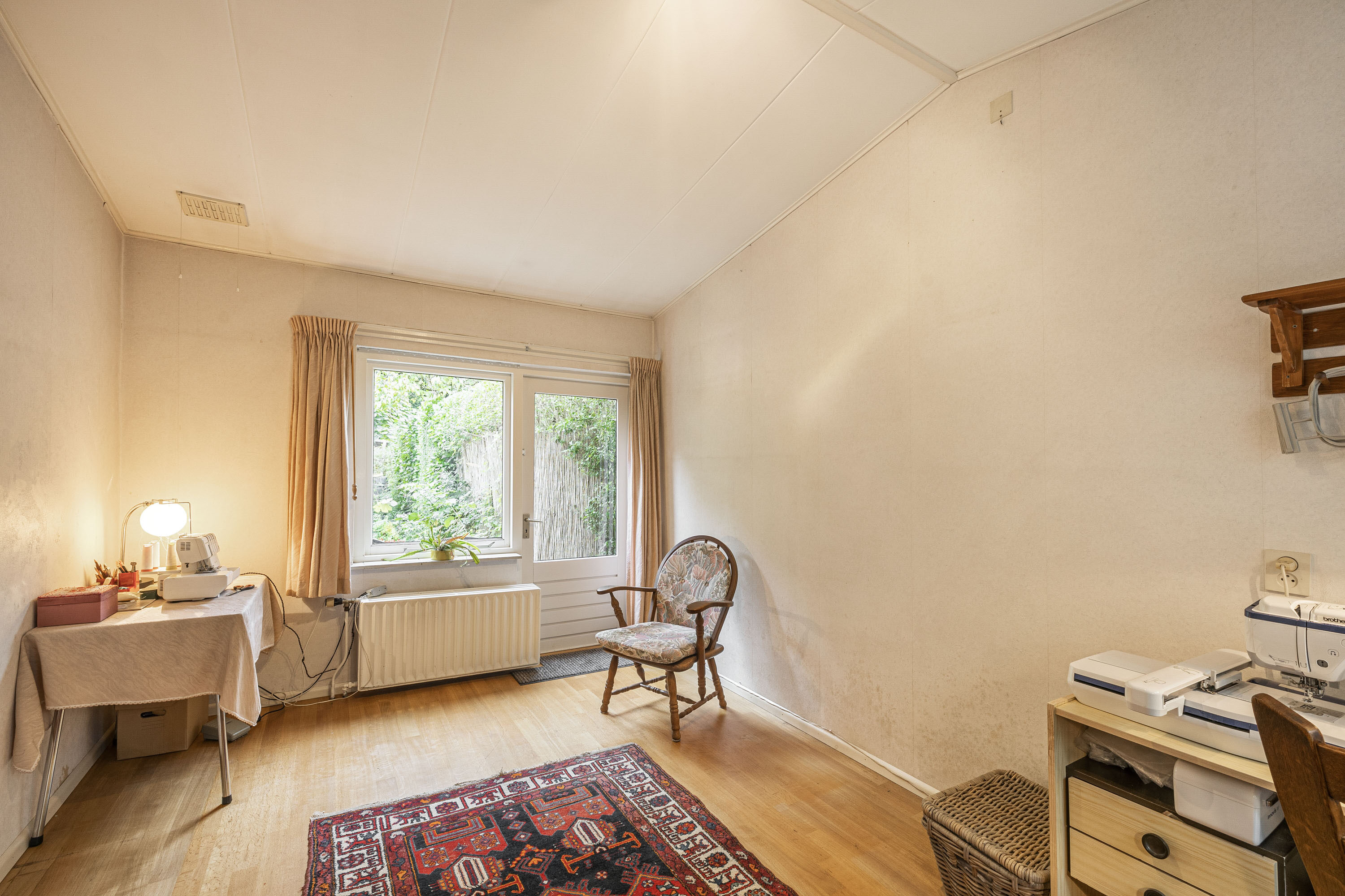 Via de entree met meterkast, toilet en trapopgang kom je in de woonkamer. De ruimte van 33 m² is licht dankzij de grote ramen en de openslaande deuren naar de tuin. Er is voldoende plek voor een gezellige zithoek en een eethoek. Grenzend aan de woonkamer bevindt zich aan de zijkant een extra kamer die zich uitstekend leent als kantoor, speelruimte of slaapkamer op de begane grond. Voorheen was er een douche en wastafel aanwezig; deze zijn inmiddels verwijderd, maar de aansluitingen zijn nog aanwezig. Vanuit deze ruimte is er directe toegang tot de tuin.