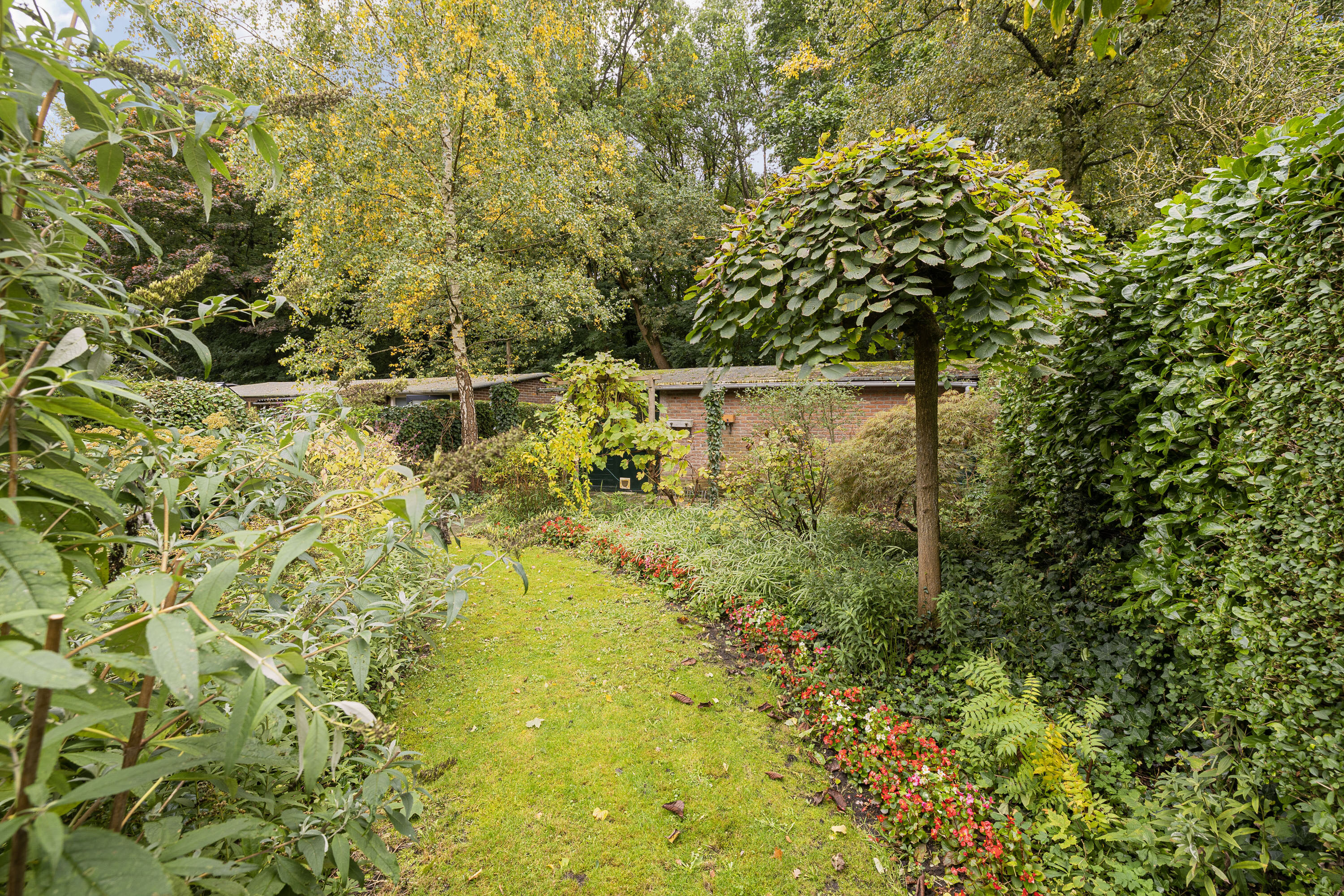 De diepe achtertuin op het zuiden biedt altijd een heerlijke plek in de zon. Achterin de tuin bevinden zich een berging en een garage, die via de achterom en rechtstreeks vanuit de tuin bereikbaar zijn. Tevens is ook de tuin zelf toegankelijk via de achterom. De voortuin ligt op het noorden en het uitgebreide groen zorgt voor extra privacy.