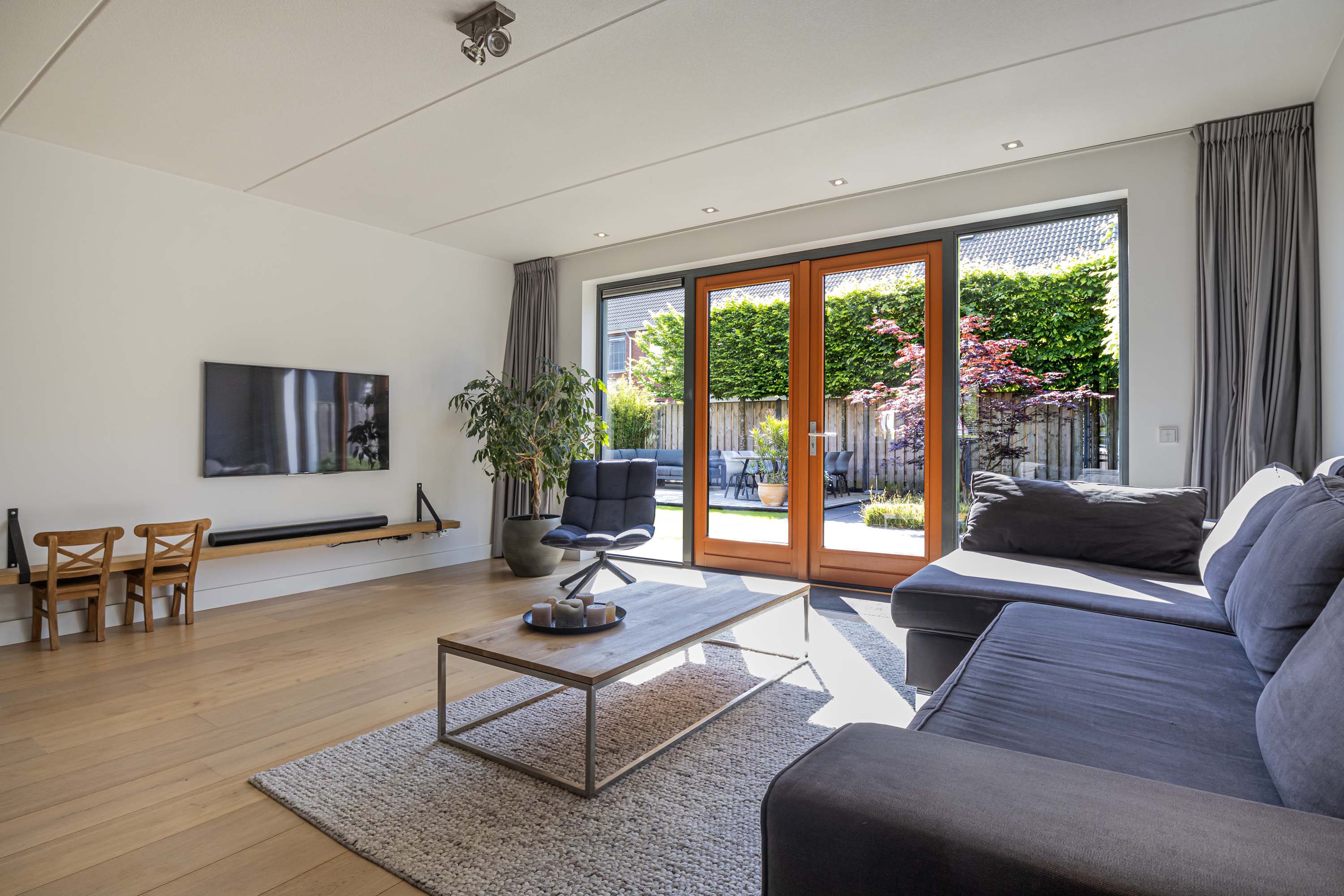De woning is gebouwd in 2016. Op de begane grond bevindt zich een ruime woonkamer met veel lichtinval en een moderne keuken, voorzien van diverse inbouwapparatuur zoals een inductiekookplaat, combi-oven, vaatwasser en koel-vriescombinatie. Via openslaande deuren bereik je het terras en mooie, onder architectuur aangelegde tuin, waar je kunt genieten van privacy en rust. De gehele begane grond en eerste verdieping zijn voorzien van vloerverwarming, wat zorgt voor extra comfort.