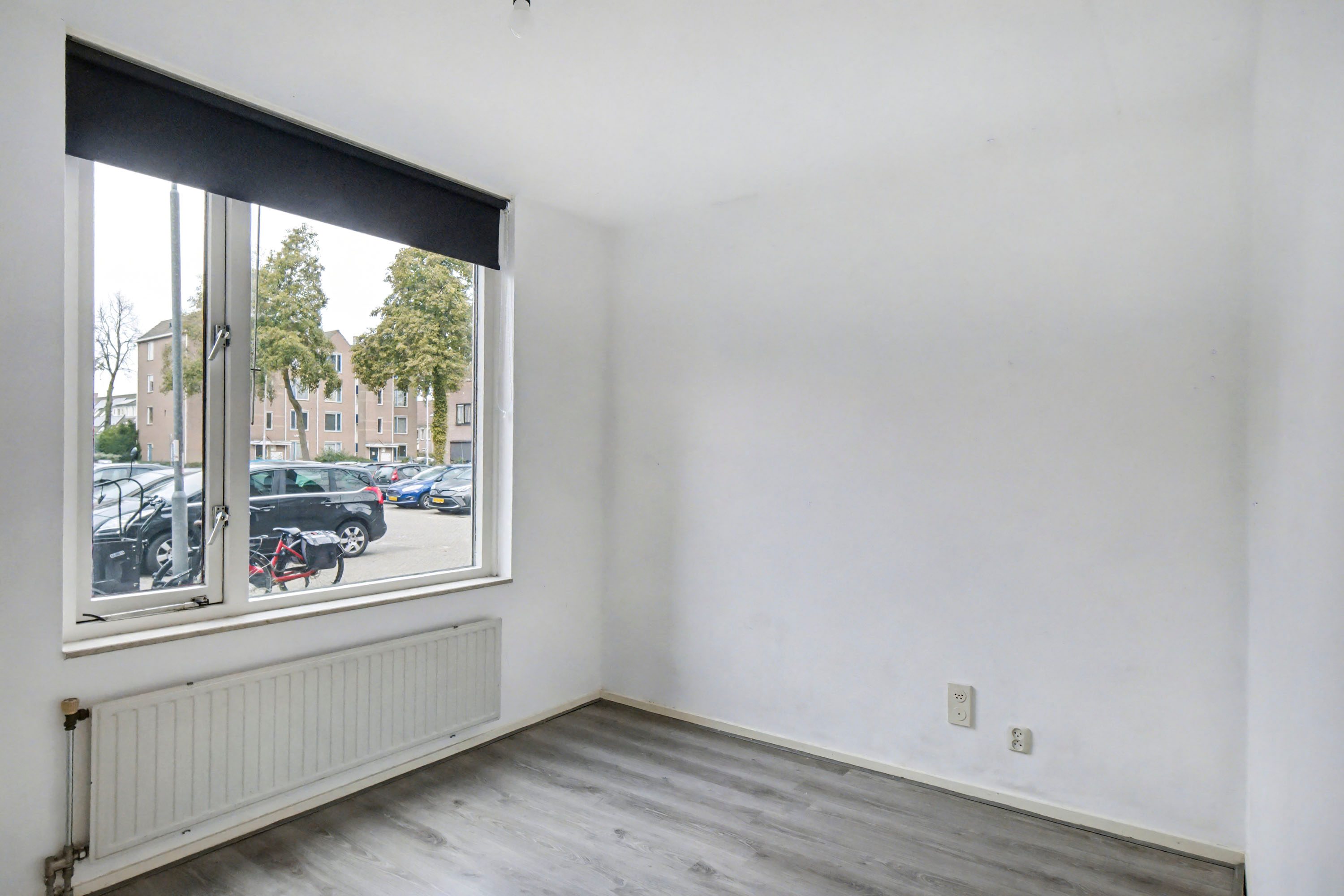 Aan de voorzijde bevindt zich de ruime slaapkamer van bijna 10 m².