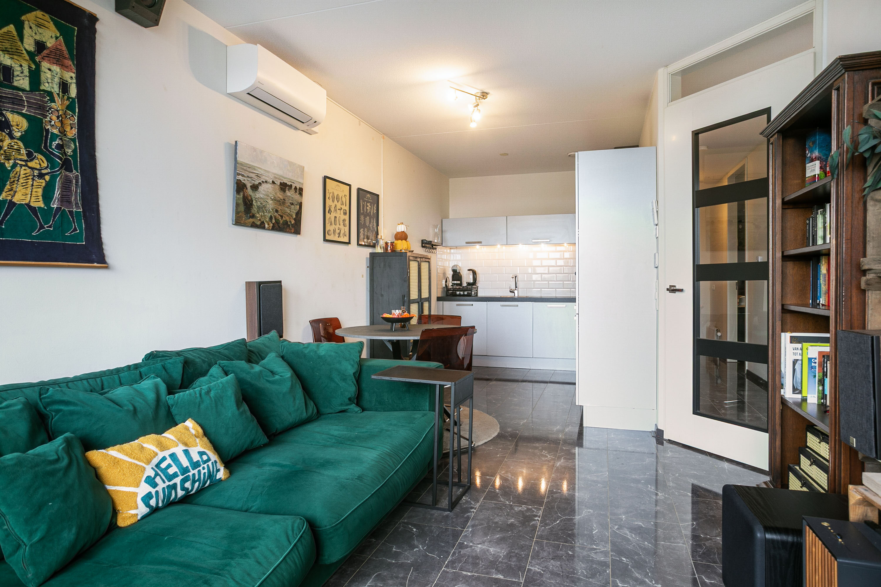 De woonkamer is licht en praktisch in te delen, met grote raampartijen die zorgen voor een fraai uitzicht. De moderne keuken in hoekopstelling is voorzien van een stijlvolle tegelachterwand en witte kasten. De keuken beschikt over een kookplaat, afzuigkap, combi-oven/magnetron, koel-vriescombinatie en vaatwasser. Tevens is er een airco aanwezig, deze is te bedienen via een app. Samen met de keuken is de woonkamer bijna 22 m² groot.