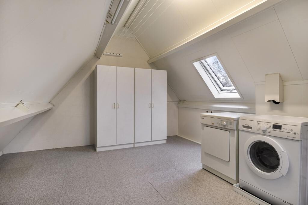 Op de zolder vind je de aansluitingen voor zowel de wasmachine als de droger, evenals de CV-installatie.