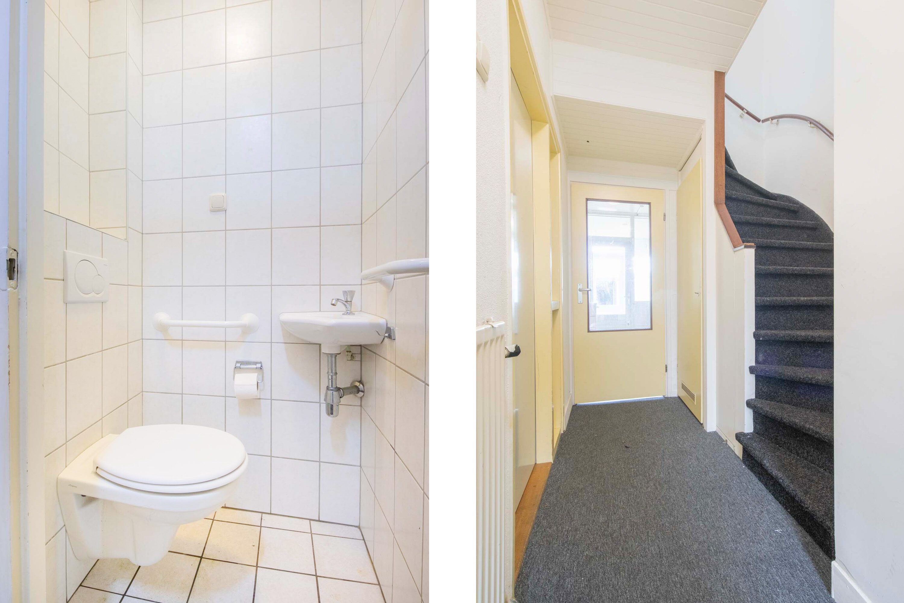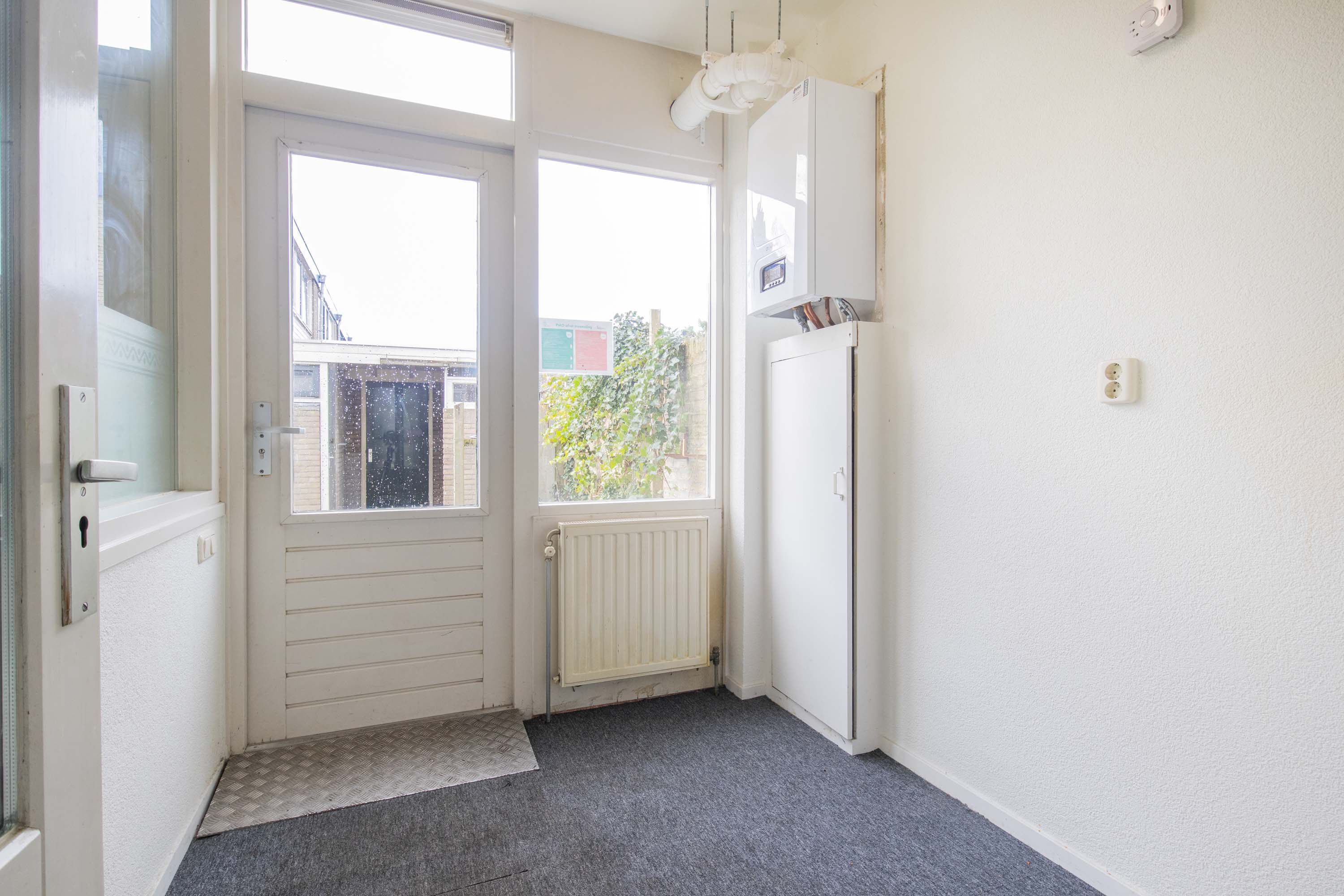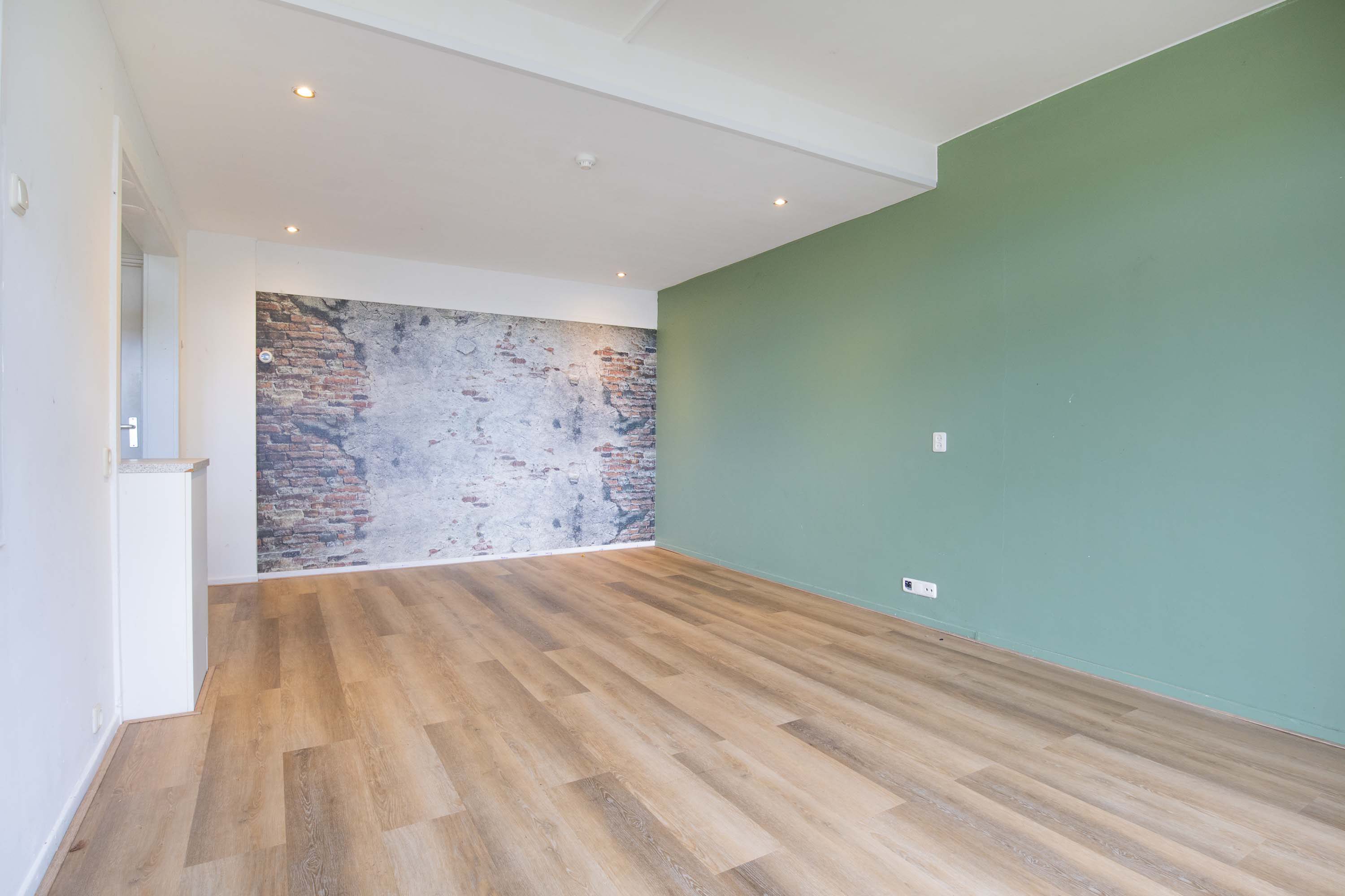 Via de entree met hal, meterkast en toilet bereik je de woning. De woonkamer is ingedeeld in 2 delen welke gemakkelijk tot één ruimte gecreëerd kan worden. Door de grote raampartijen is er veel lichtinval aanwezig. De keuken is opgesteld in een lichte kleurstelling en voorzien van diverse inbouwapparatuur, te weten: een afzuigkap, gasfornuis, oven, koelkast en een vaatwasser. Naast de keuken bevindt zich een ideale bijkeuken waar de C.V.-ketel (2024) staat opgesteld.