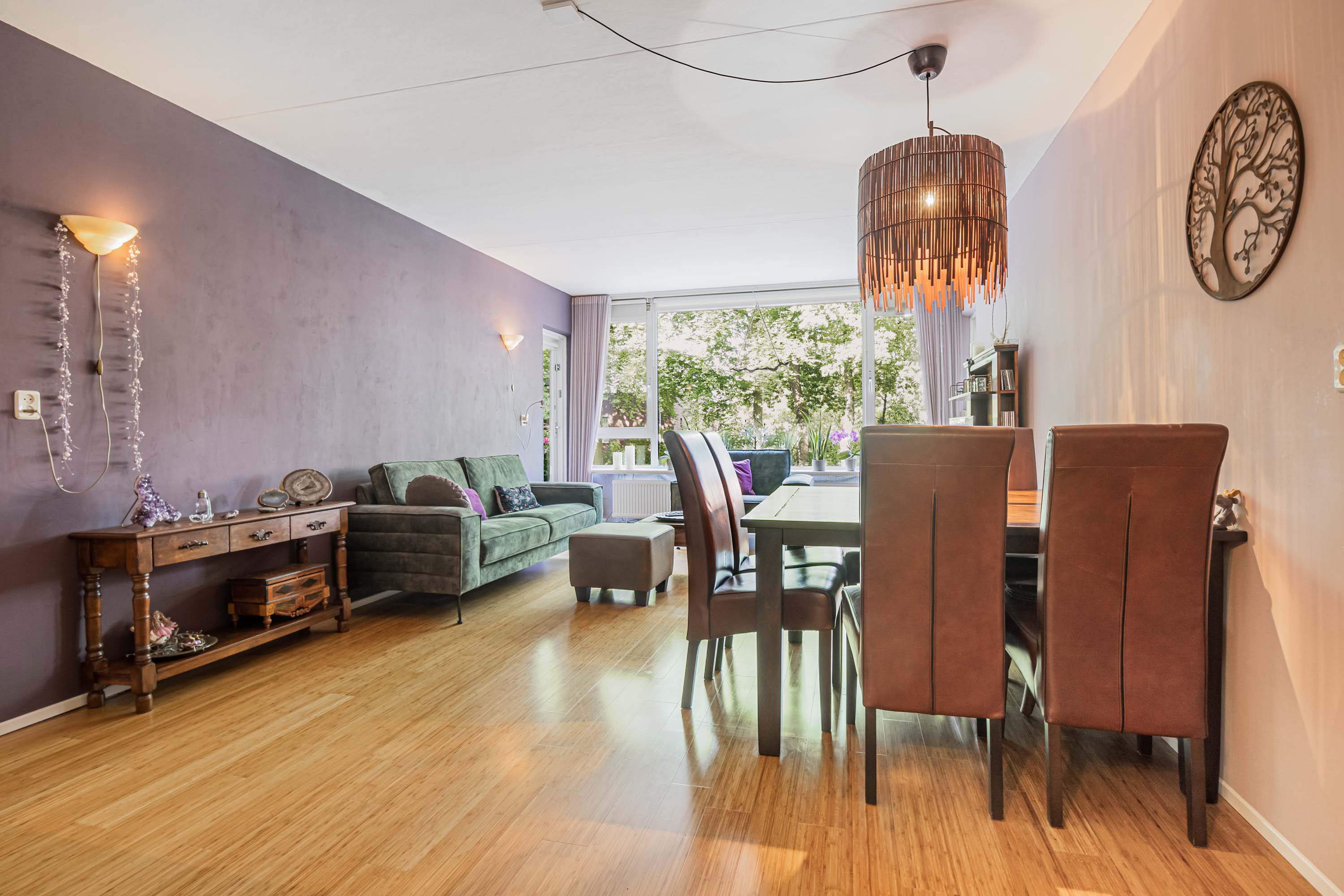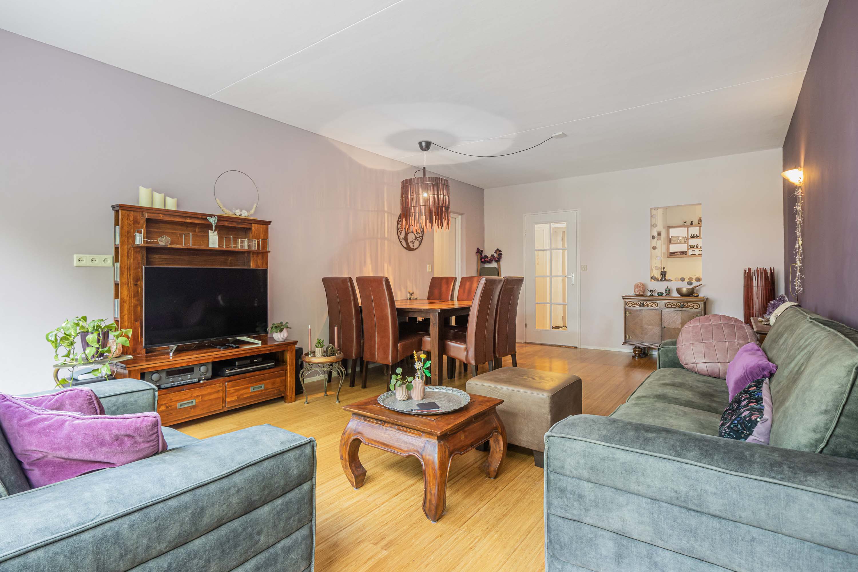 Je betreedt het appartement via de centrale hal met toegang tot zowel de keuken als de ruime woonkamer. Het leefgedeelte en de keuken zijn van elkaar gescheiden, zodat je van beide ruimtes optimaal kunt genieten. Dankzij de grote raampartijen in de woonkamer geniet je van volop daglicht en een prachtig uitzicht. Daarnaast is de hele woning voorzien van bamboeparket. Vanuit de woonkamer heb je toegang tot beide slaapkamers.