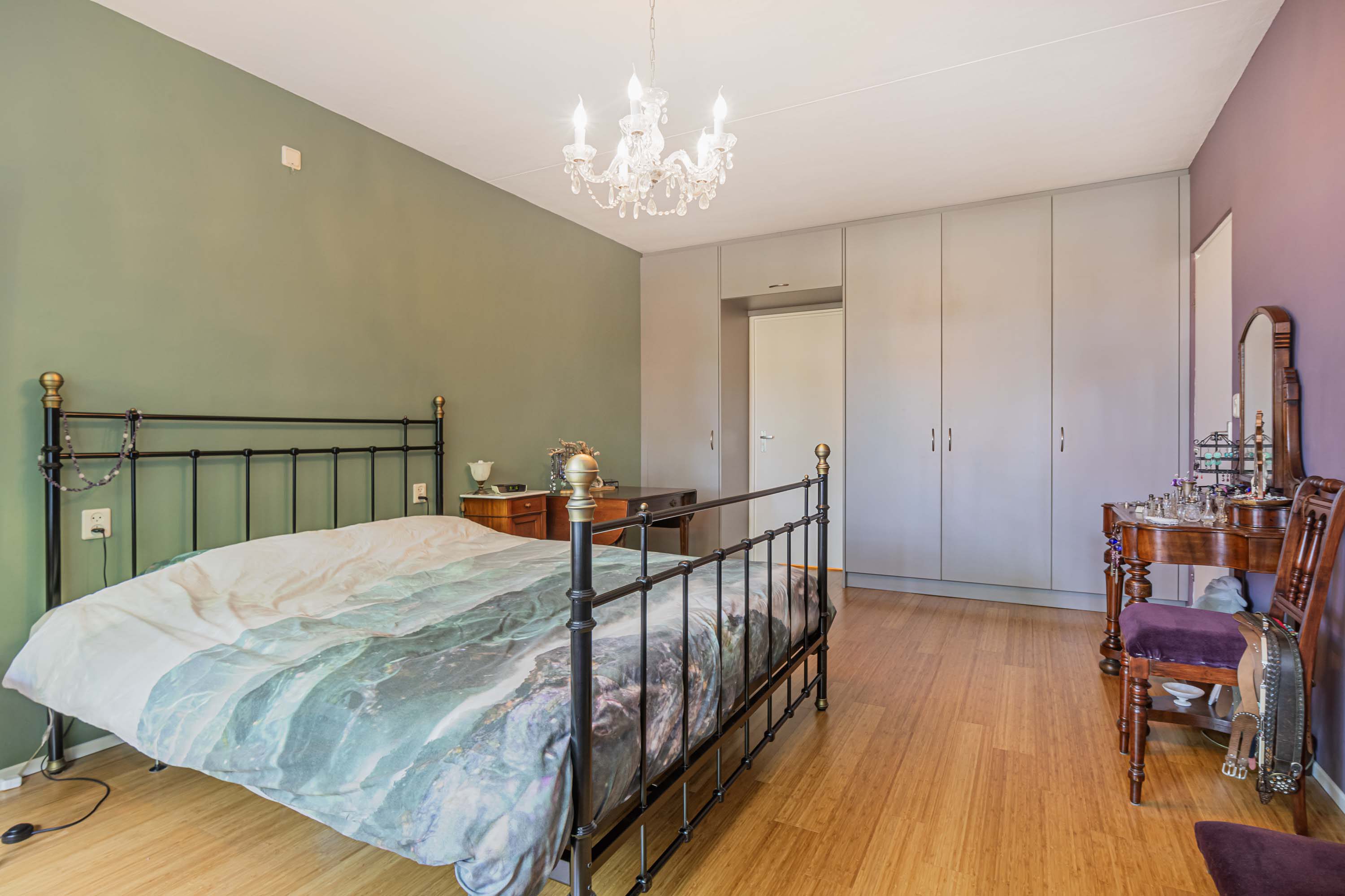 De twee slaapkamers (ca. 19 m² en 22 m²) zijn beide voorzien van op maat gemaakte inbouwkasten én directe toegang tot het balkon op het westen. De slimme indeling en grote raampartijen geven een open en luchtig gevoel.