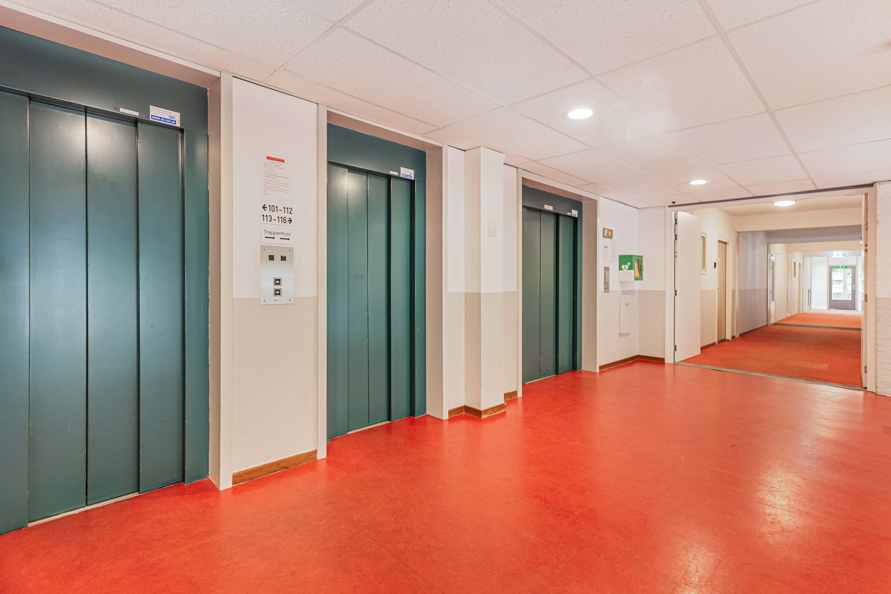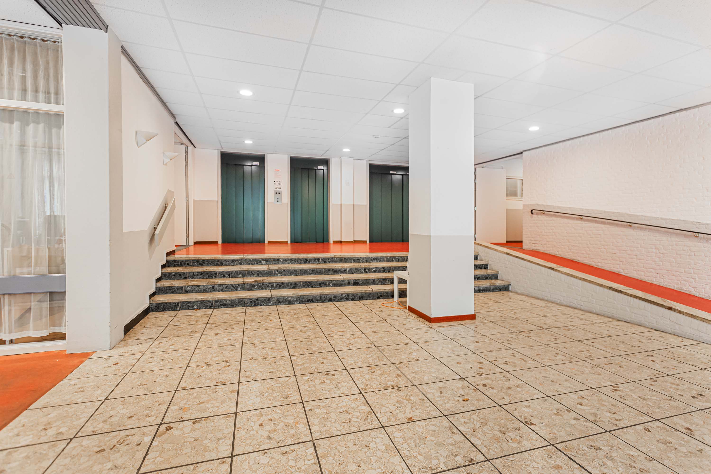 Via een afgesloten entree bereik je de centrale hal. Naast de hal bevindt zich de recreatiezaal, waar je kunt biljarten, pianospelen, lezen en/of gezellig een kopje koffie drinken. In de onderbouw vind je drie fietsenstallingen met voorzieningen voor elektrische fietsen, papier- en plastic inname, en tevens bevindt je eigen berging zich op deze verdieping. Via een van de drie liften of de trap kom je op de vijfde verdieping bij het appartement, waar ook je post op de verdieping bezorgd wordt.