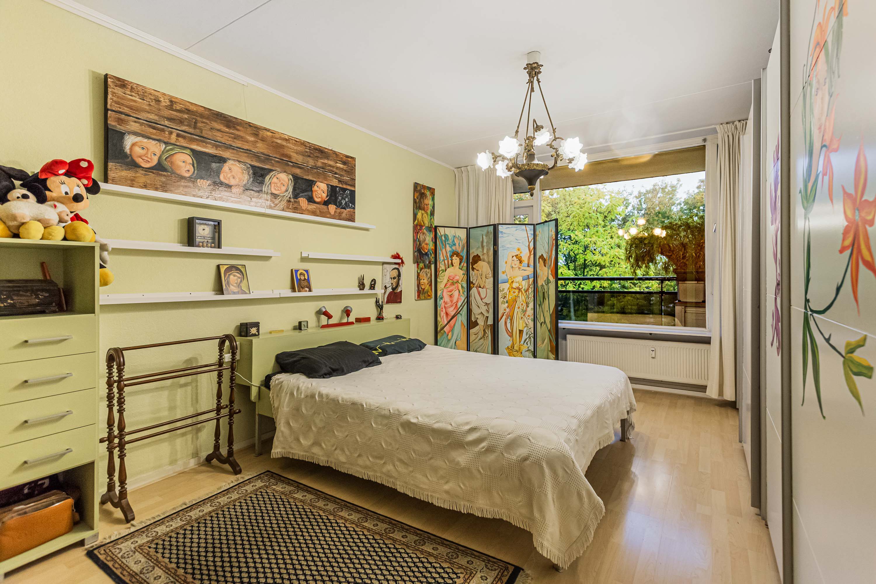 De hoofdslaapkamer beschikt over ingebouwde kastruimte en directe toegang tot de badkamer met inloopdouche, toilet en wastafelmeubel. De tweede slaapkamer, bijna even groot, ligt aan de andere zijde van het appartement en heeft net als de eetkamer toegang tot het grote balkon. Door de royale afmetingen van het appartement en de flexibele indeling is er volop ruimte om een praktische en comfortabele gezinswoning te creëren. De slaapkamers zijn daarnaast veelzijdig inzetbaar als kinderkamer, werkruimte of logeerkamer. Precies wat starters en/of gezinnen goed kunnen gebruiken.