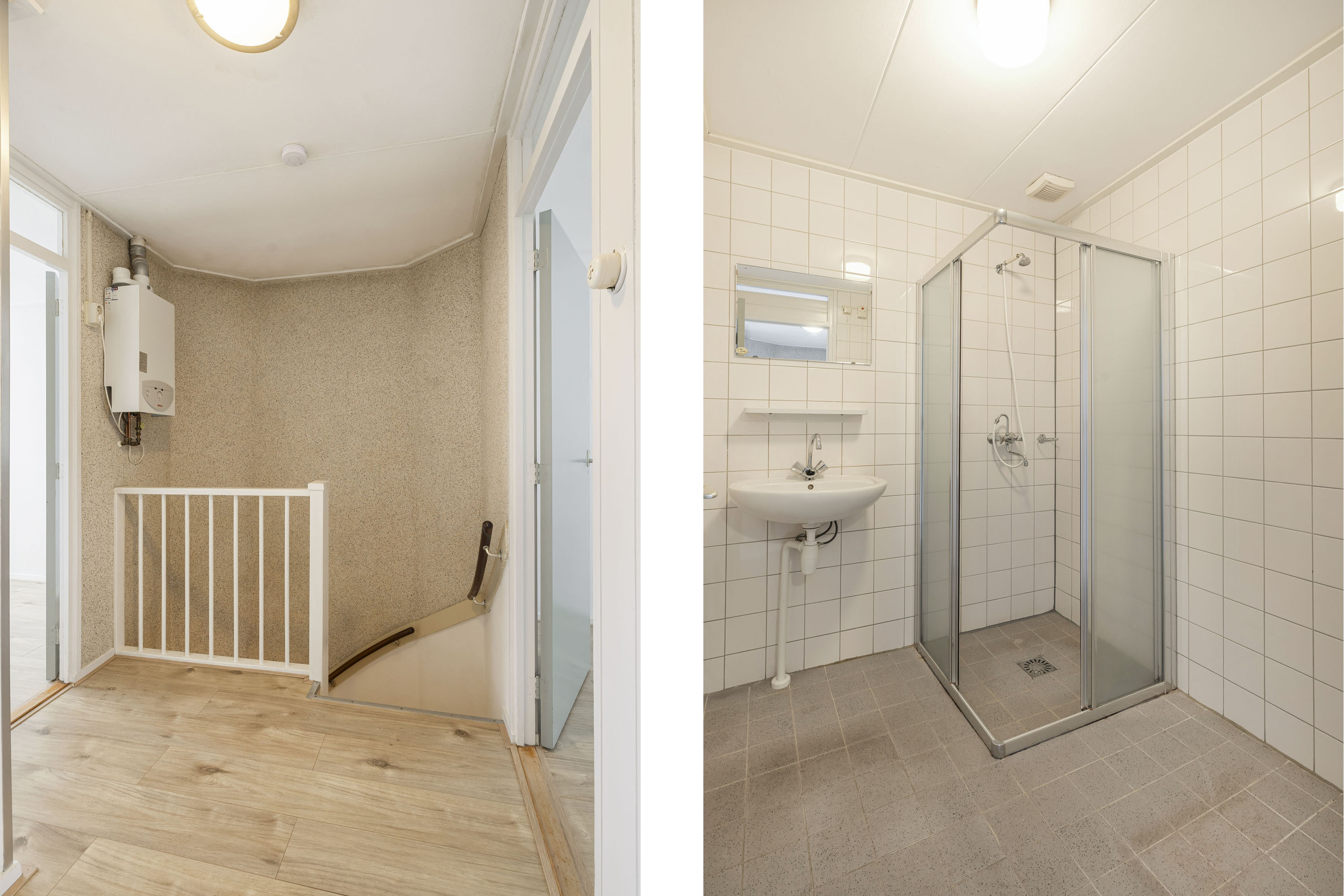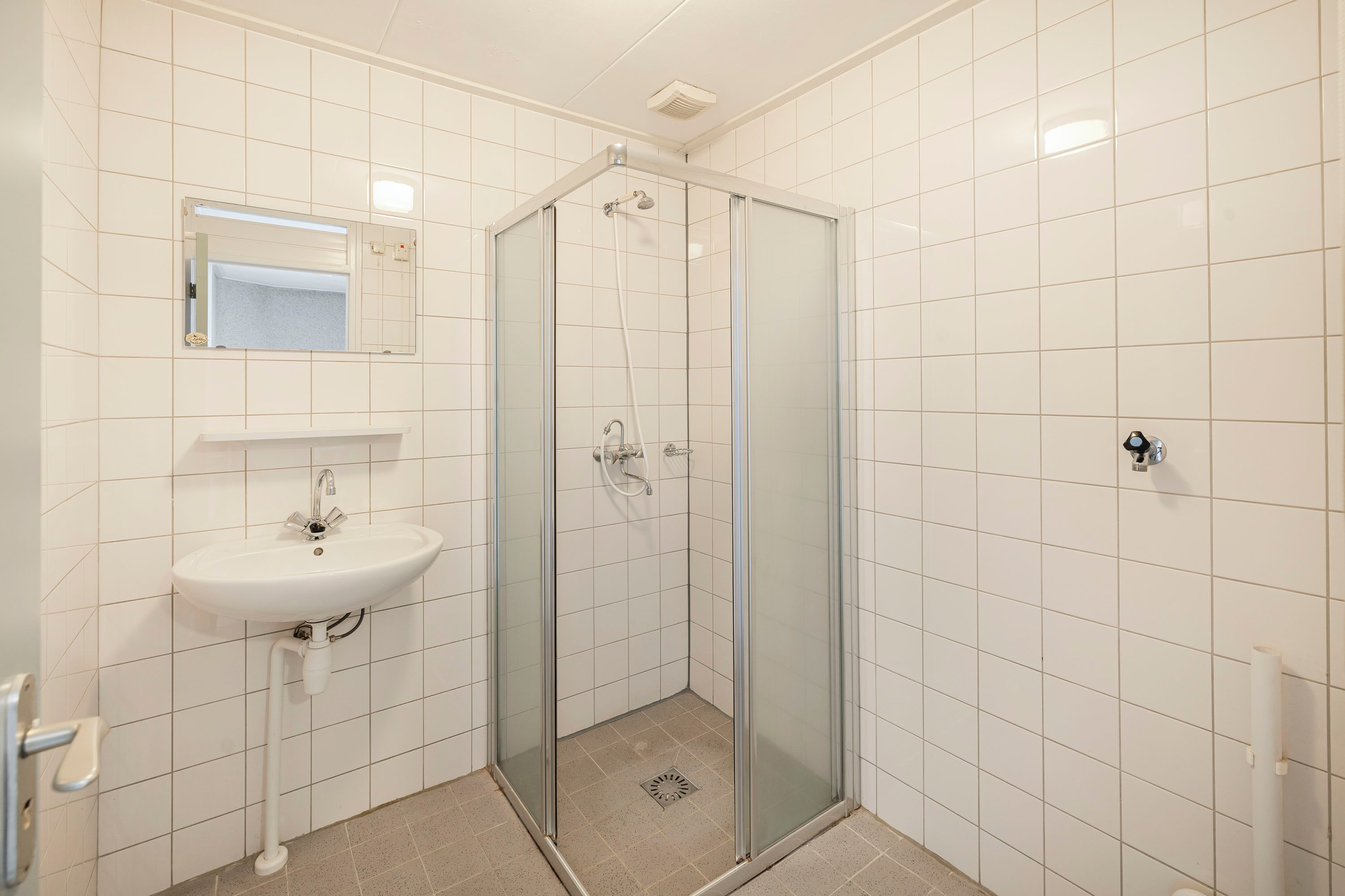 - Badkamer met douche, wastafel en witgoed aansluiting