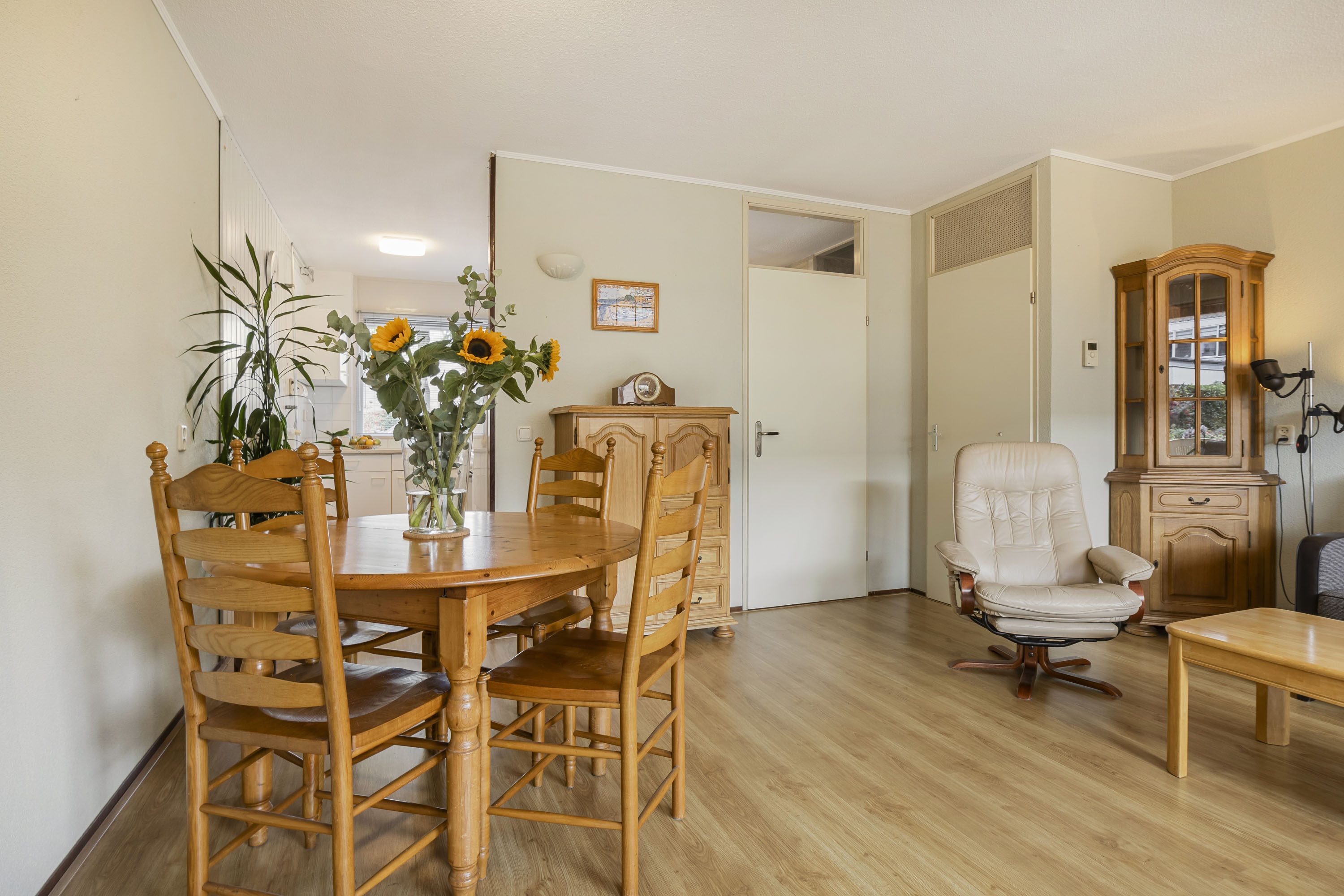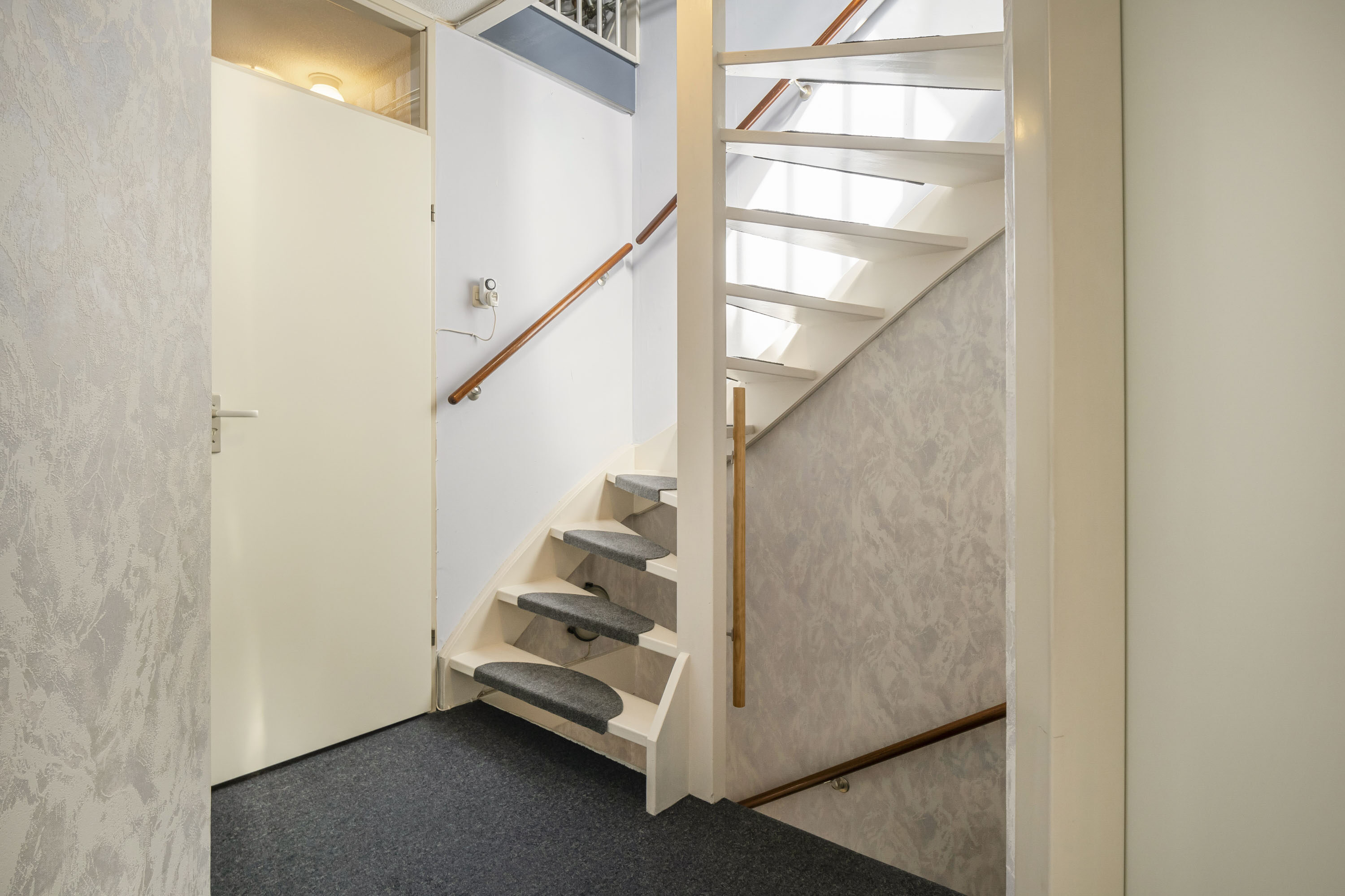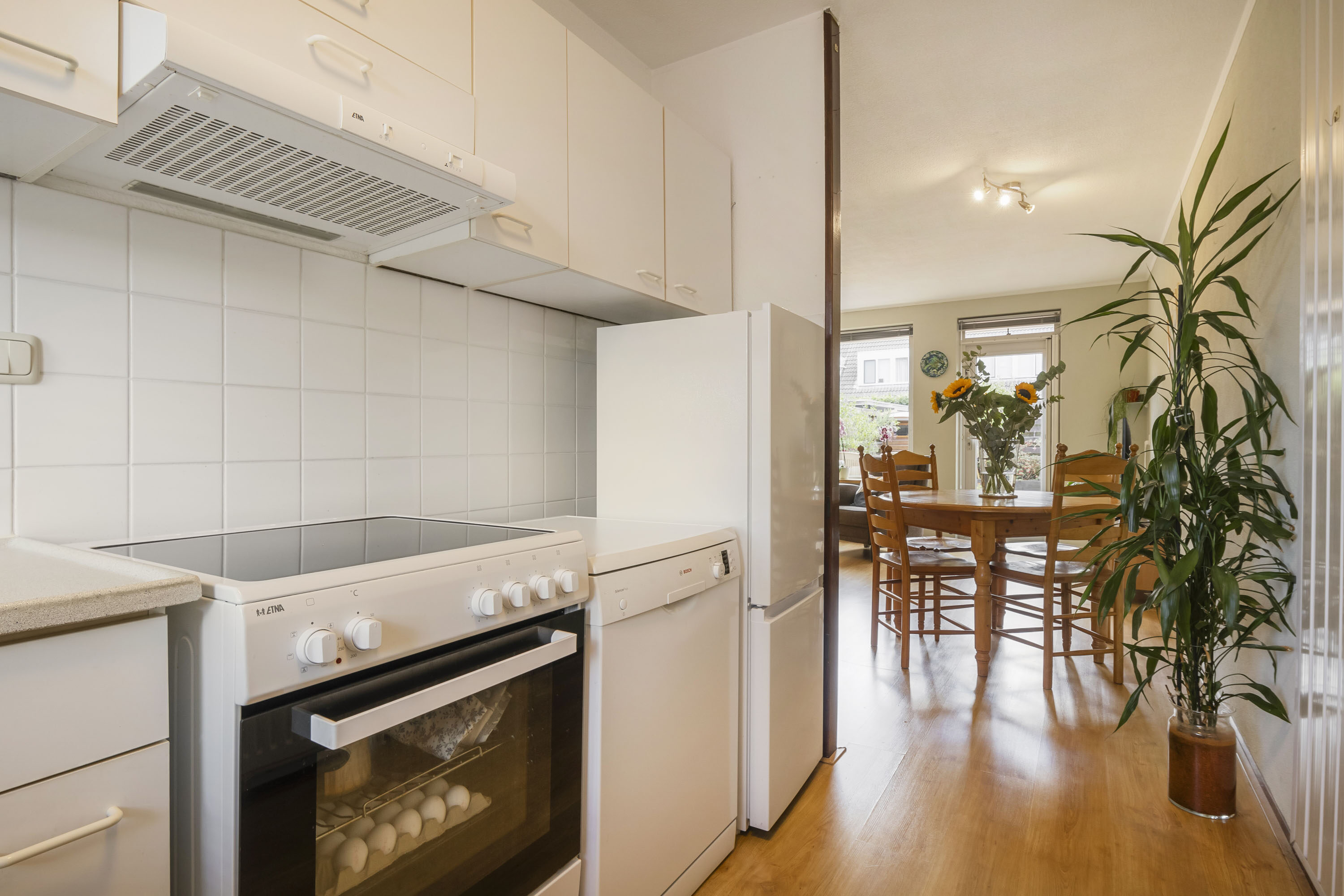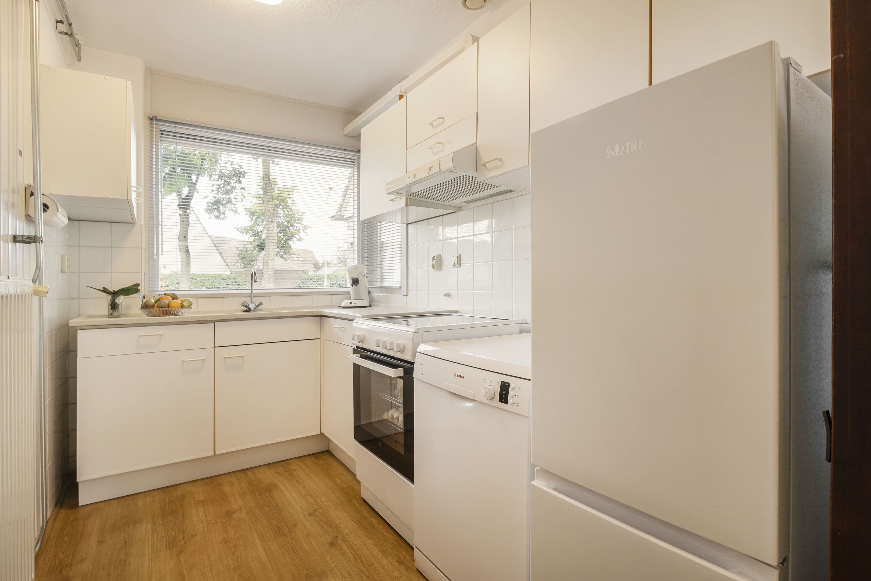 Via de entree bereik je de hal met de meterkast en het toilet. Vanuit de hal loop je door naar de ruime, lichte woonkamer van circa 24 m². Hier geniet je van een prettige lichtinval door de grote raampartijen. Aangrenzend bevindt zich de keuken in hoekopstelling, uitgerust met een afzuigkap, wasbak en ruimte voor vrijstaande apparatuur.