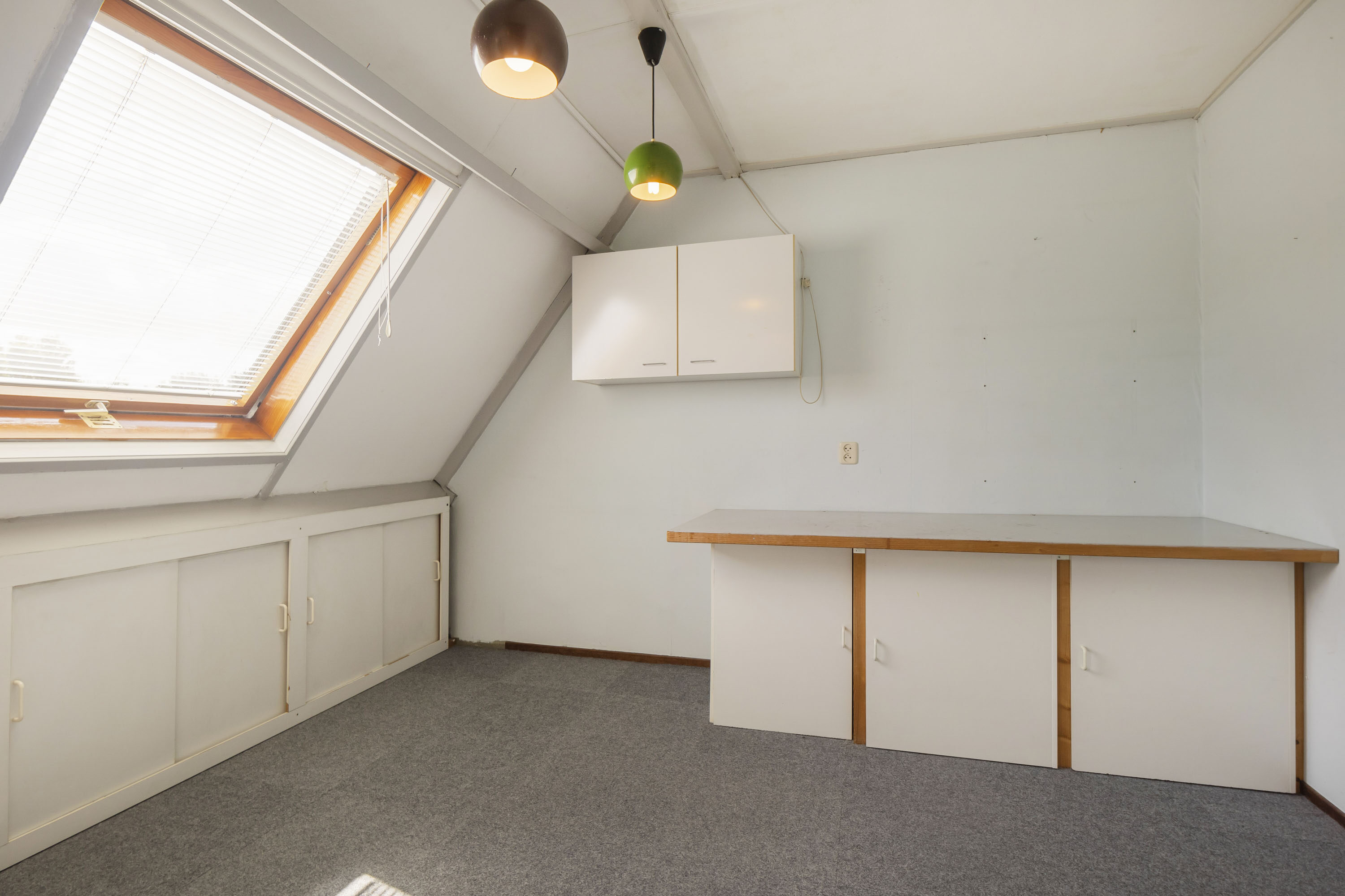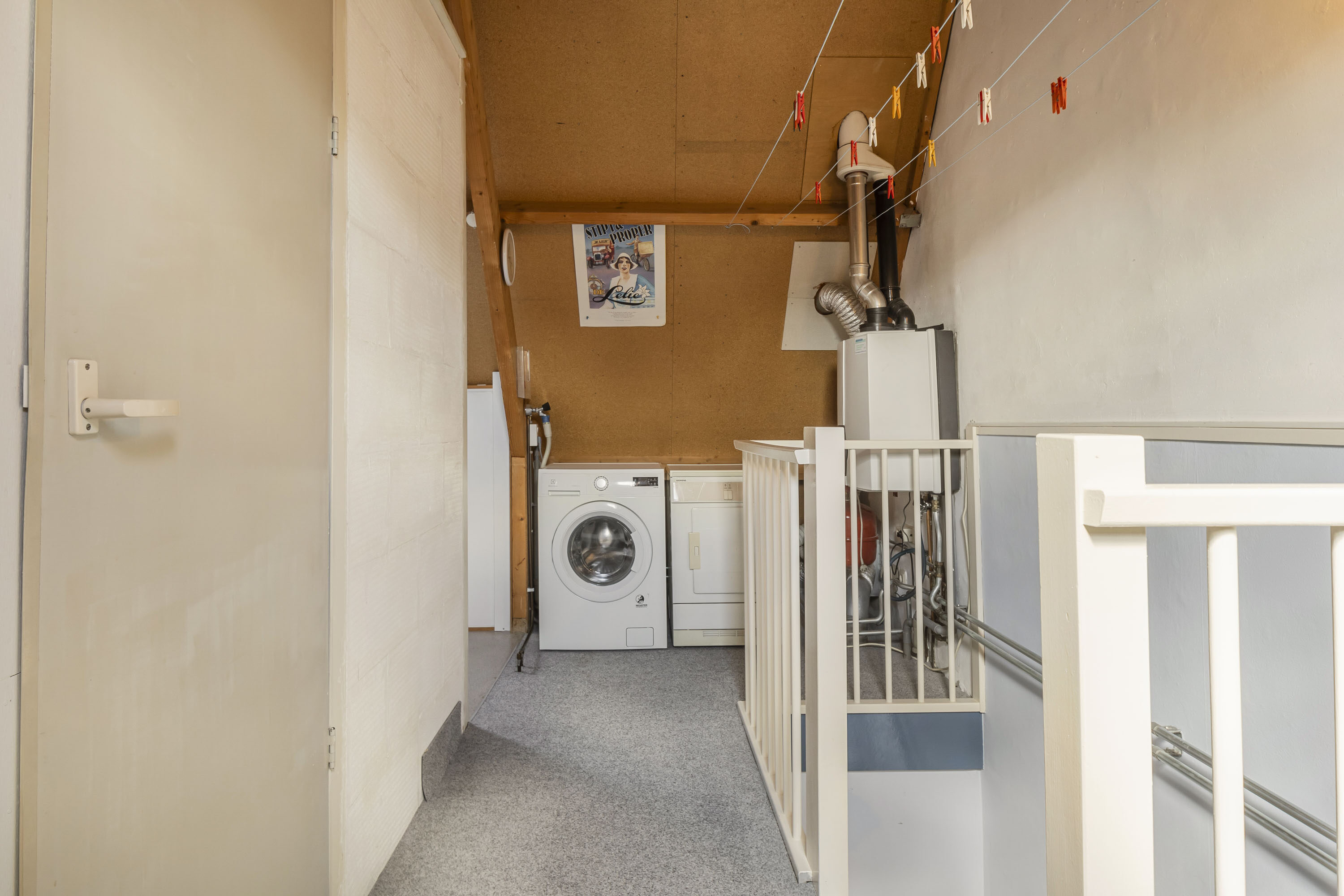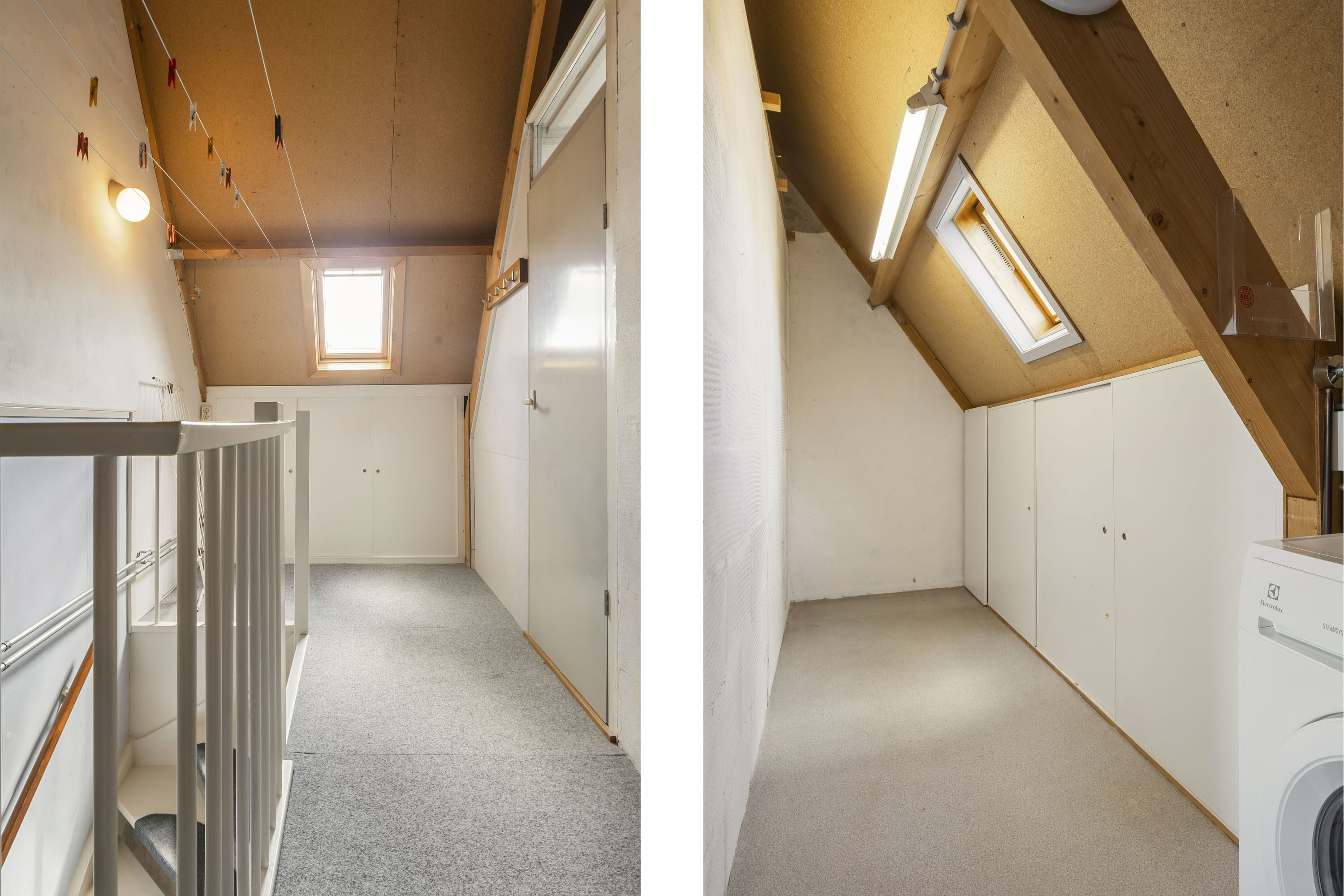 Via een vaste trap bereik je de zolderverdieping. Hier tref je op de overloop een aansluiting voor de wasmachine en droger, ook hangt hier de cv-ketel. Daarnaast is er een vierde slaapkamer van circa 9 m² met een dakraam. Verder biedt deze verdieping volop opbergruimte, onder andere achter de knieschotten.