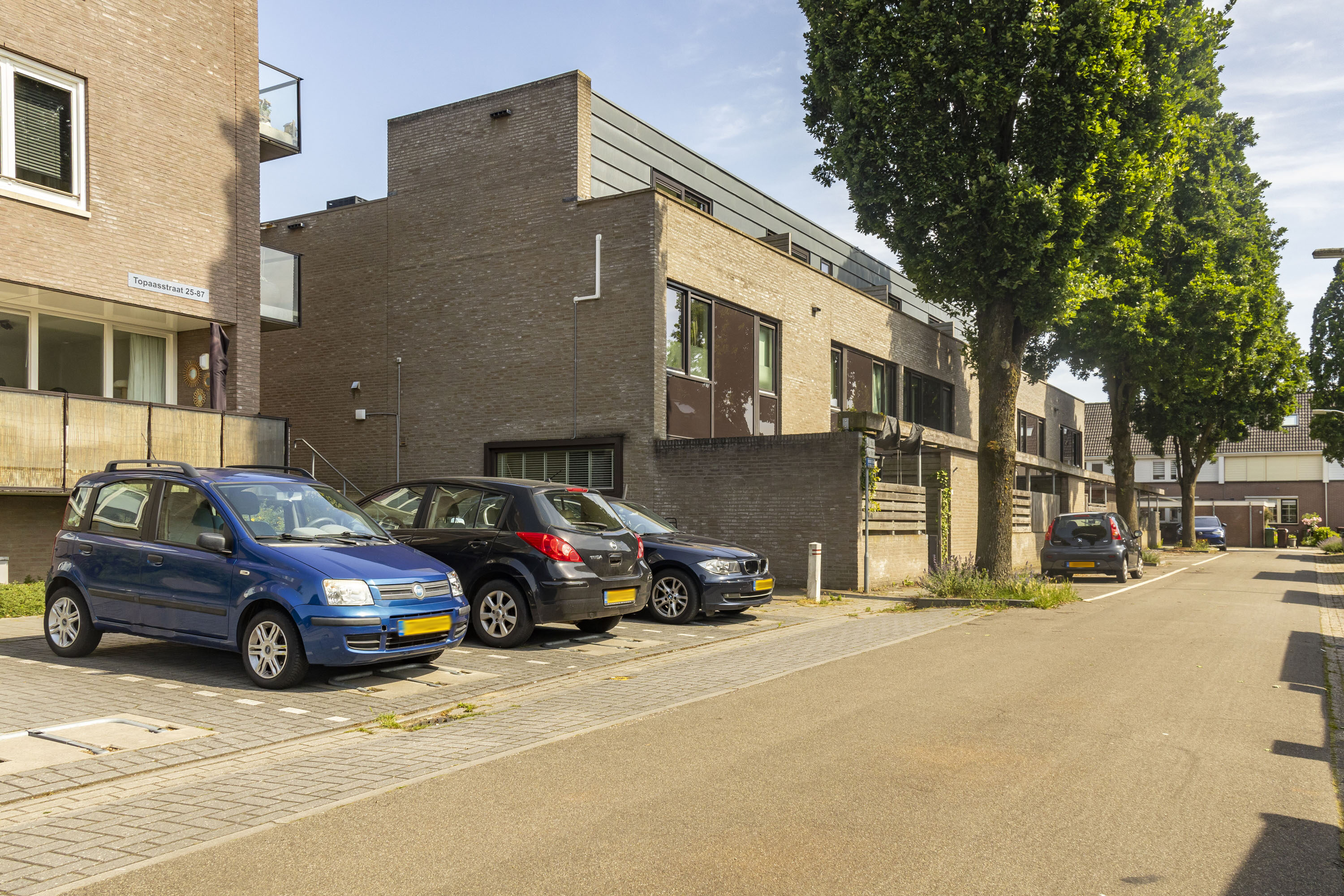 Topaasstraat 17 combineert het beste van twee werelden: modern wonen met alle gemakken van nu én een verrassend fijne buitenruimte met zowel een voortuin als een dakterras. En dat is nog niet alles: je beschikt ook nog over je eigen parkeerplek, direct naast de woning, afgesloten met een handig paaltje.